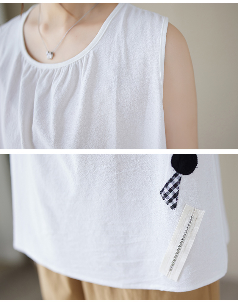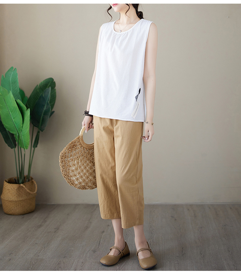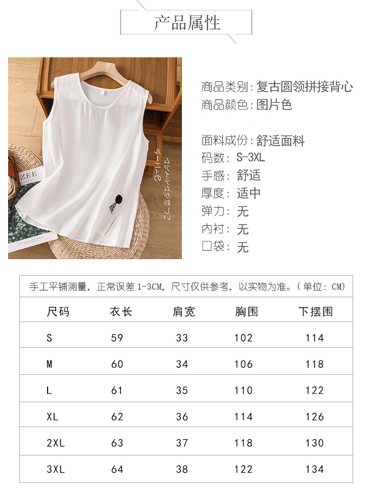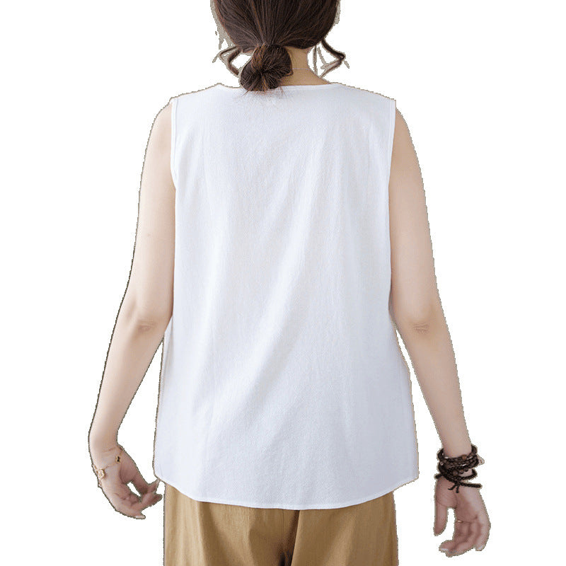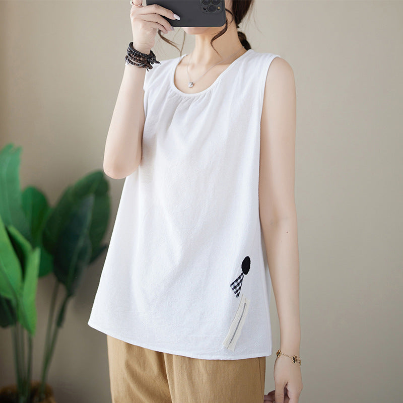 In the summer of 2025, the new cotton and linen patches, fine wrinkle vest, women's loose sleeveless T-shirt top