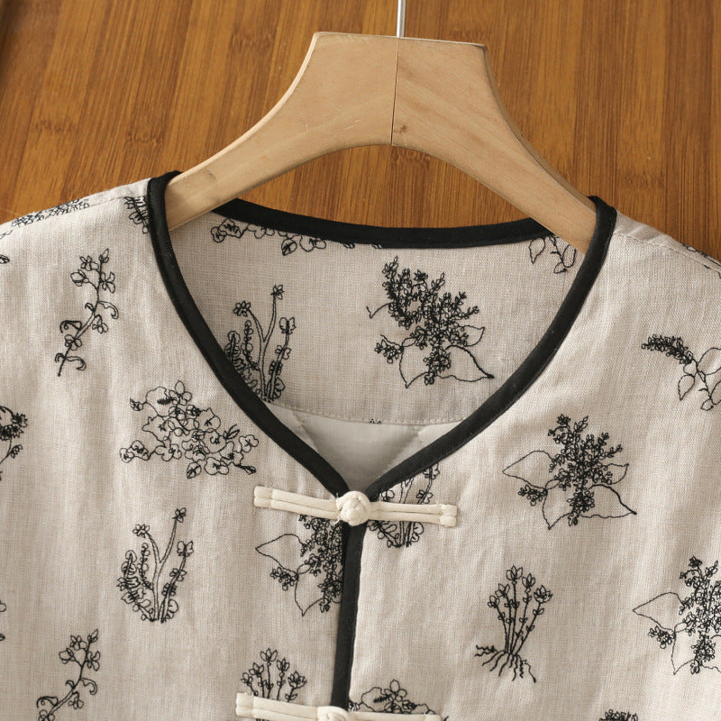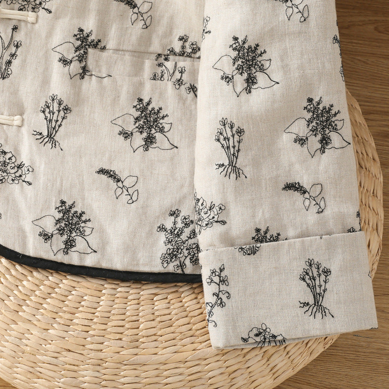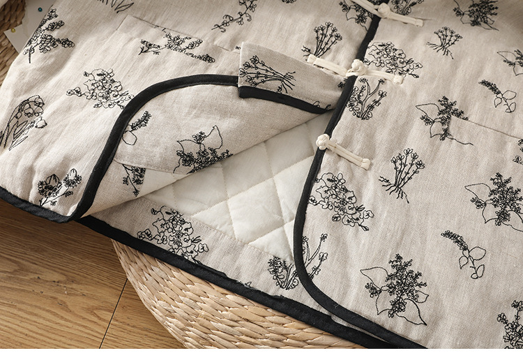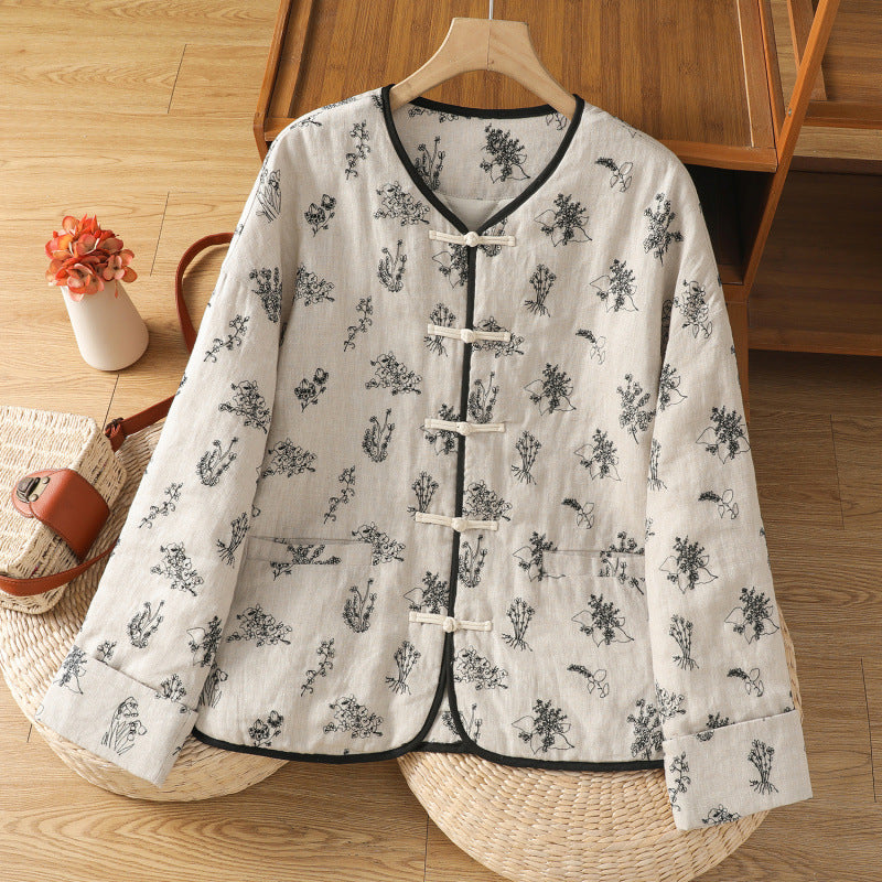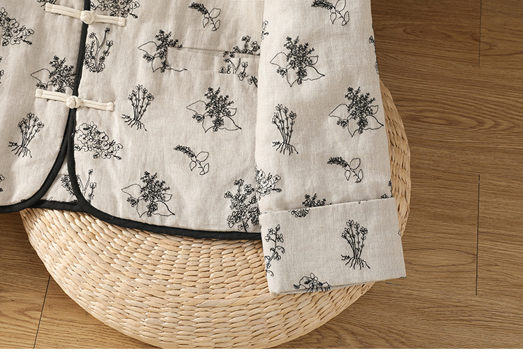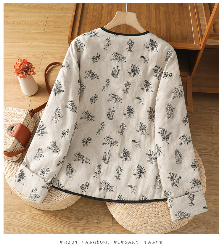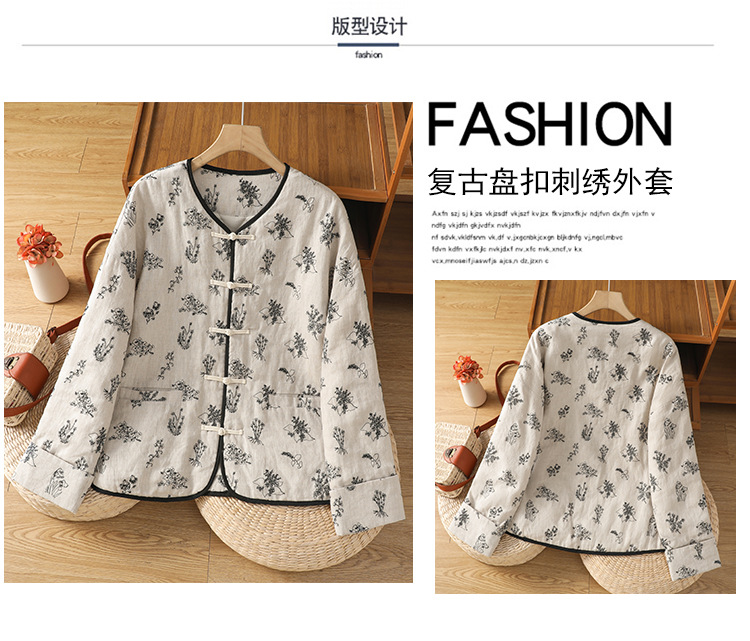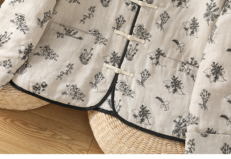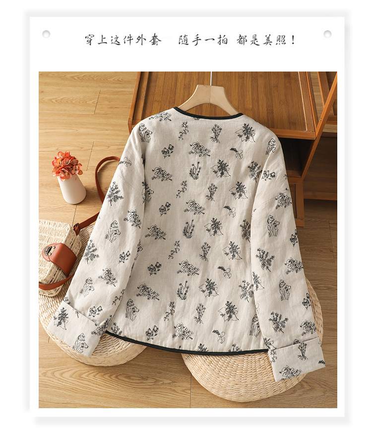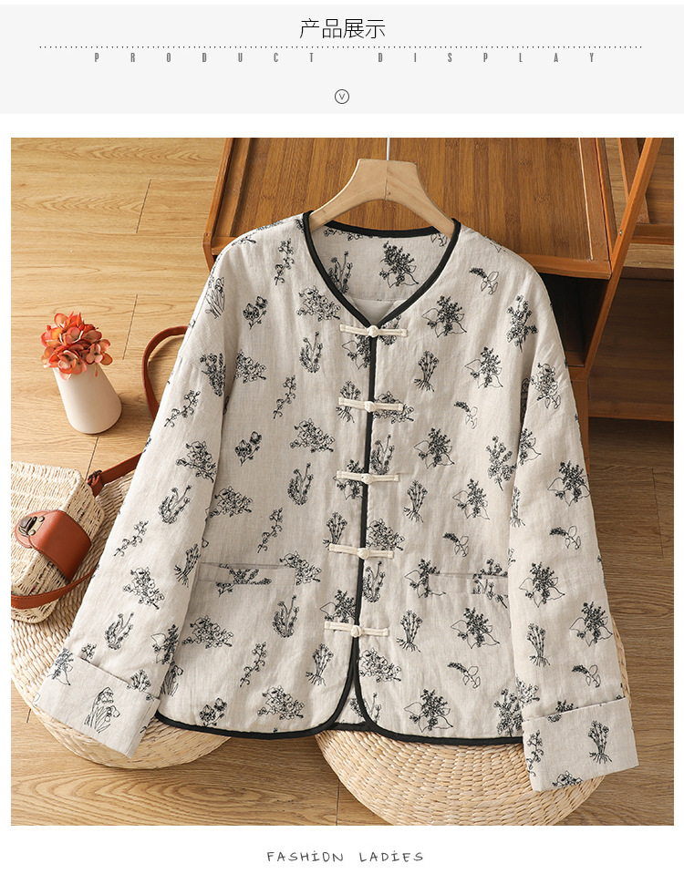 In the winter of 2025, the new cotton and linen cotton-padded jacket with cotton and thickened jacket, round neck small fragrant style new Chinese women's cotton clothes.