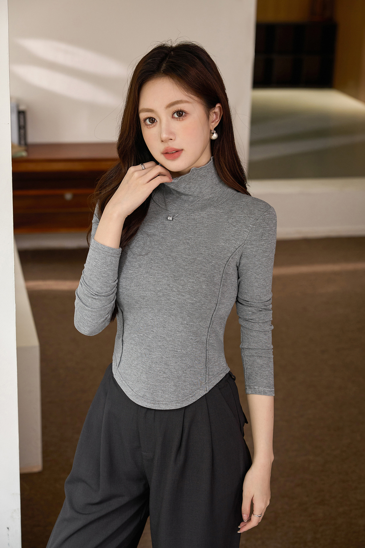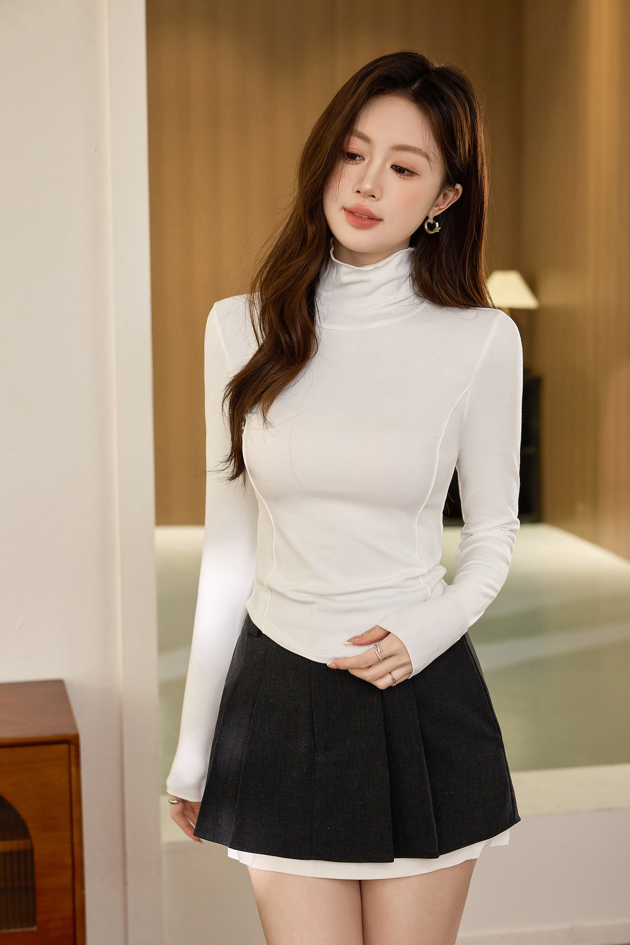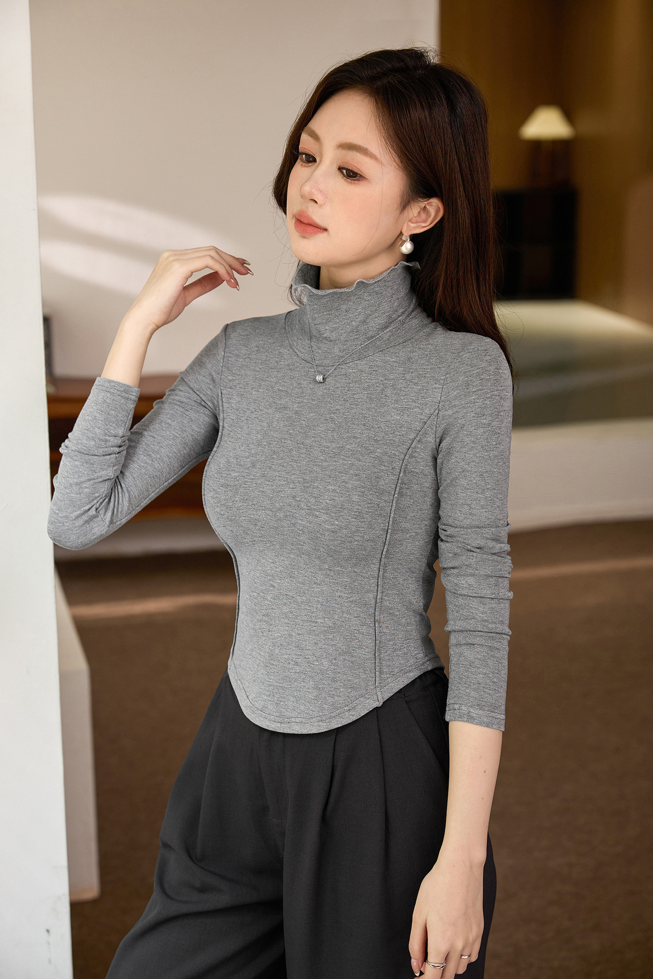 #Ingenuity screening product #Polished turtleneck bottoming shirt women's design sense line Spice girl long-sleeved T-shirt autumn and winter inner top