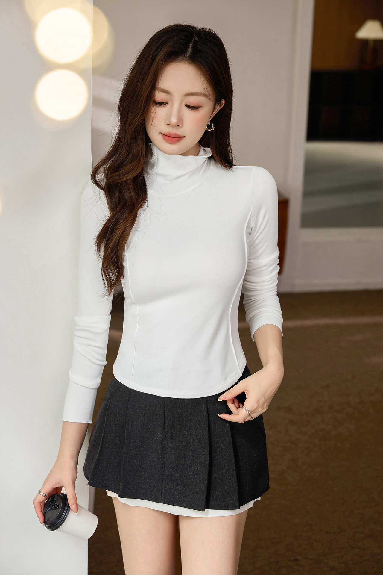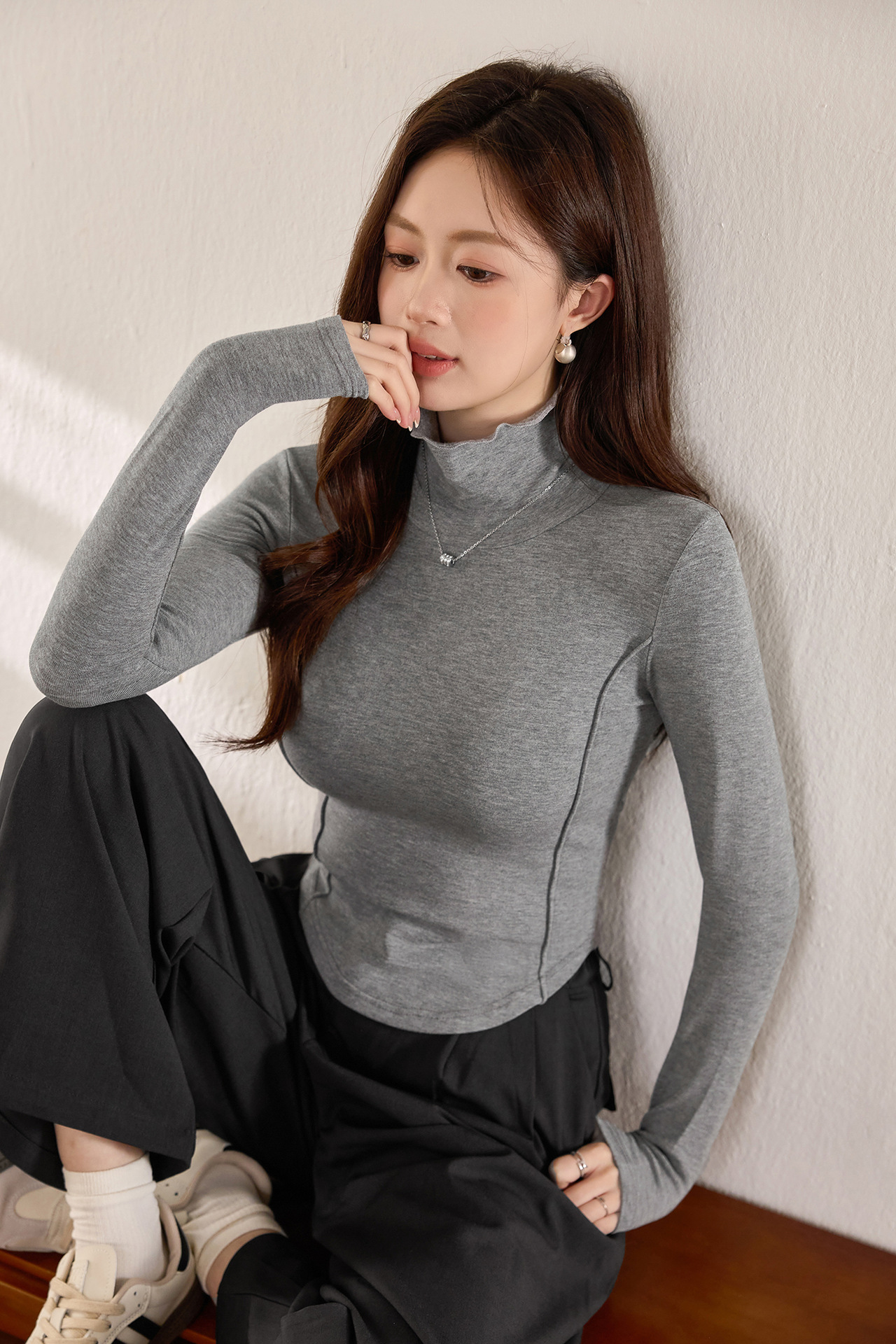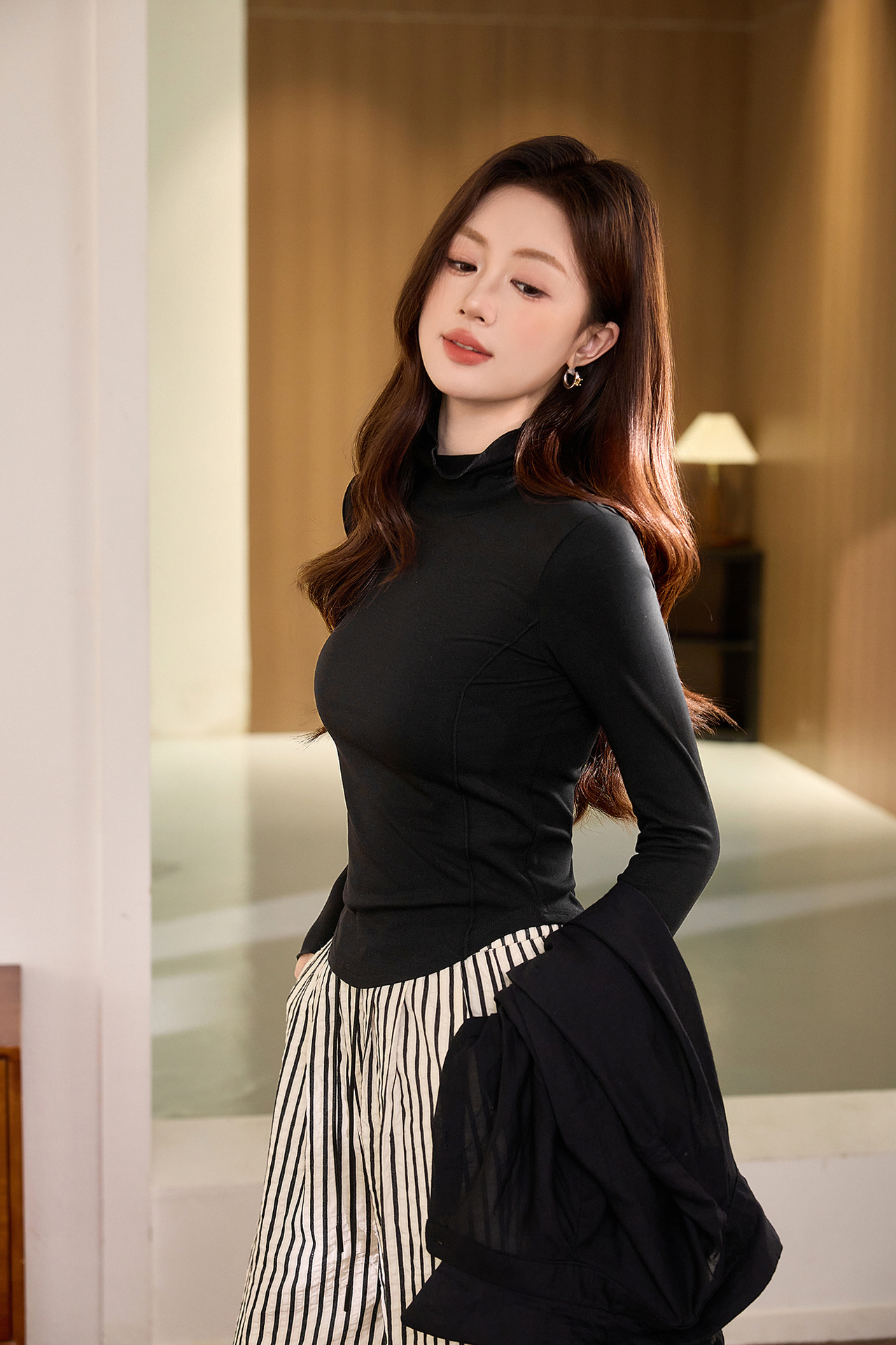 #Ingenuity screening product #Polished turtleneck bottoming shirt women's design sense line Spice girl long-sleeved T-shirt autumn and winter inner top