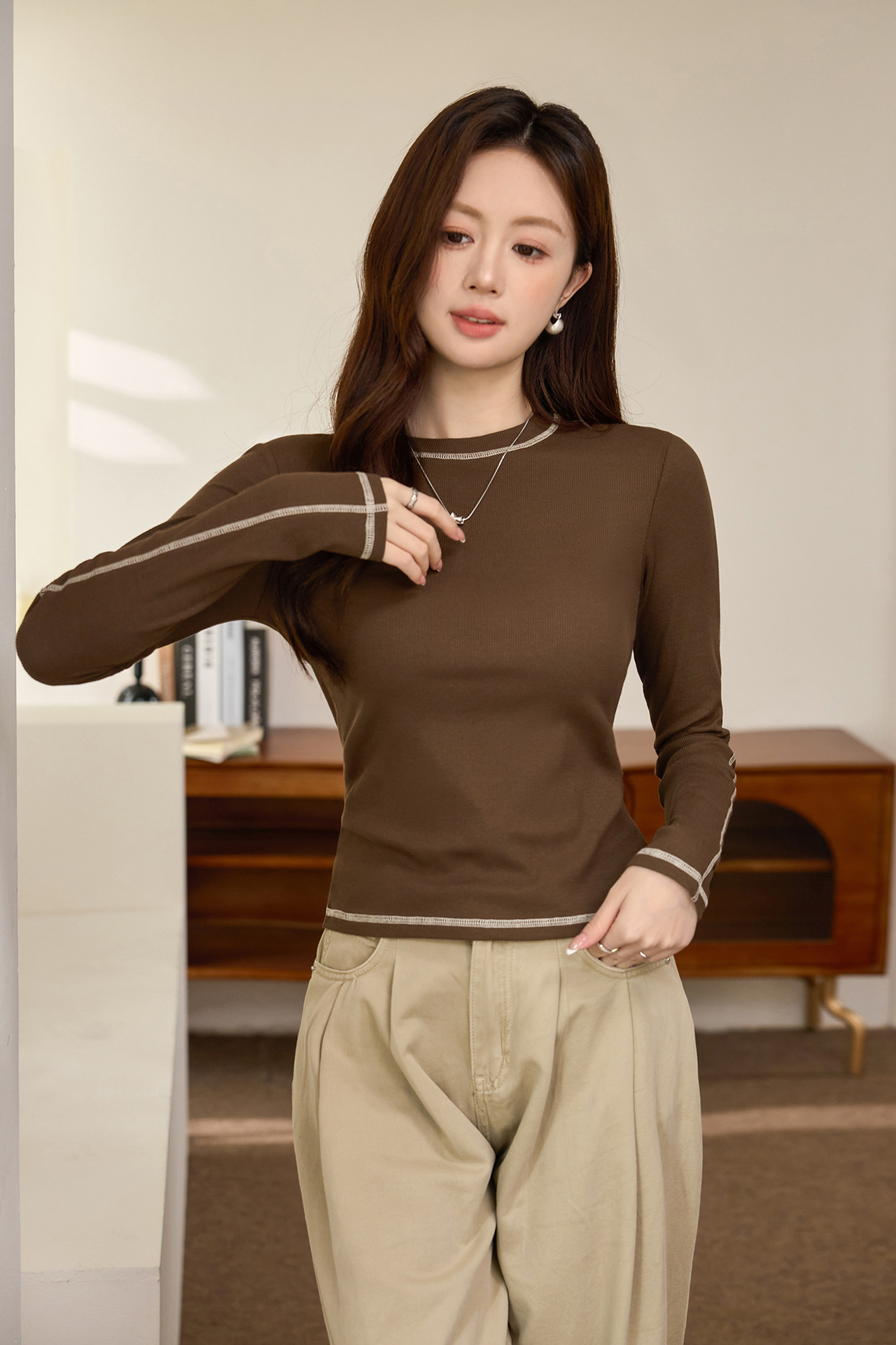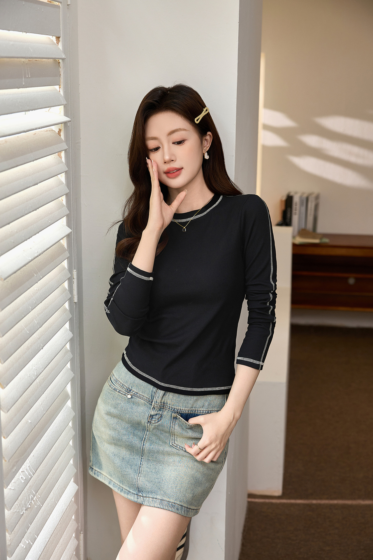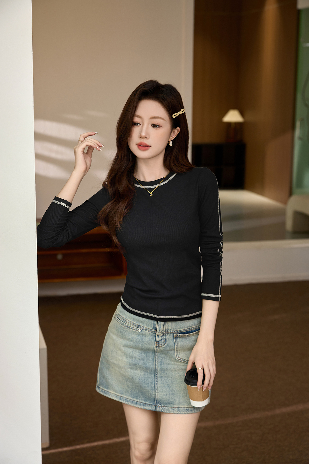 #Ingenuity Selection #Flower Needle Bright Thread Contrasting T-Shirt Women's Long Sleeve 2026 Autumn New Slim and Skinny Bottom Shirt