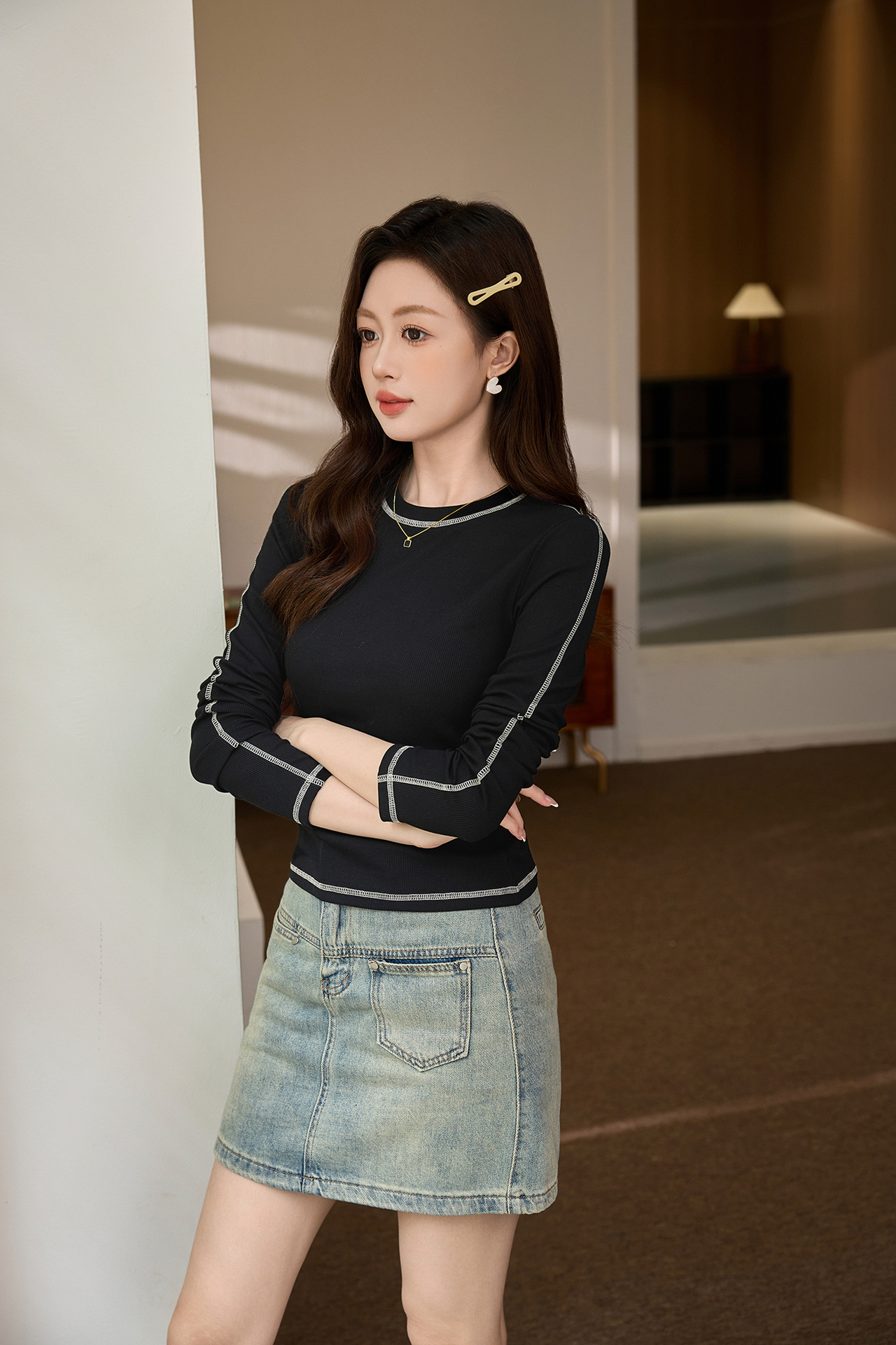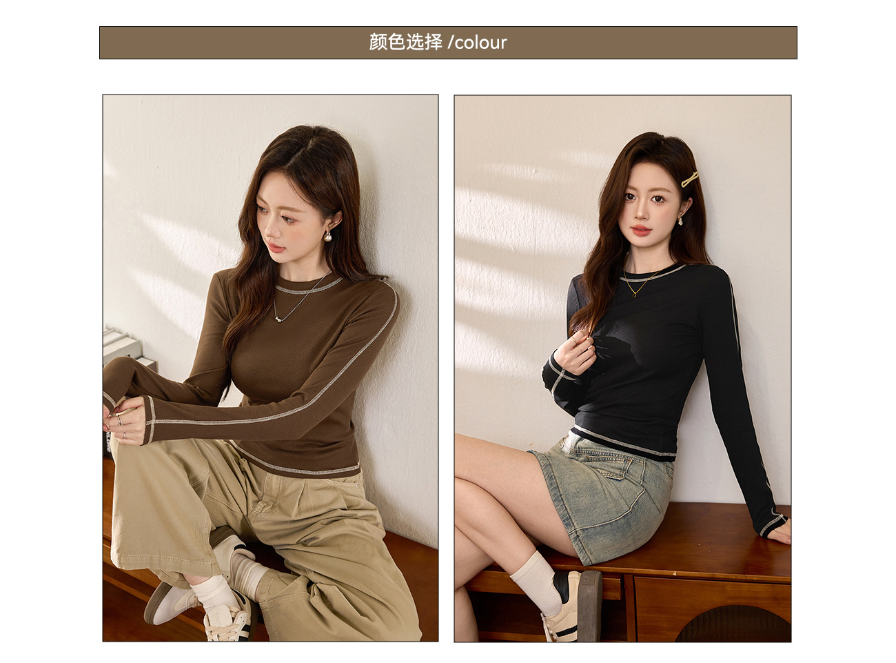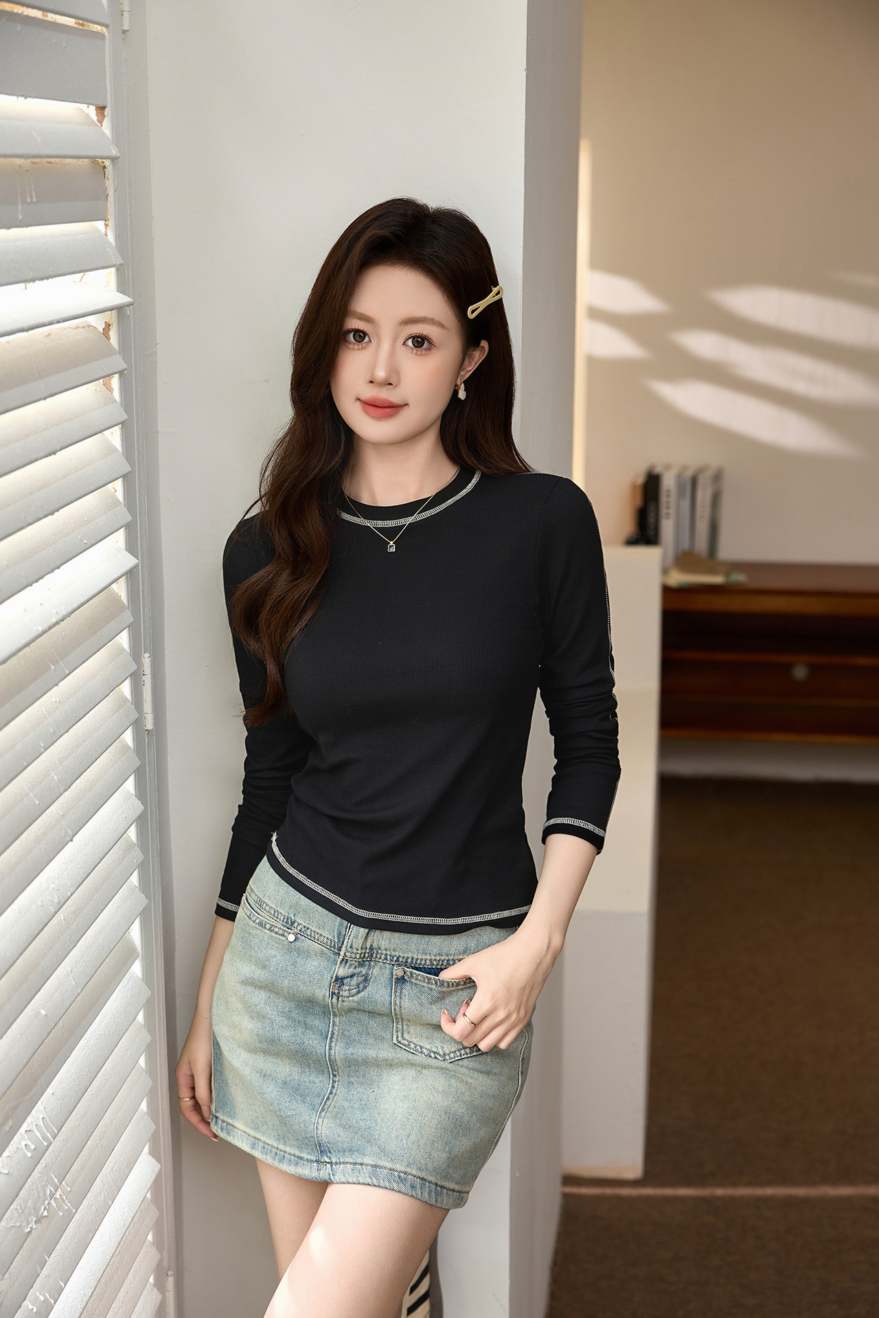 #Ingenuity Selection #Flower Needle Bright Thread Contrasting T-Shirt Women's Long Sleeve 2026 Autumn New Slim and Skinny Bottom Shirt