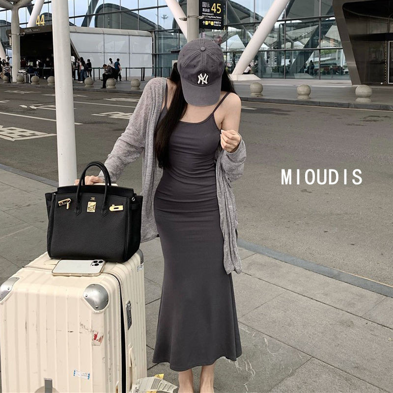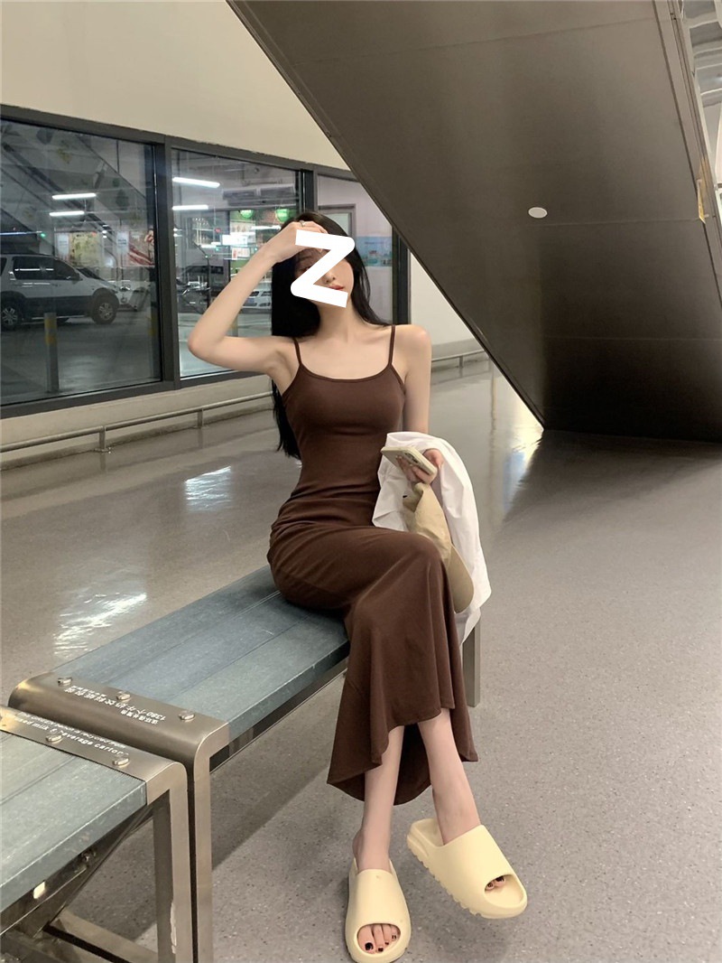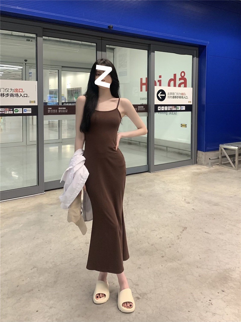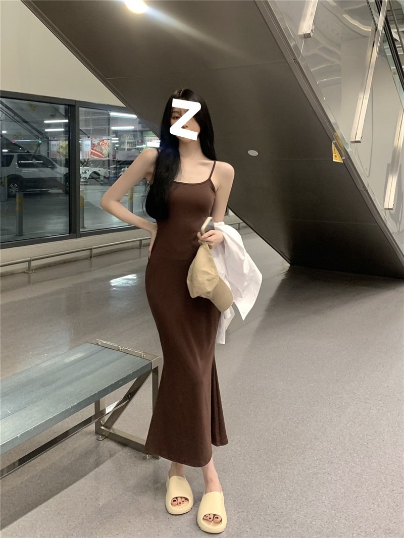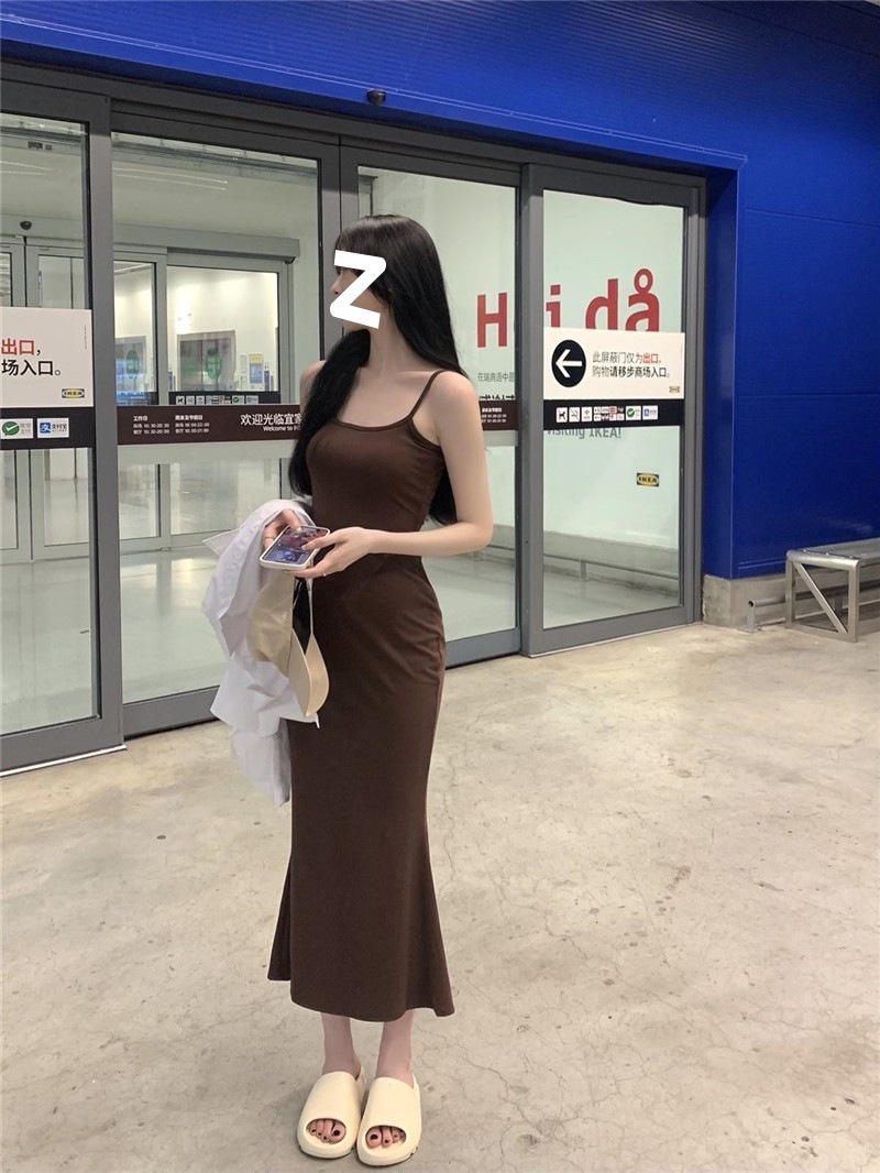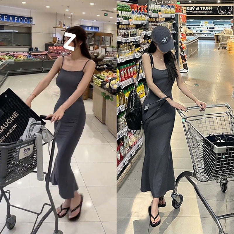 ins pure desire sleeveless suspender dress women's summer new slim and thin fishtail skirt long temperament hip skirt