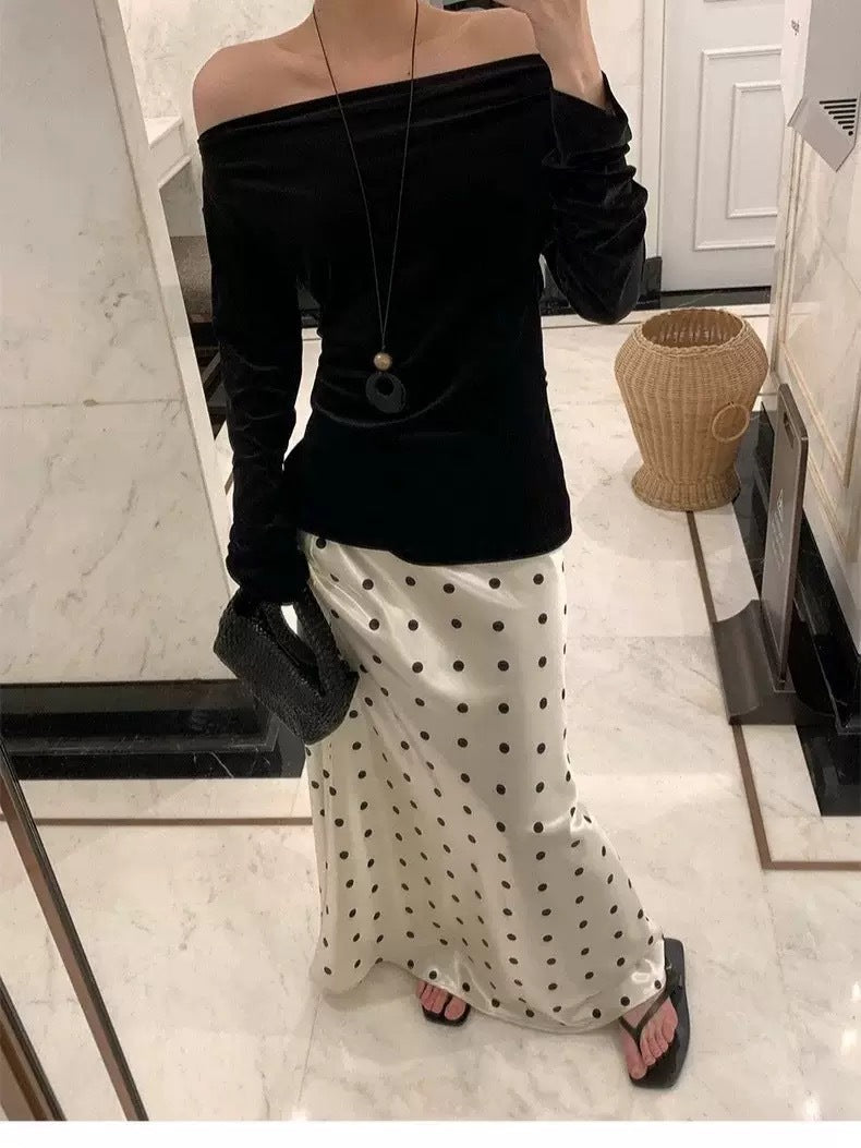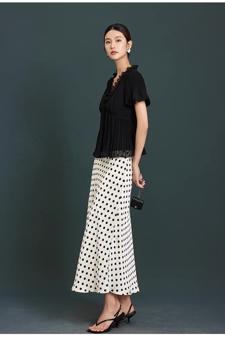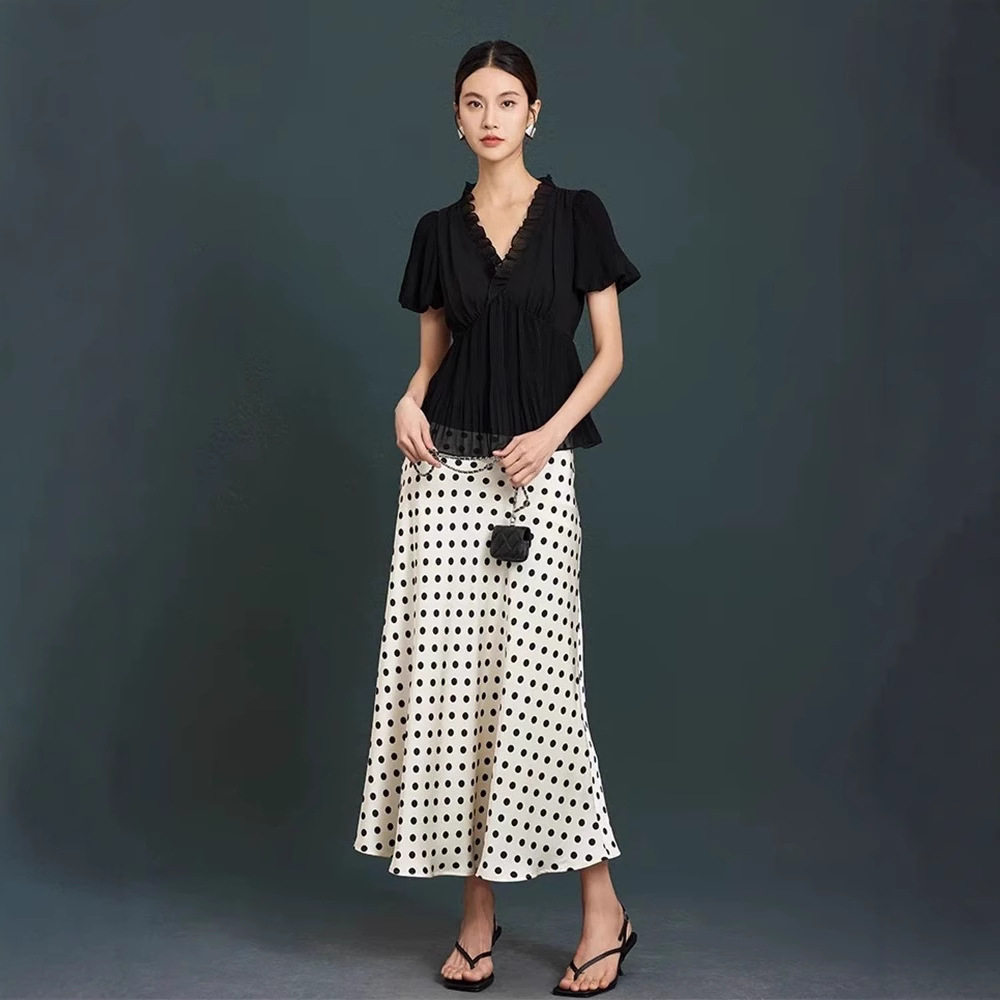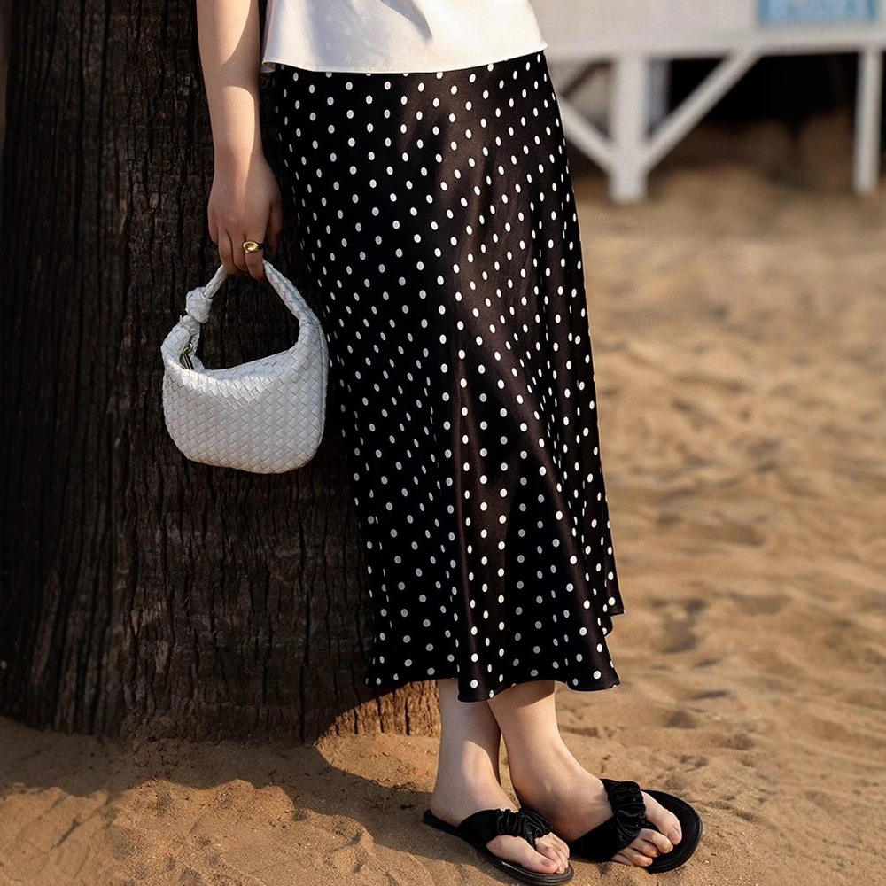 Japan imported triacetic acid polka dot skirt women's spring and summer A-shaped version short skirt small long hip A-shaped skirt