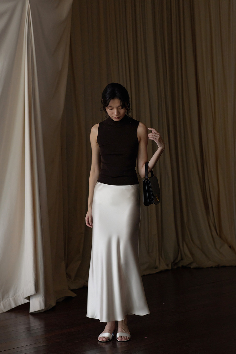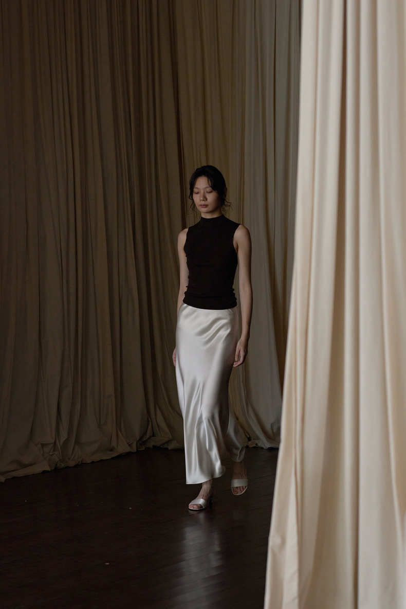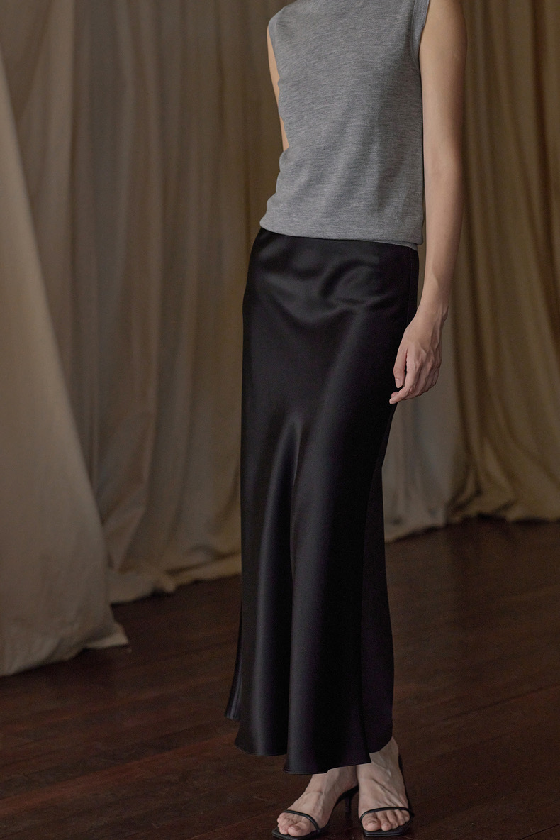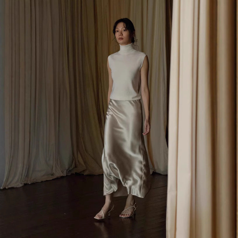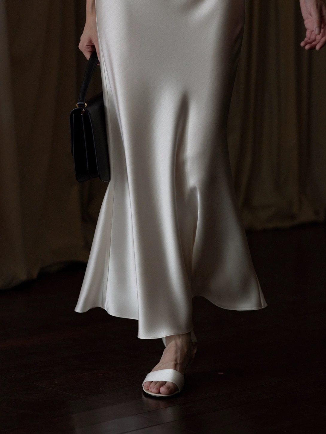 Japan imported triacetic acid satin water ripple satin 45 degree oblique cut solid color long fishtail a word skirt women
