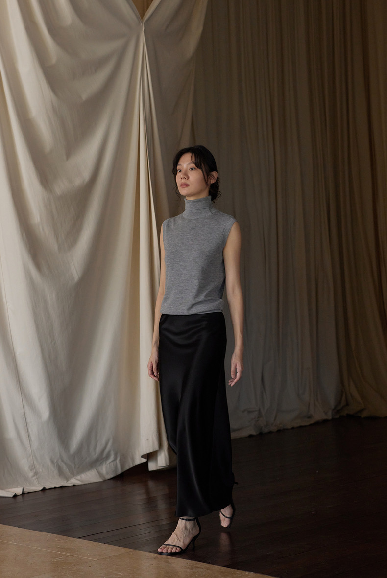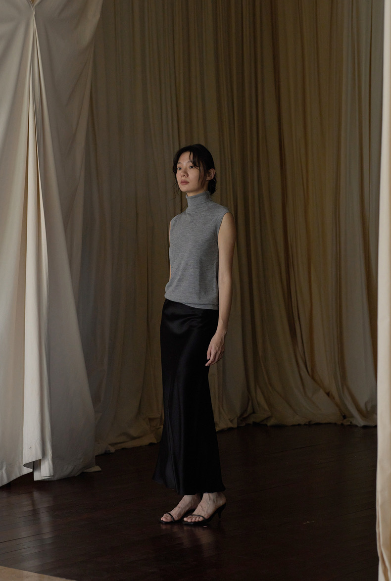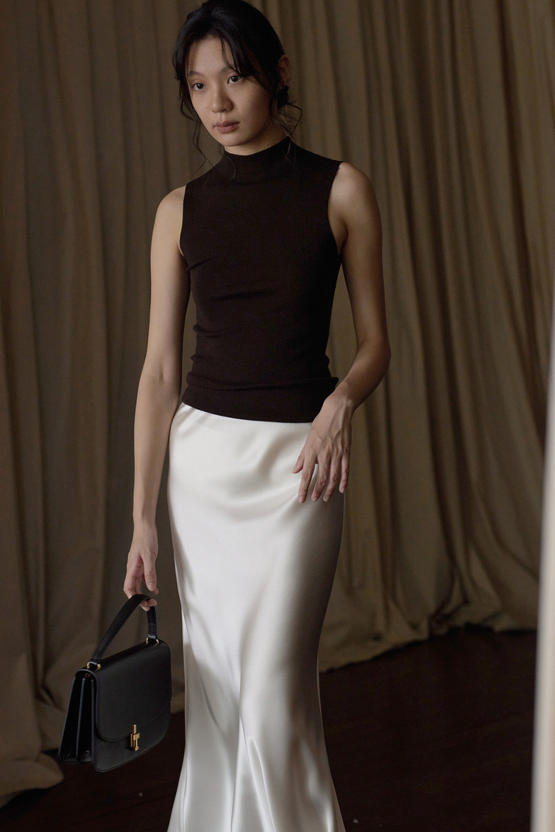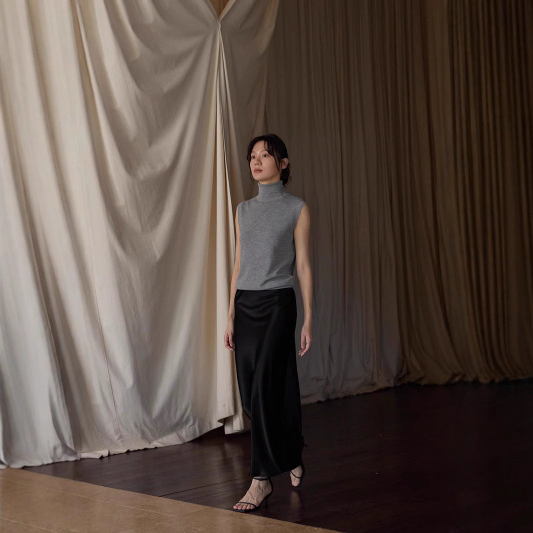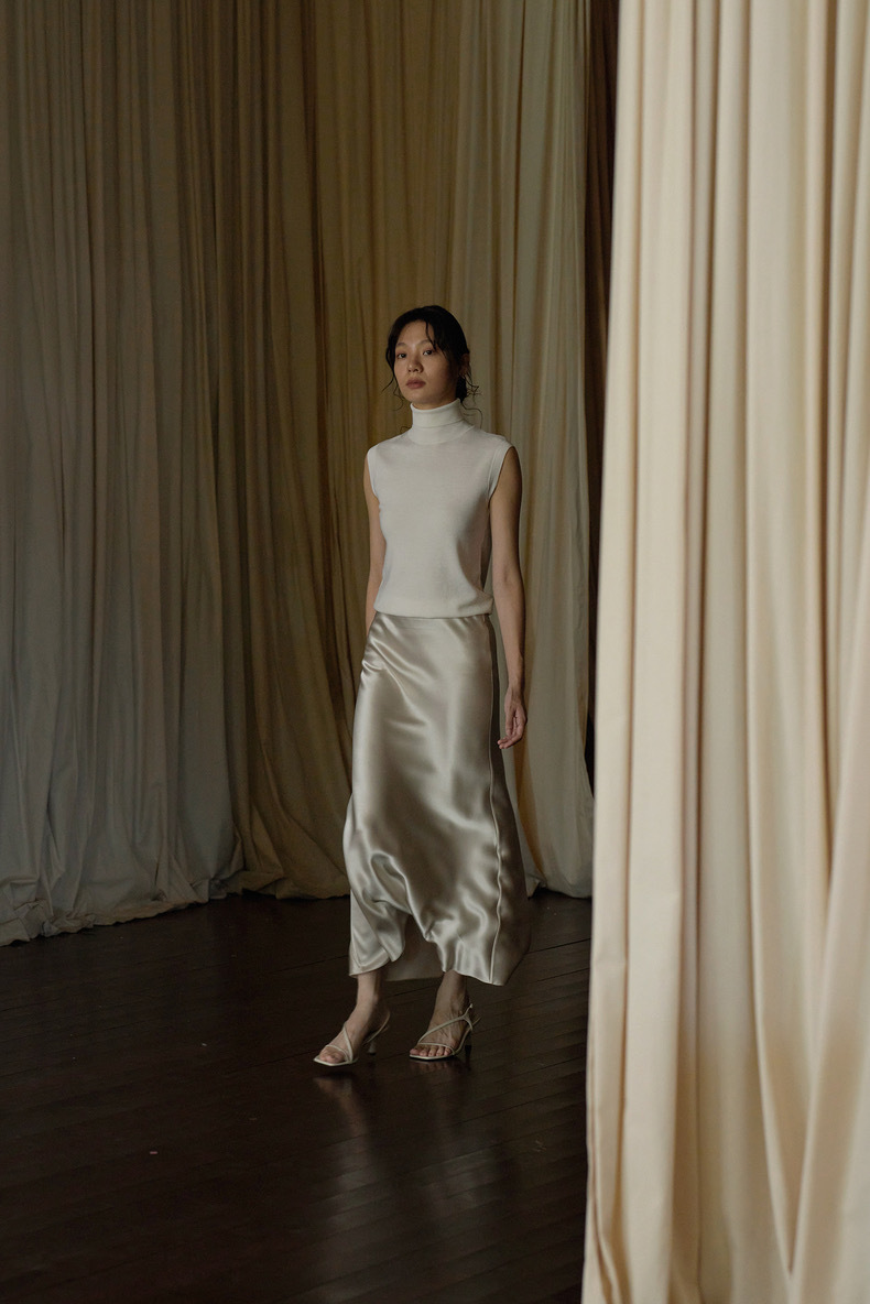 Japan imported triacetic acid satin water ripple satin 45 degree oblique cut solid color long fishtail a word skirt women