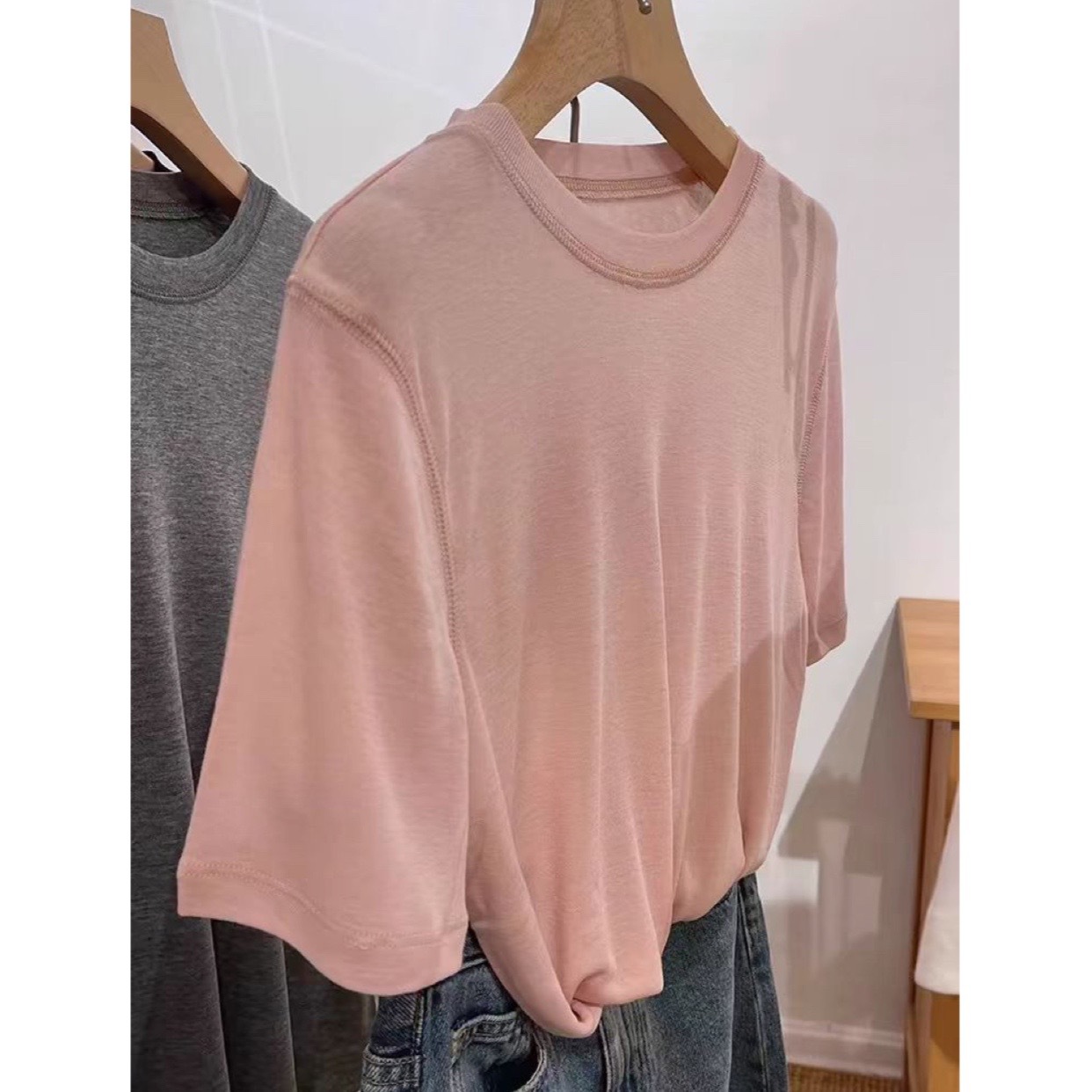 Keep it for yourself~ Breathing Tencel wool mask t soft waxy clear round neck pullover long sleeve top bottoming shirt women