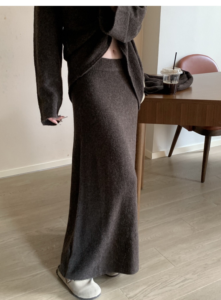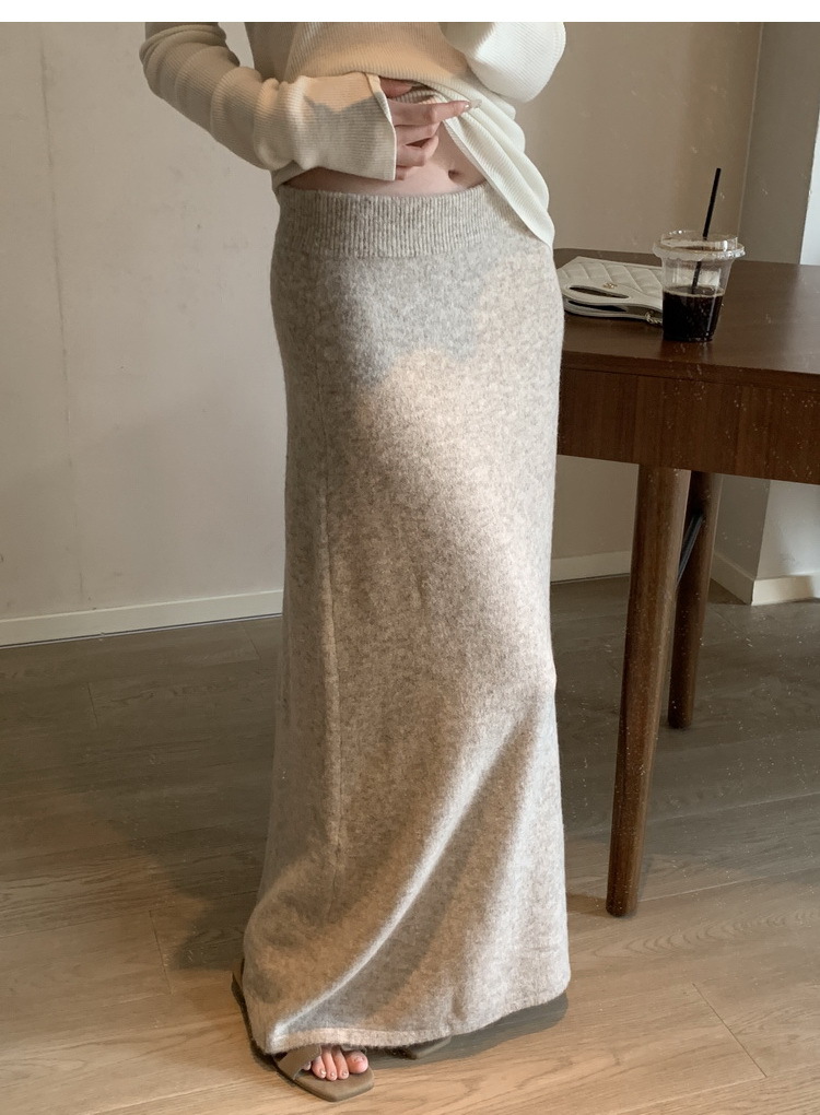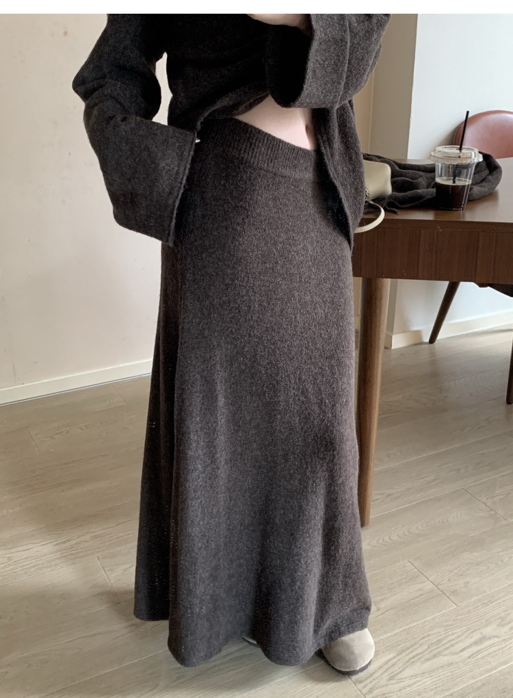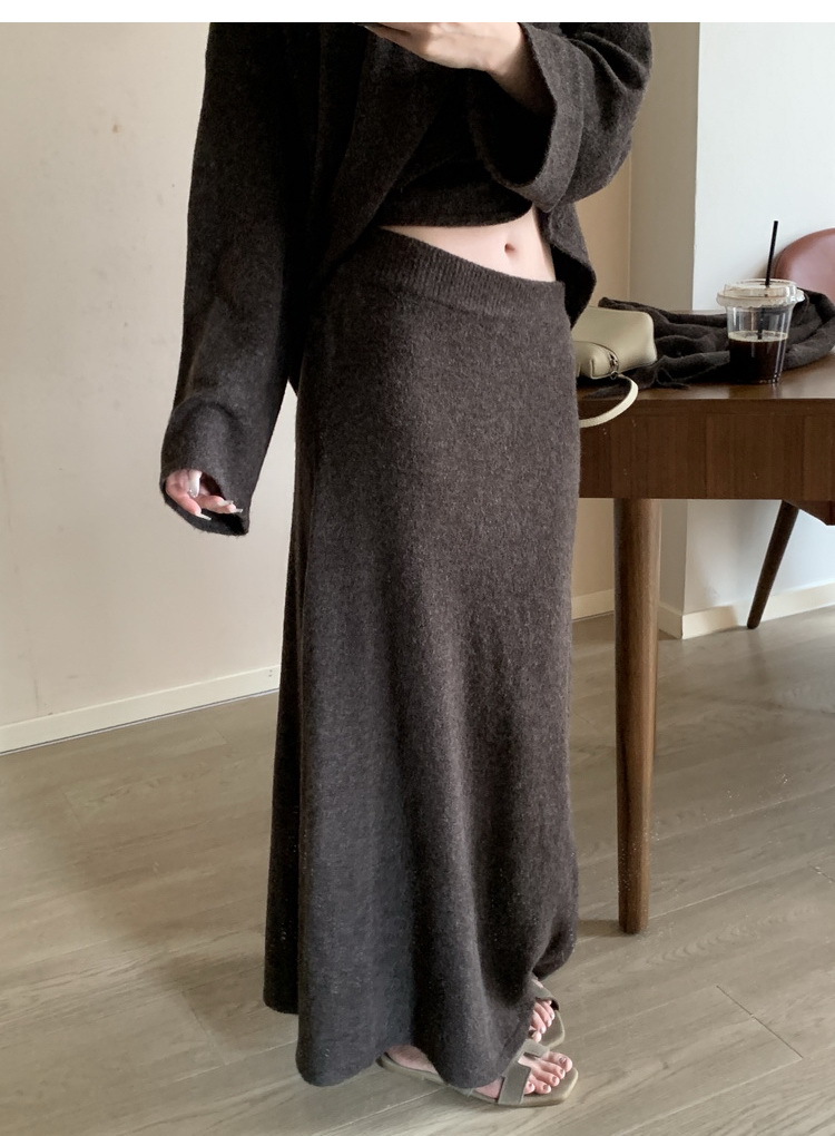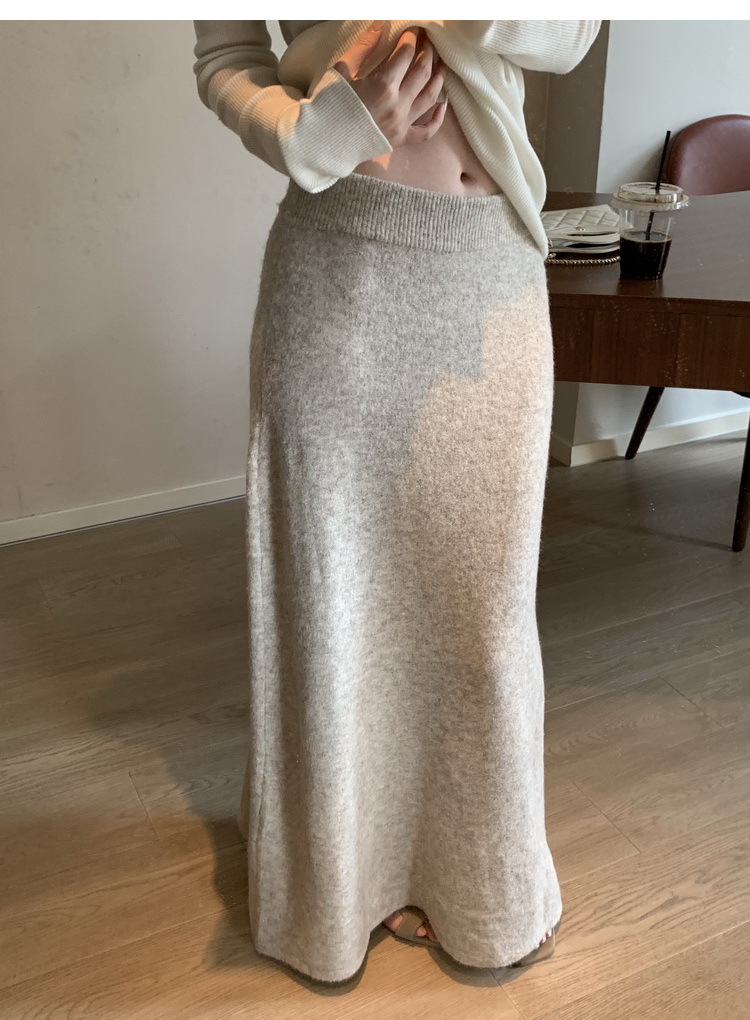 Knitted skirt women's 2025 autumn and winter high waist and thin casual versatile and thin drape long a-shaped skirt