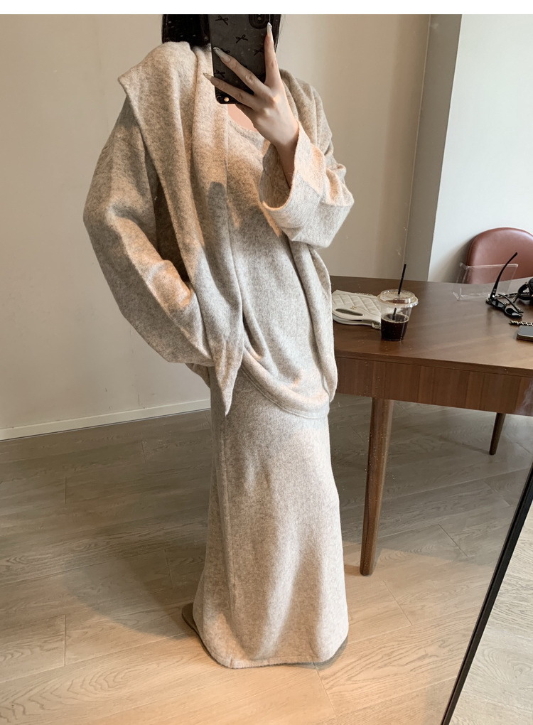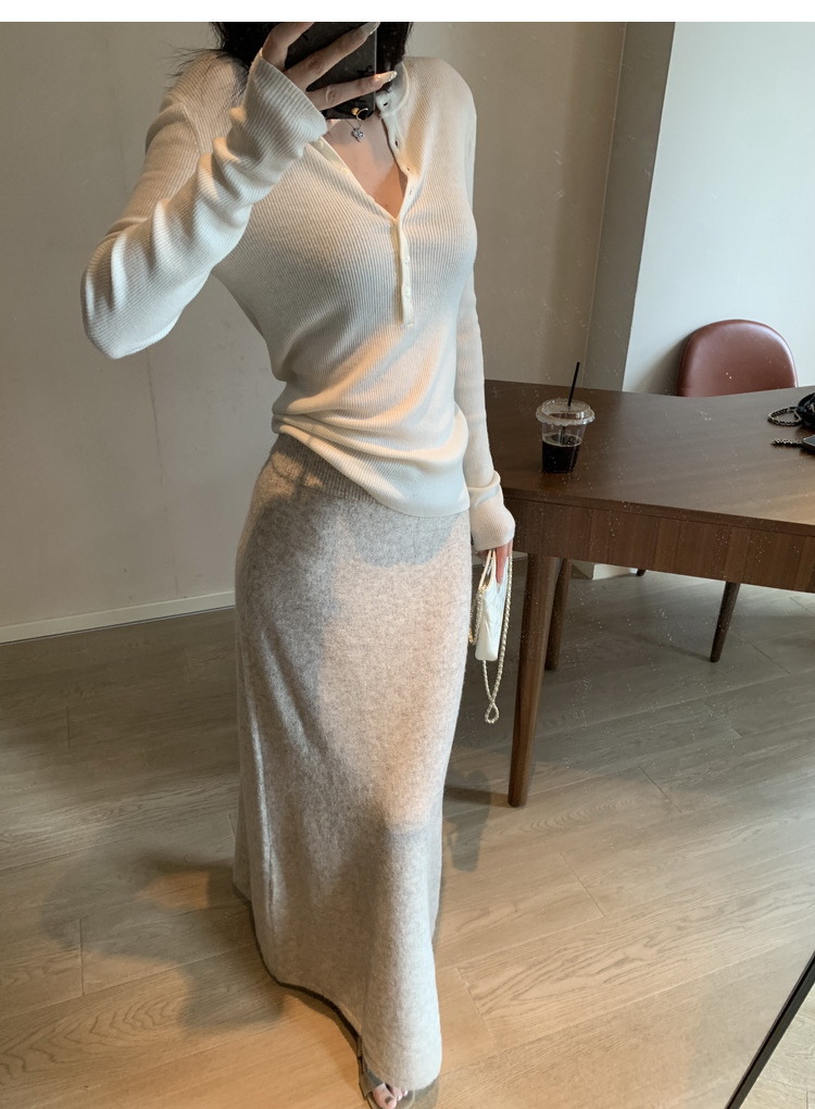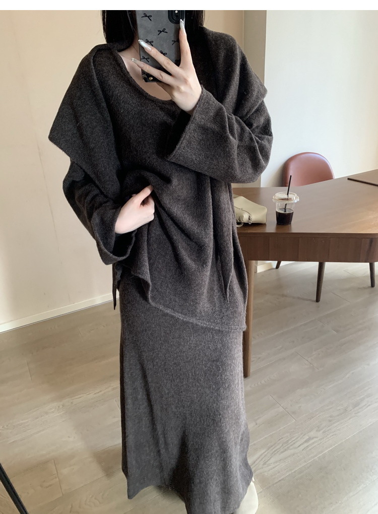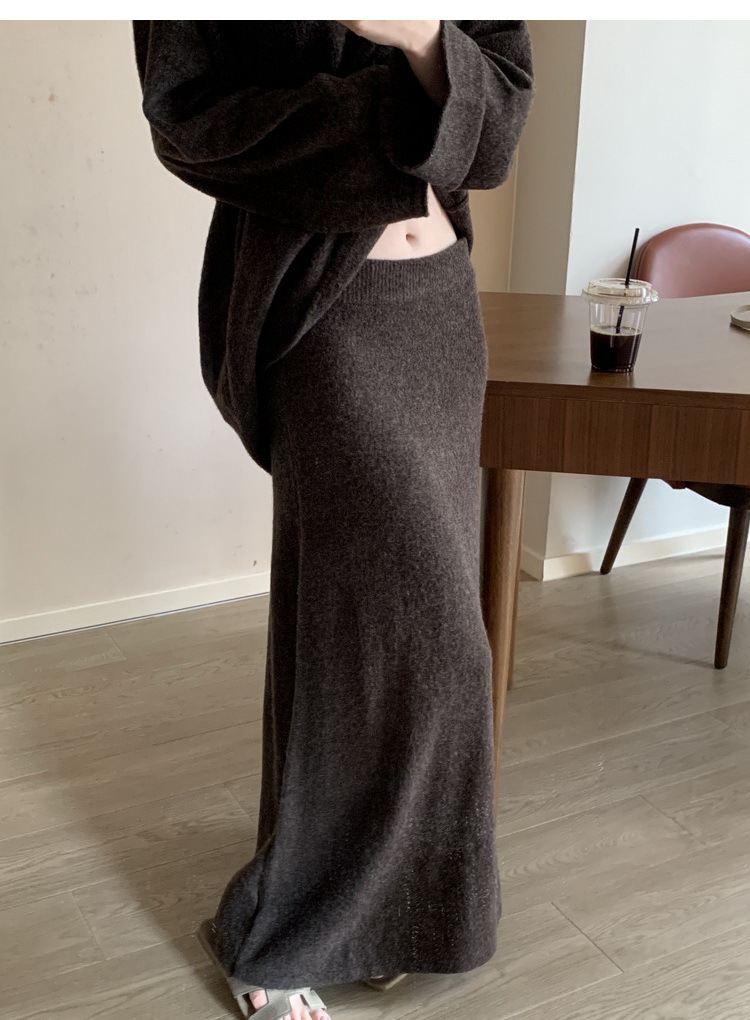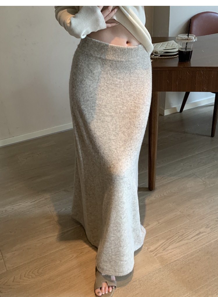 Knitted skirt women's 2025 autumn and winter high waist and thin casual versatile and thin drape long a-shaped skirt