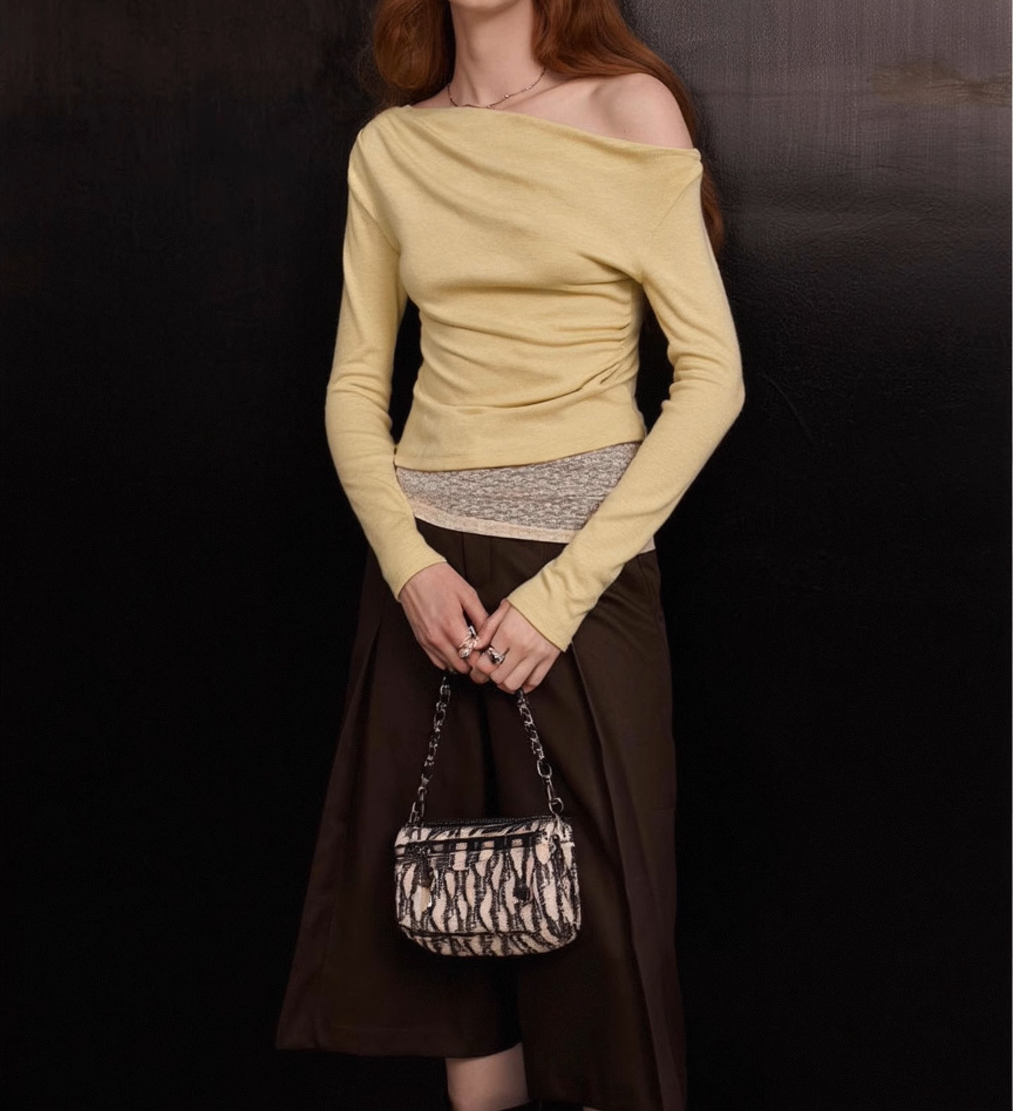 Lace splicing elegant temperament long-sleeved top 2025 autumn new gentle wind one-word collar T-shirt