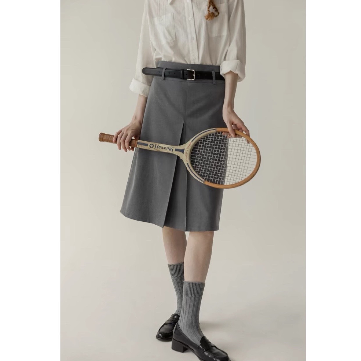 LANO middle waist wears pleated skirts on both sides, retro college temperament A-shaped skirt, skirt, medium and long skirt, spring and summer