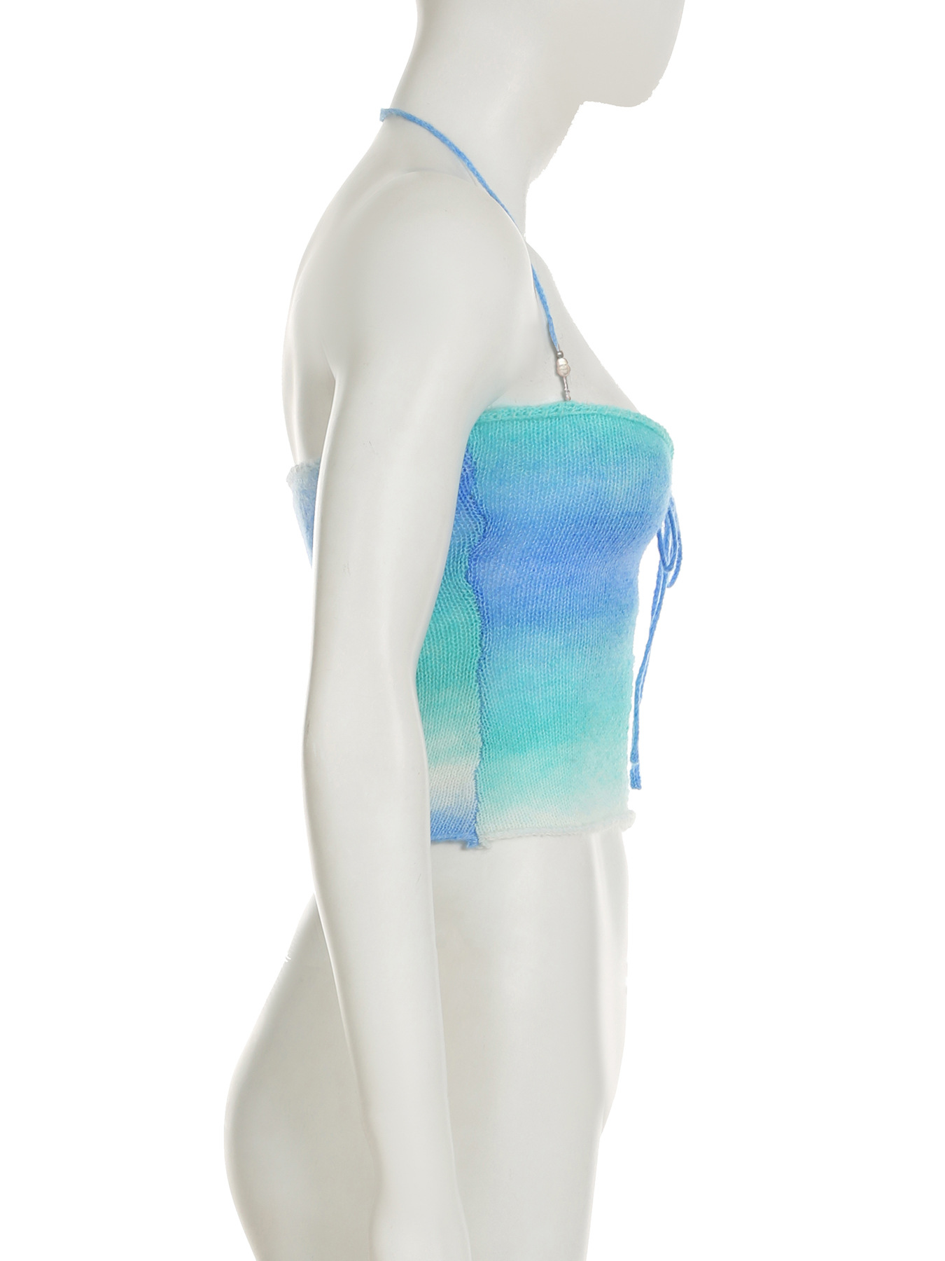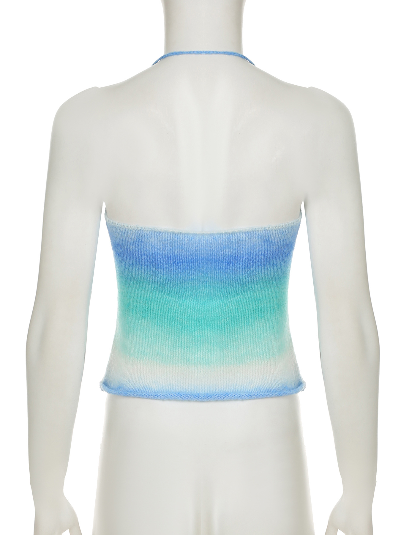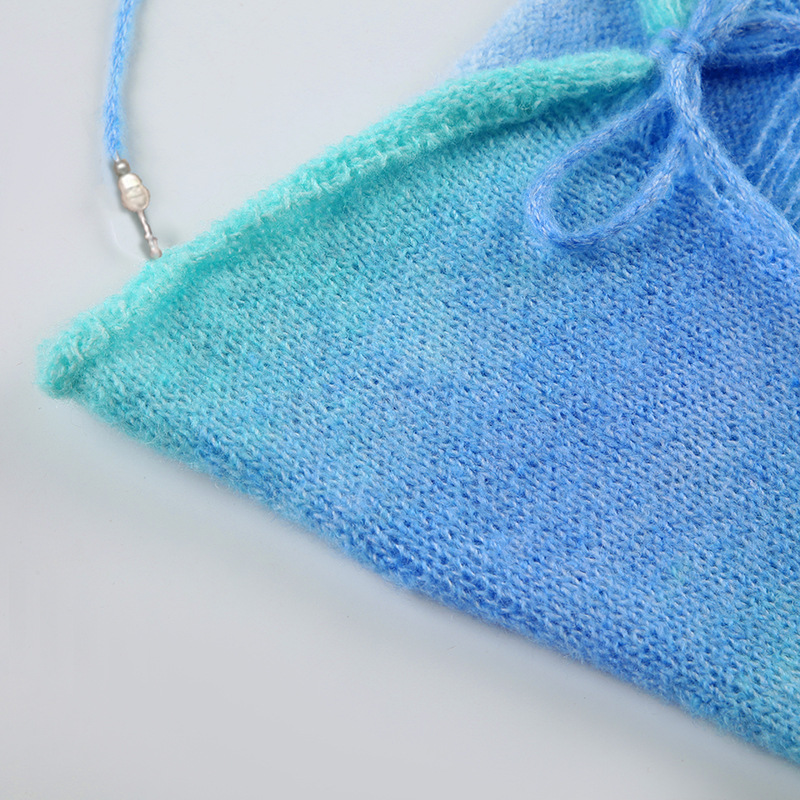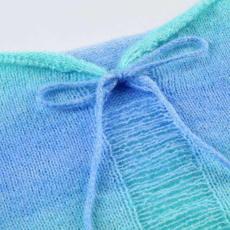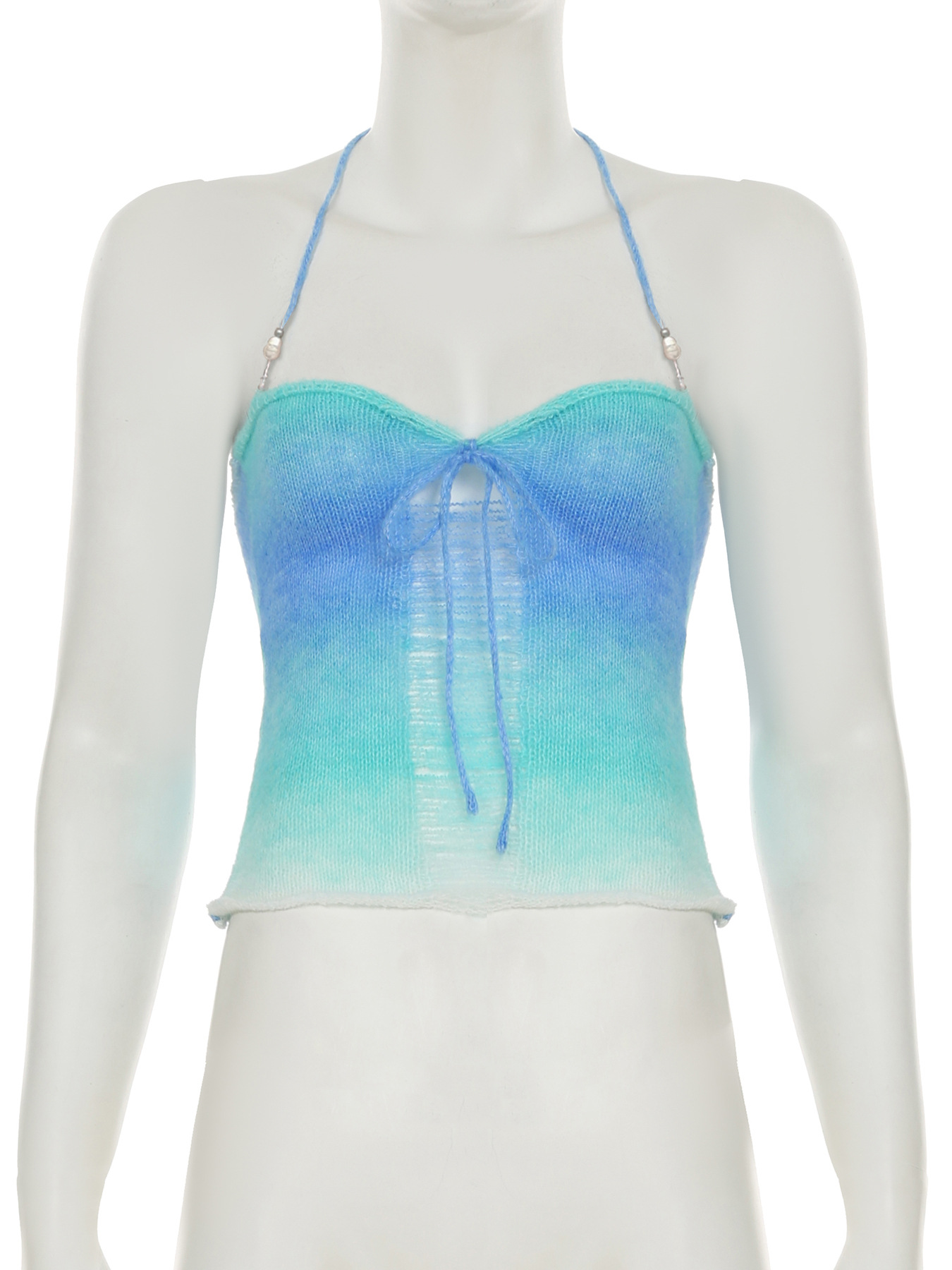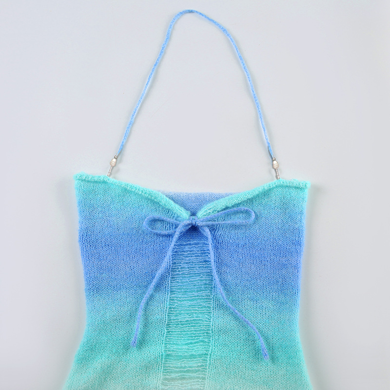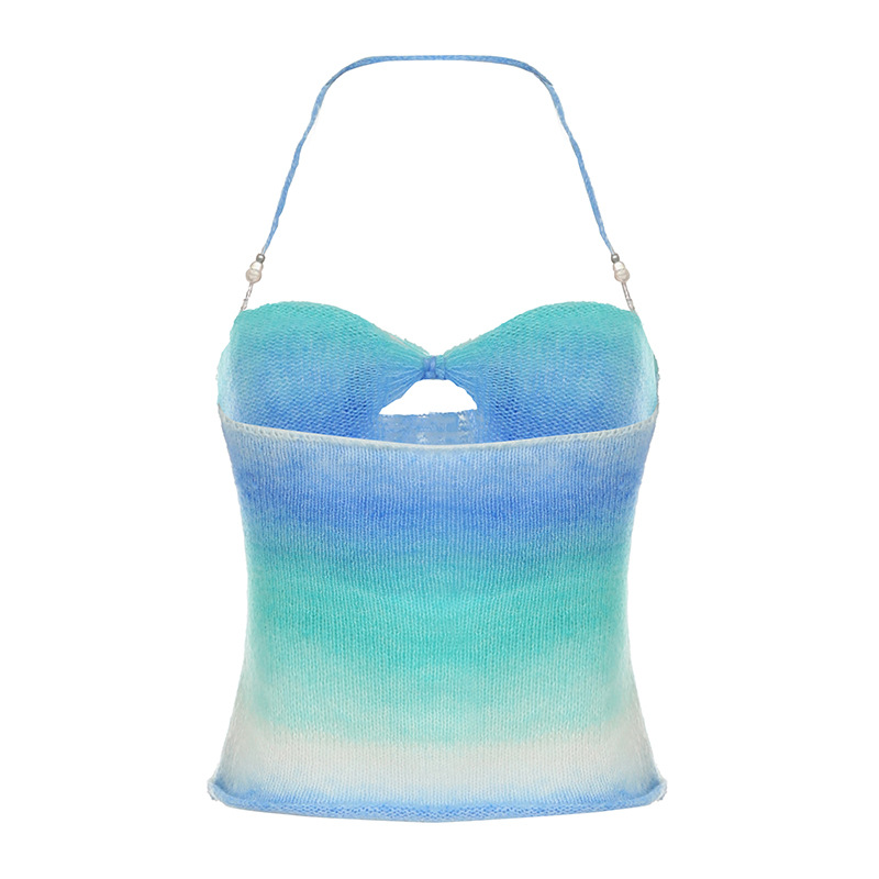 Little fresh girl dopamine gradual change color wool suspender design sense hollow low neck lace up sexy vest top