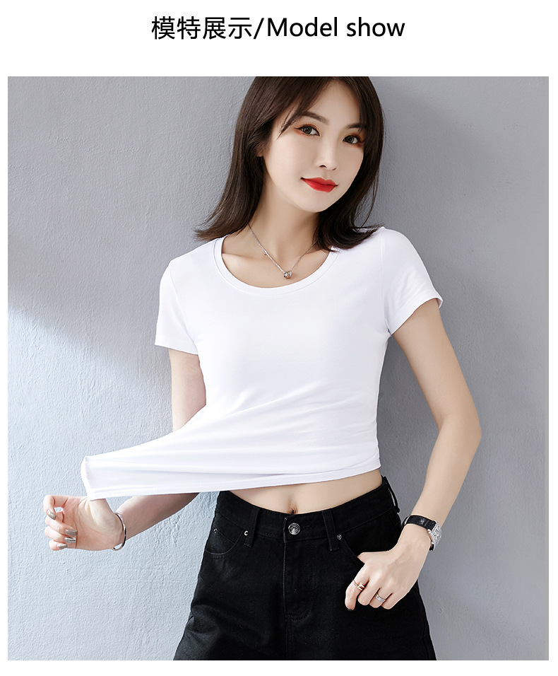 Lotus root pink short-sleeved t-shirt women's pure cotton waist summer 2025 early summer wear unique and beautiful waist pinch versatile top