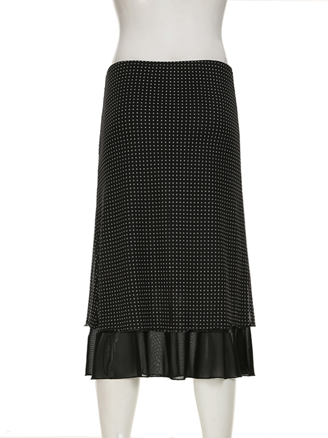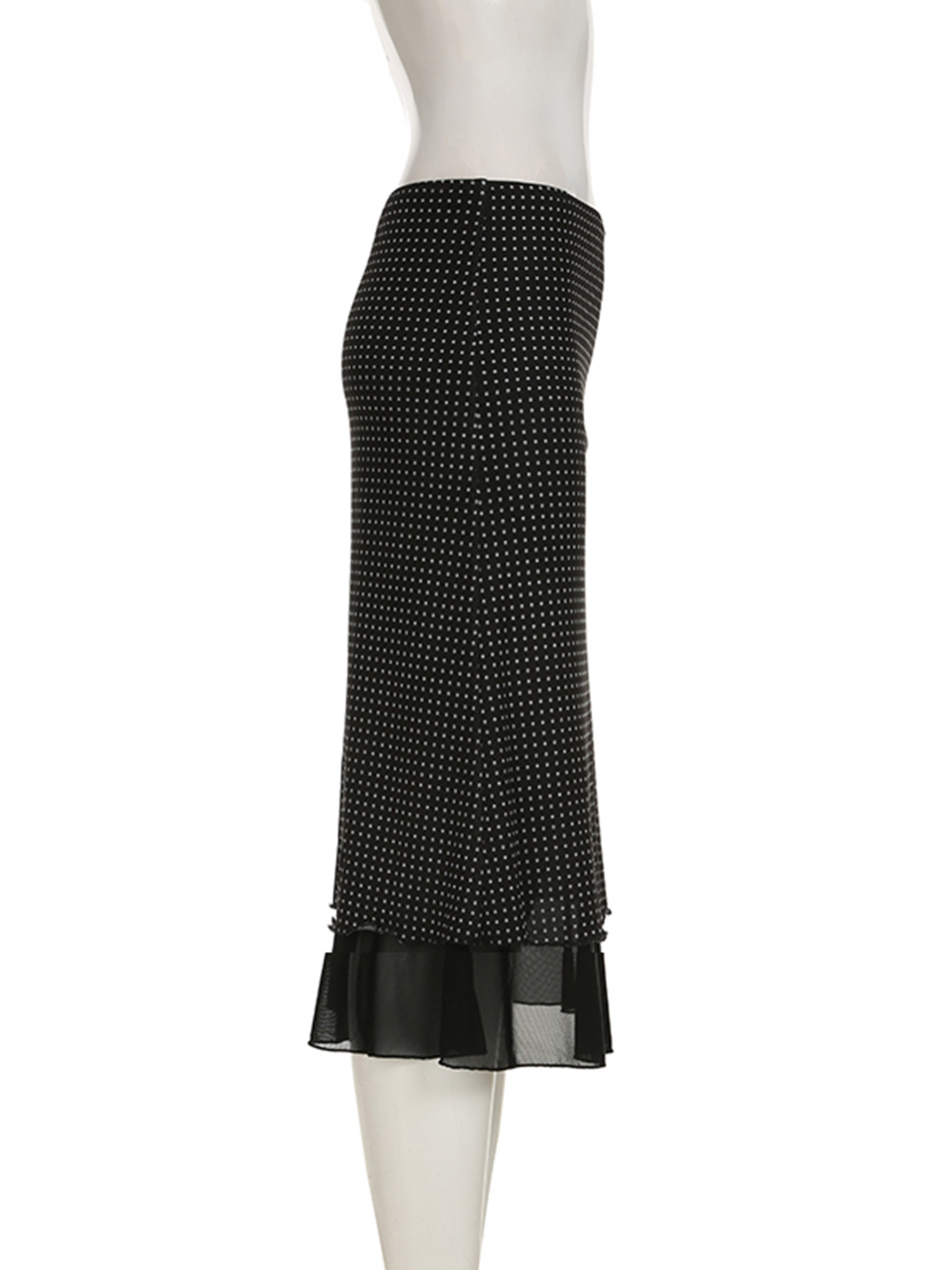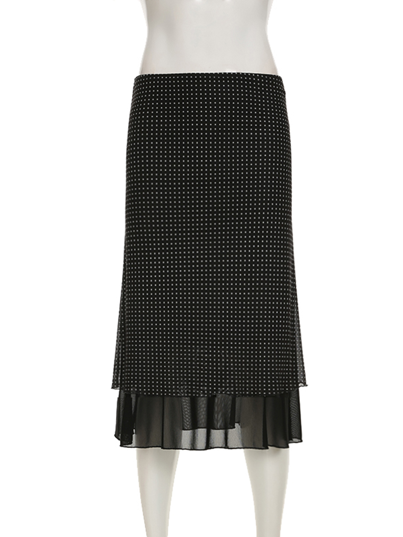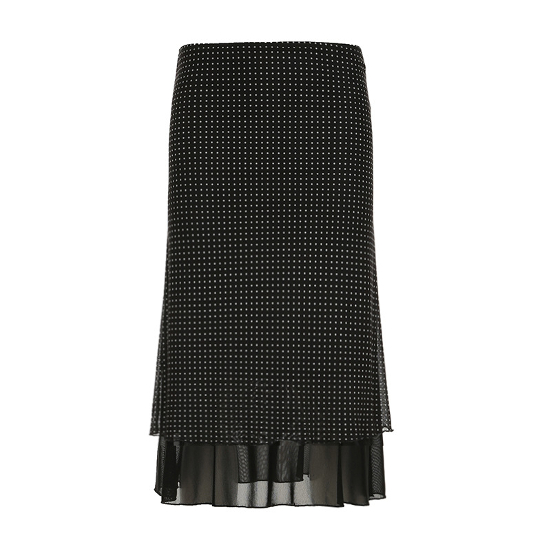 Love cloth forget American gentle wind polka dot double-layer mesh skirt temperament hip-wrapped straight long skirt summer new
