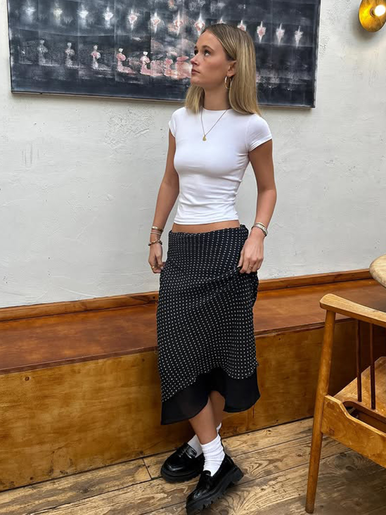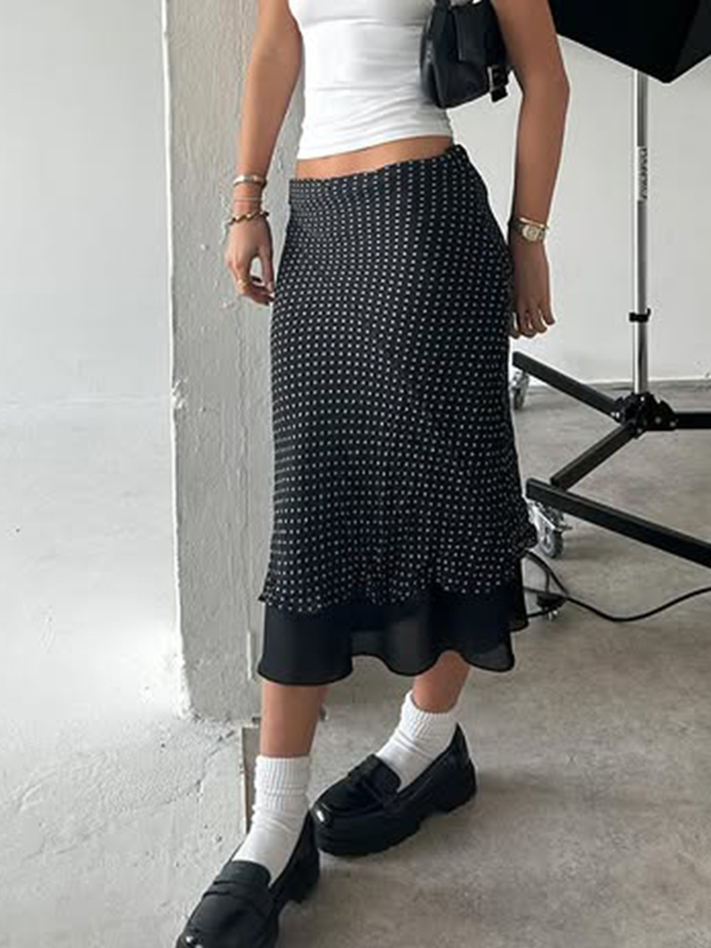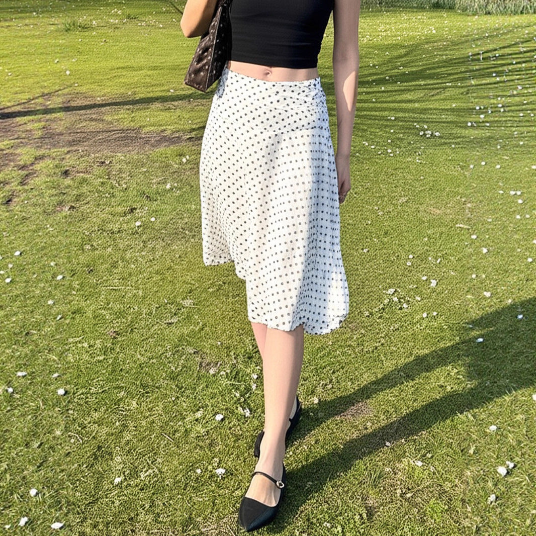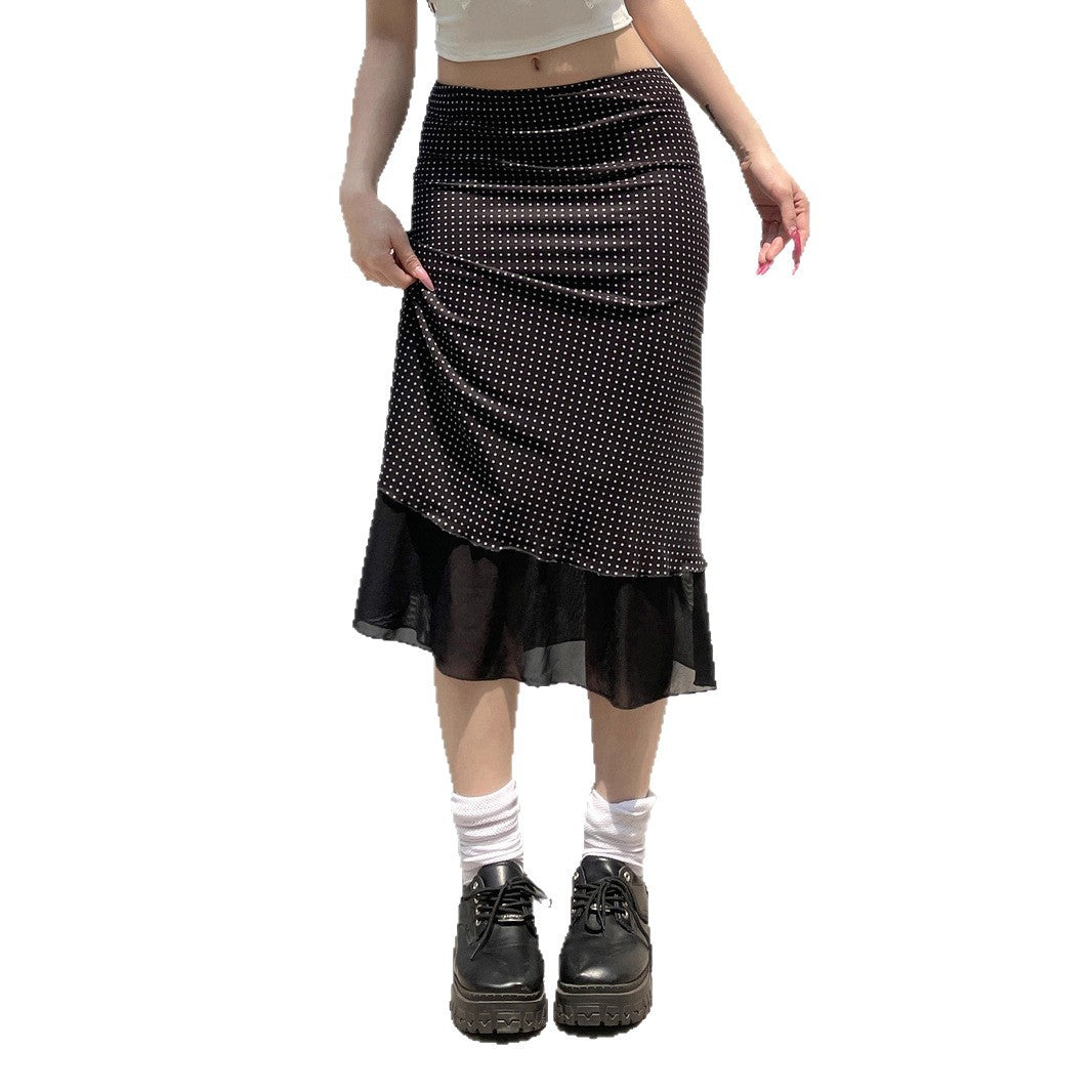 Love cloth forget American gentle wind polka dot double-layer mesh skirt temperament hip-wrapped straight long skirt summer new