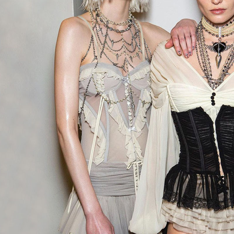 Love cloth forget fashion ballet style mesh split three-dimensional gradual change lace vest short skirt two-piece set Spice Girl suit