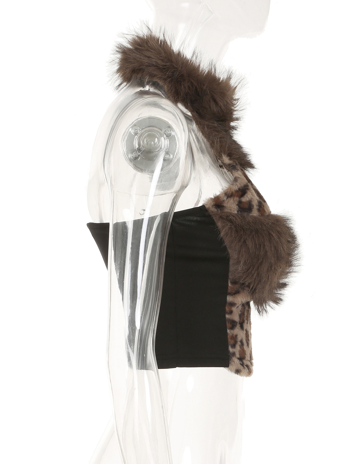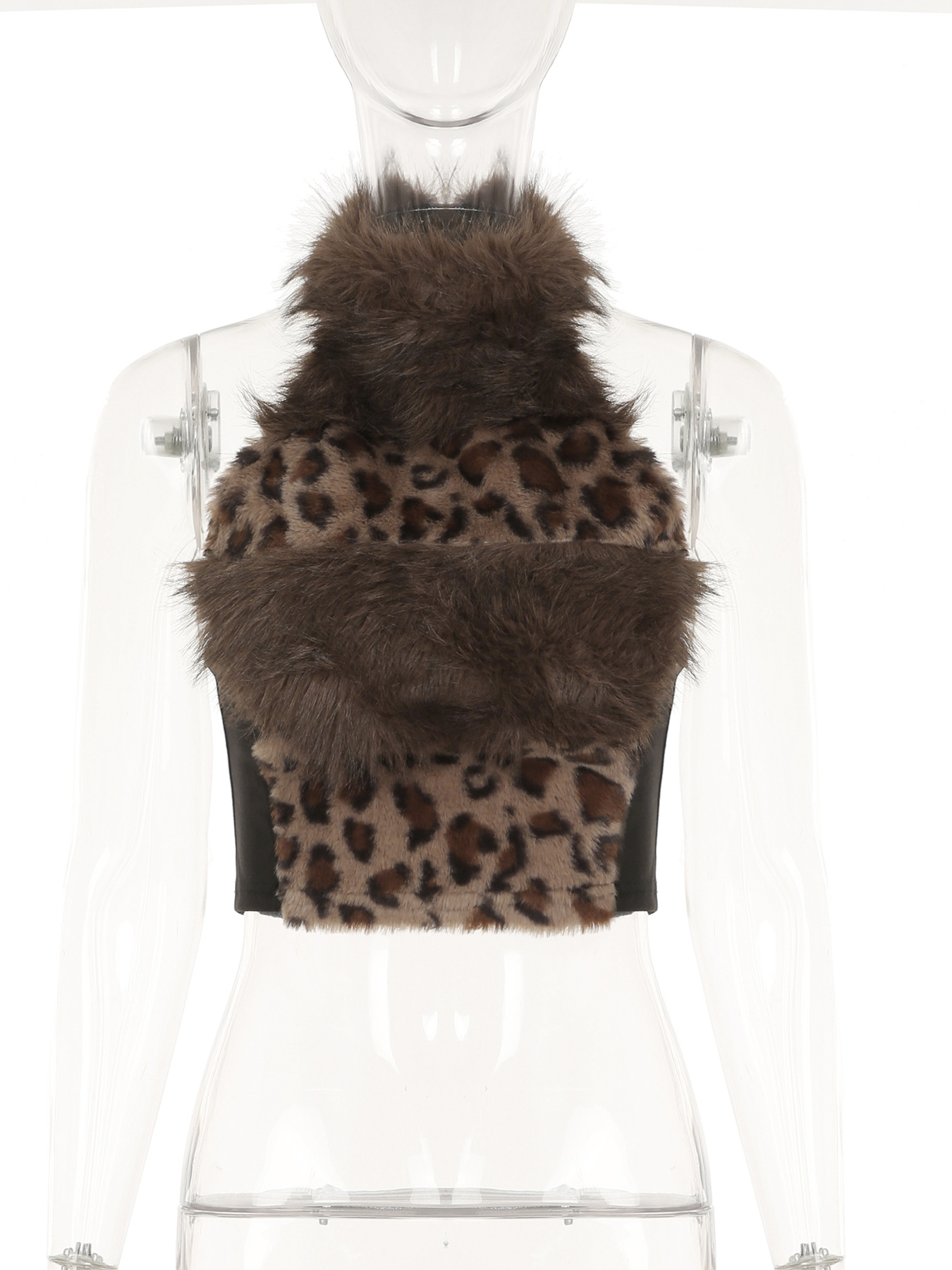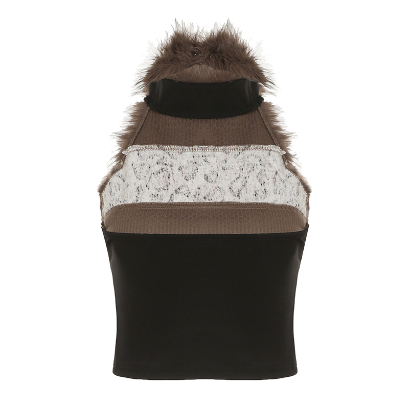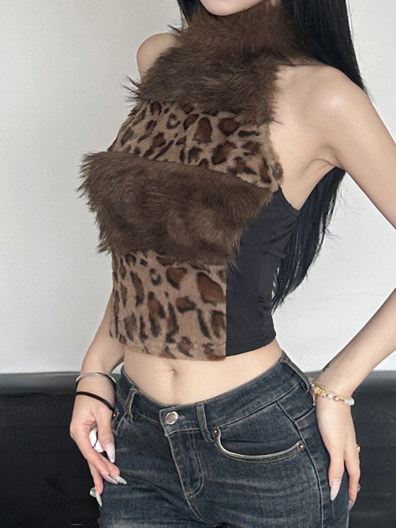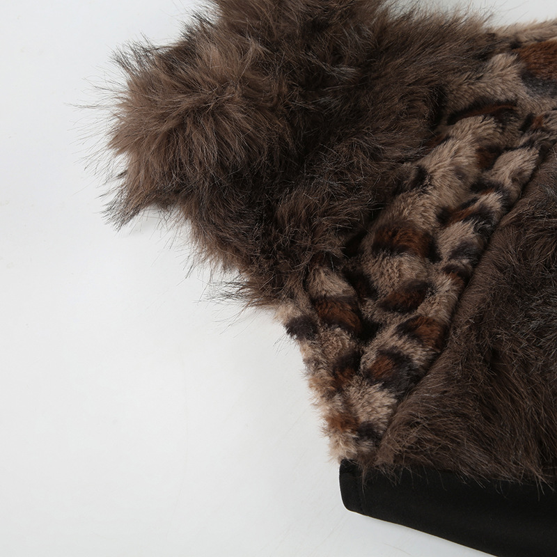 Love cloth forget hot leopard print fluff splicing turtleneck shoulder digging vest female hottie thin waist turtleneck top