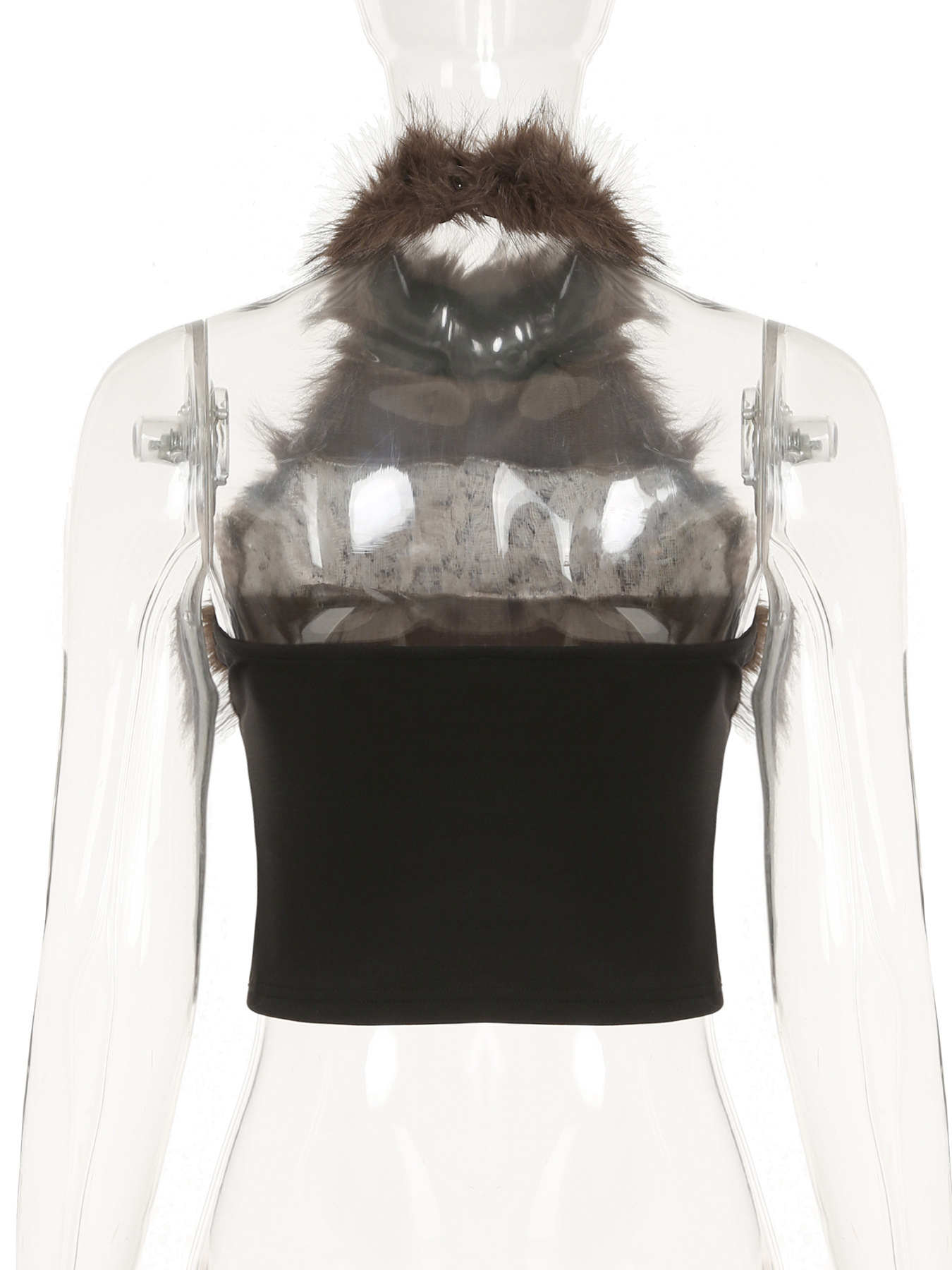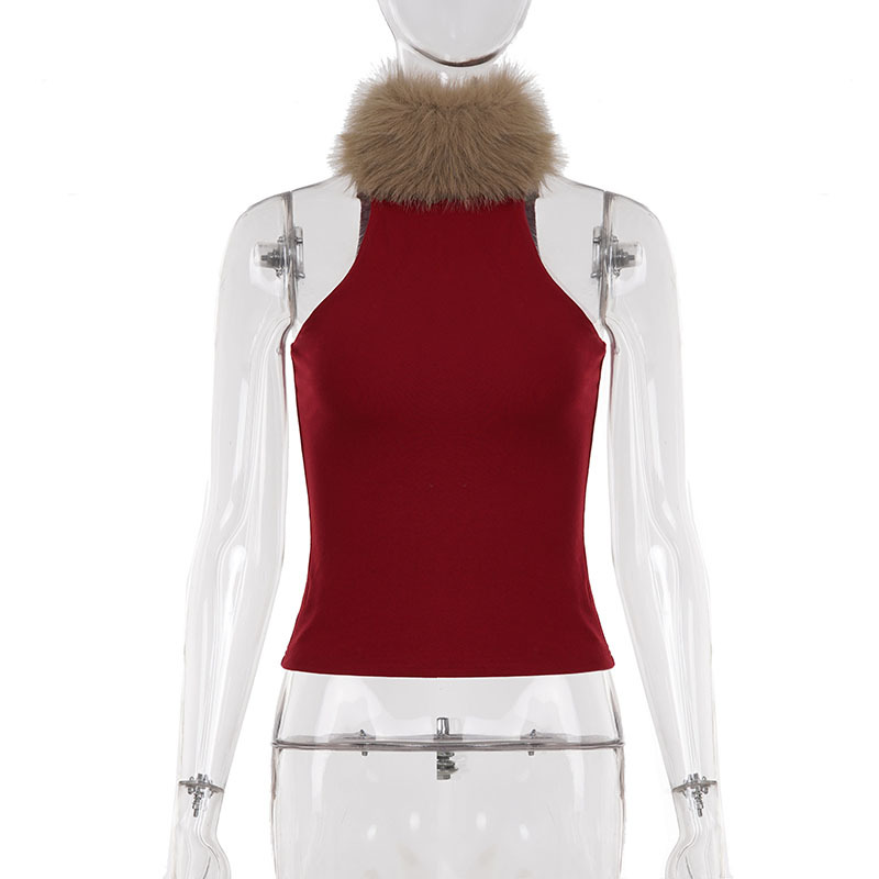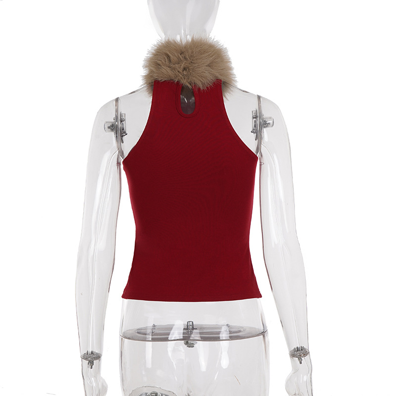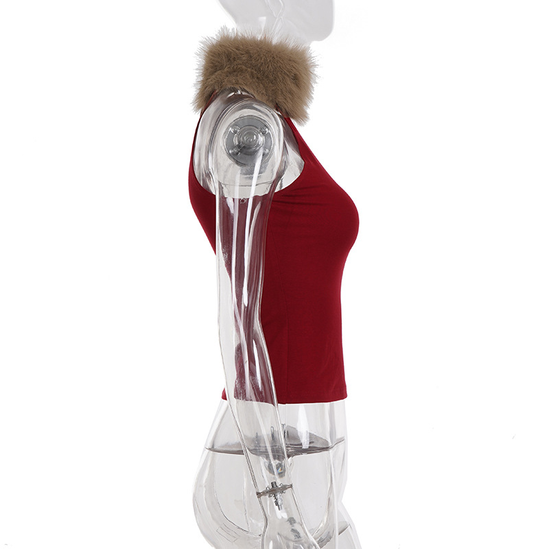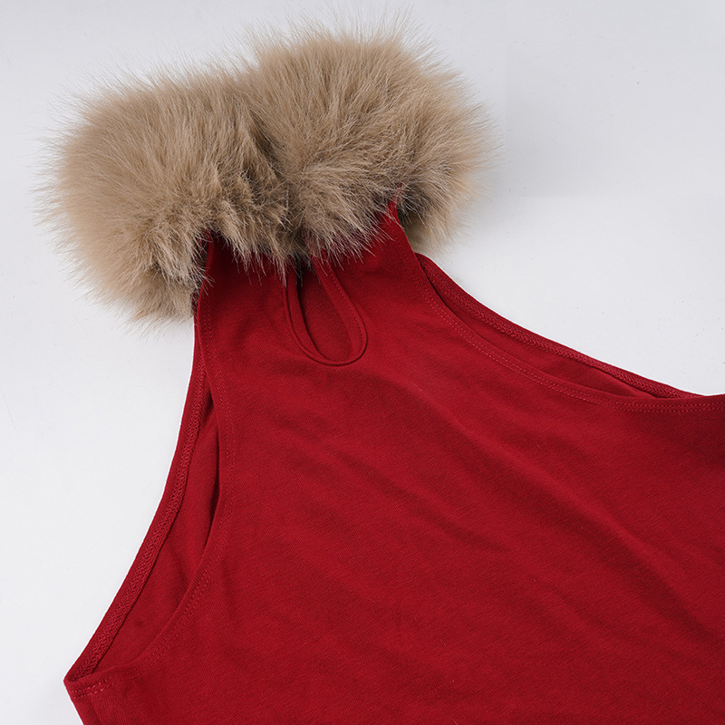 Love cloth forget hot leopard print fluff splicing turtleneck shoulder digging vest female hottie thin waist turtleneck top