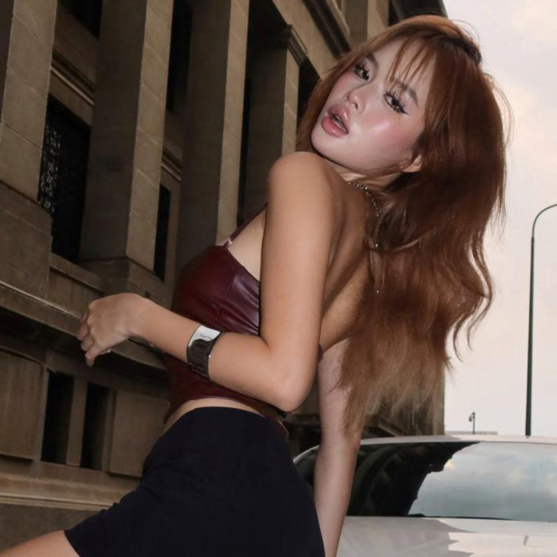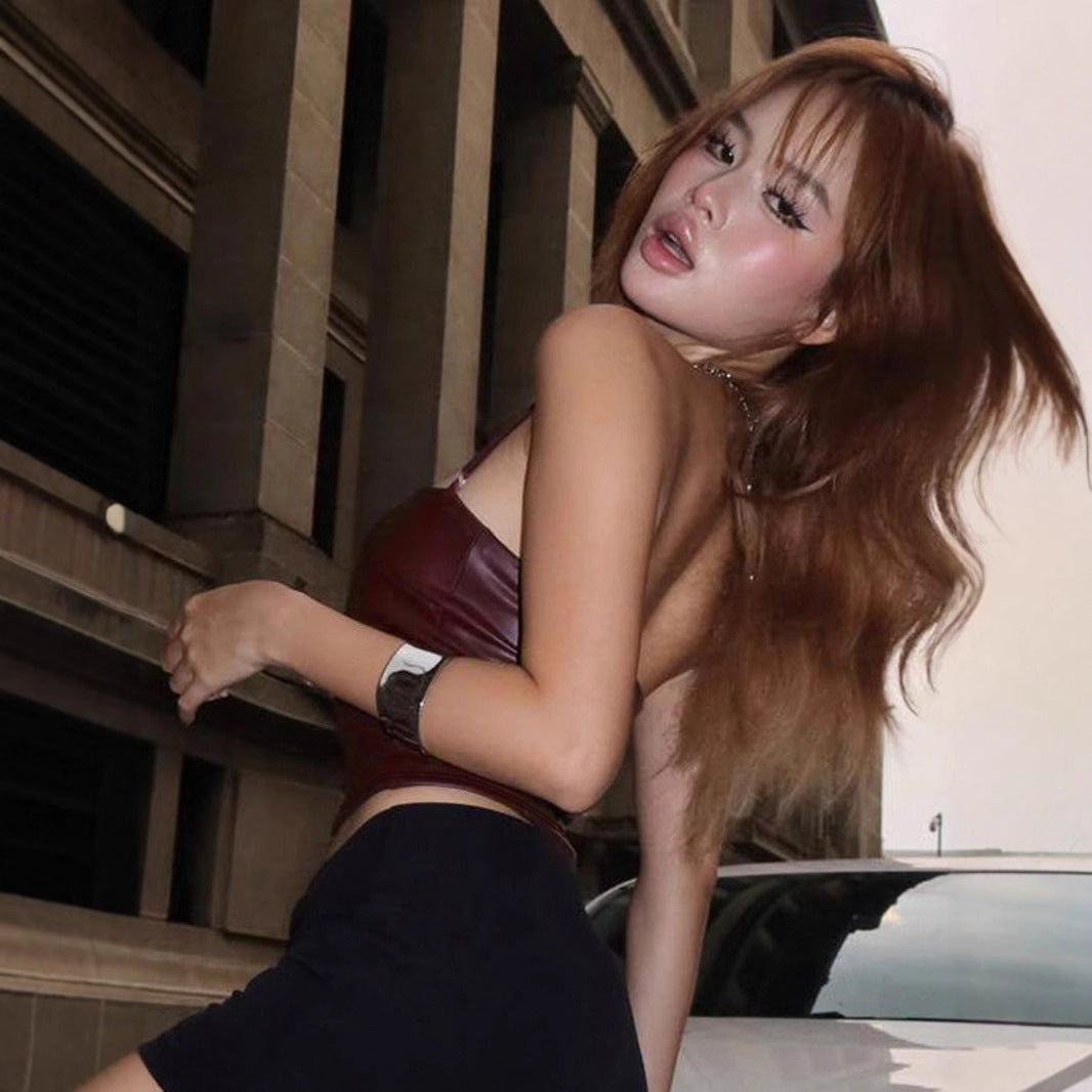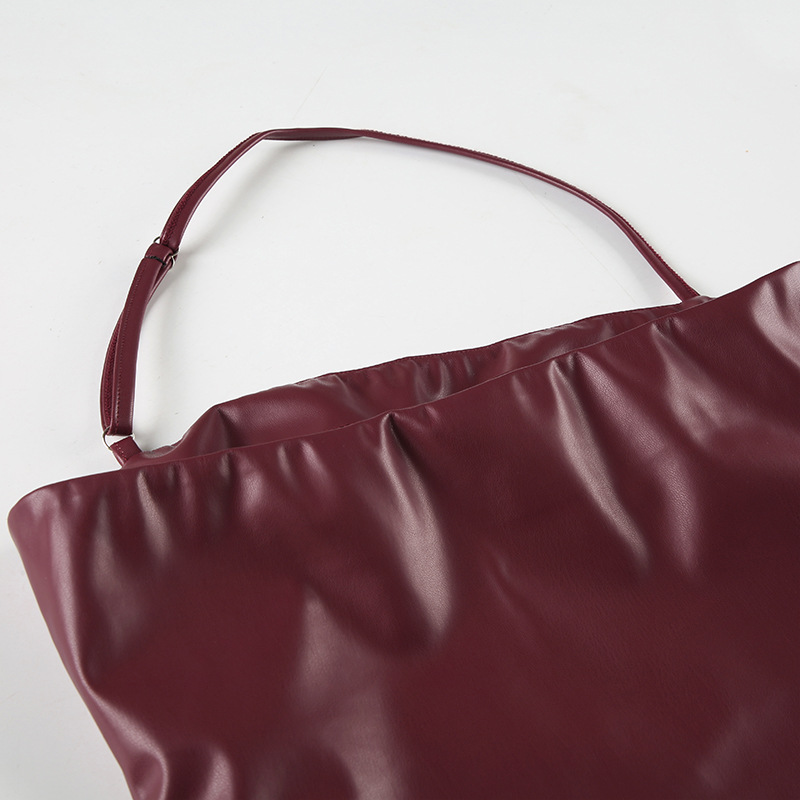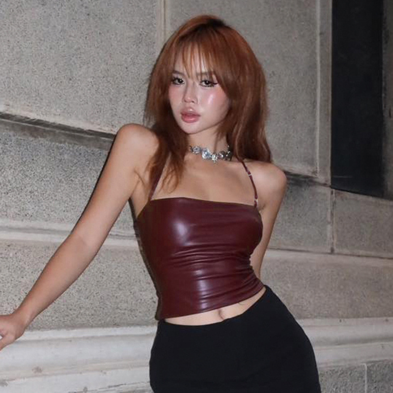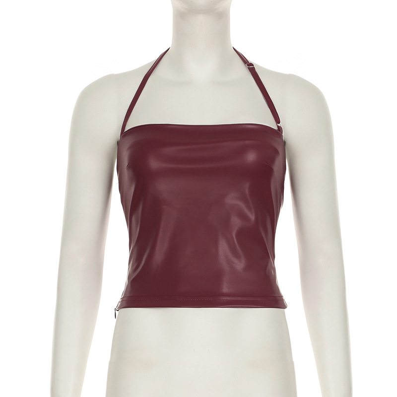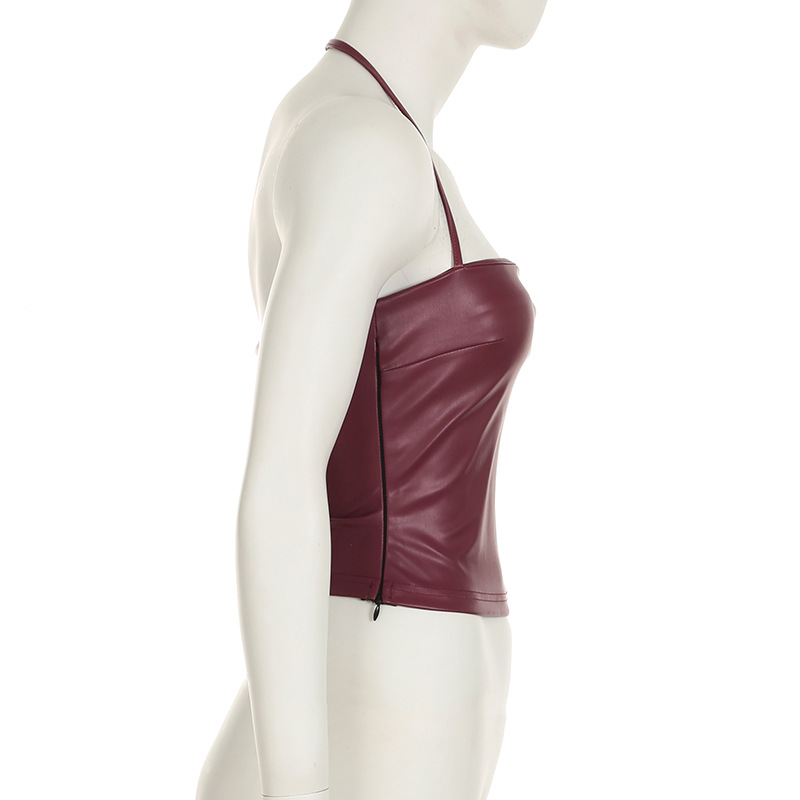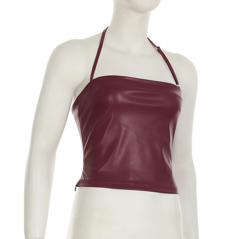 Love cloth forget locomotive wind girl wine PU splicing one word shoulder neck vest hot sexy outerwear halter top