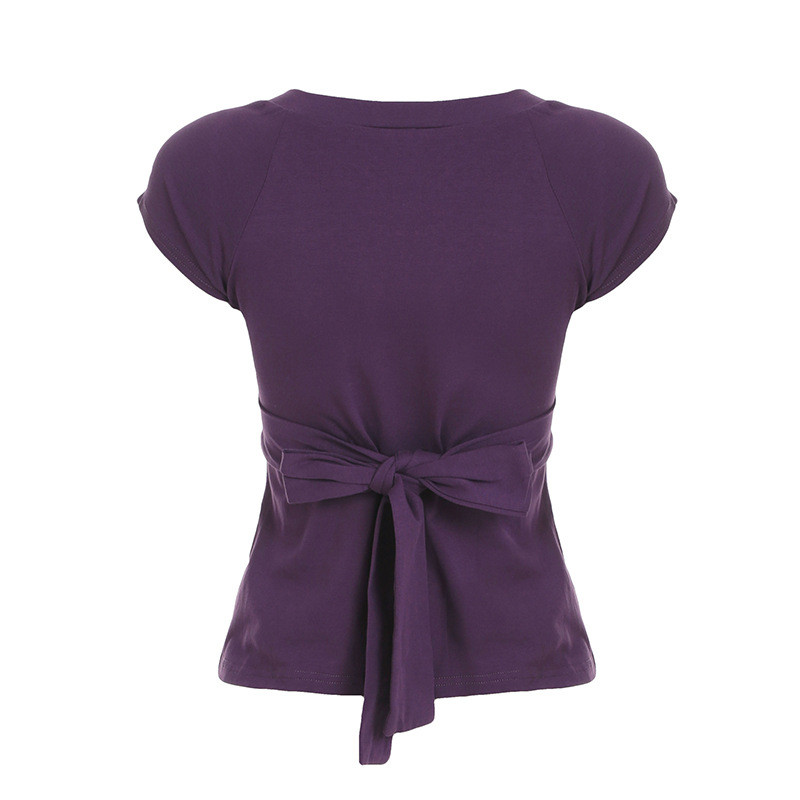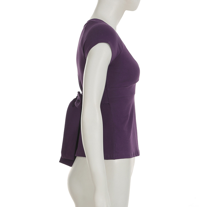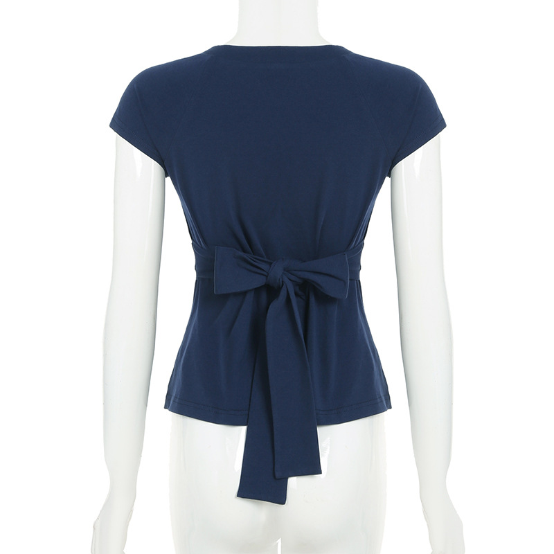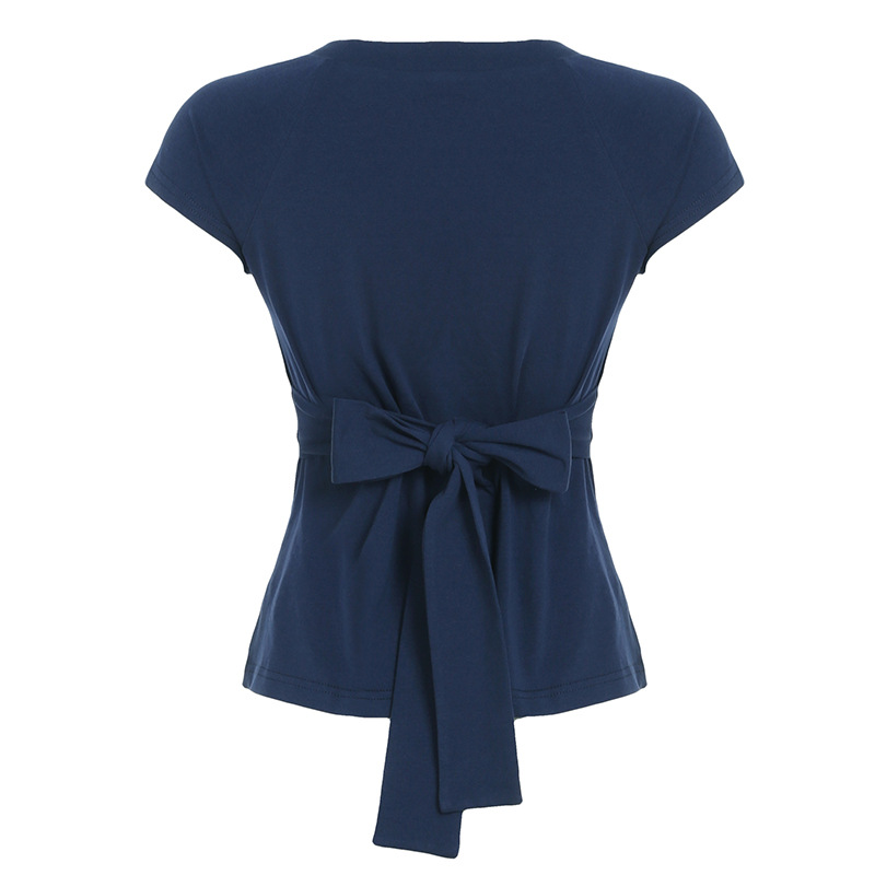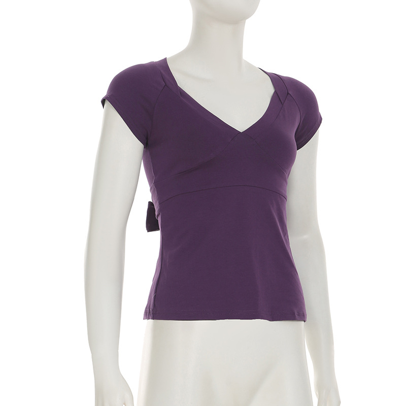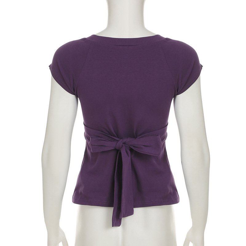 Love cloth forget pure desire style fashion splicing chest short-sleeved T-shirt Spice girl back strap bow base top