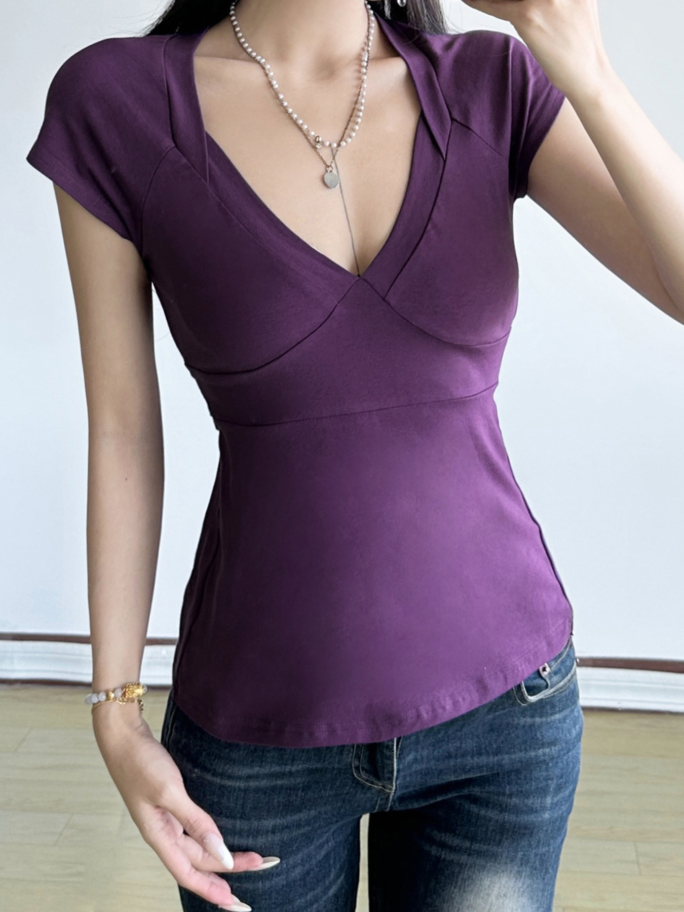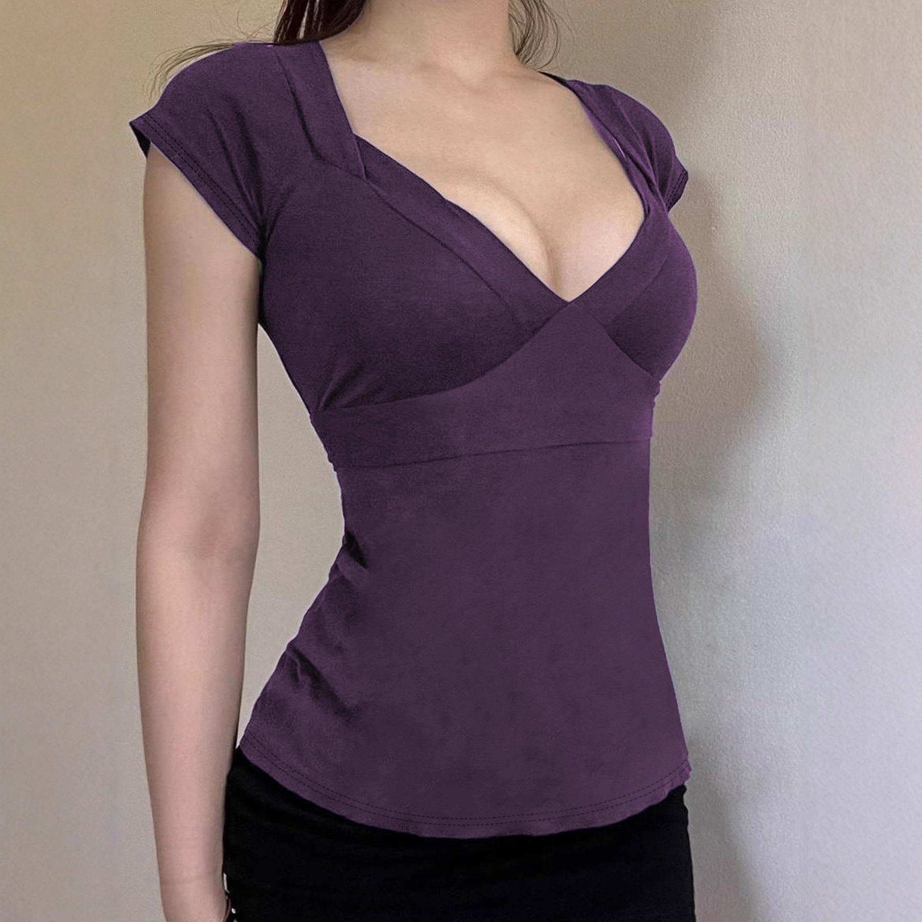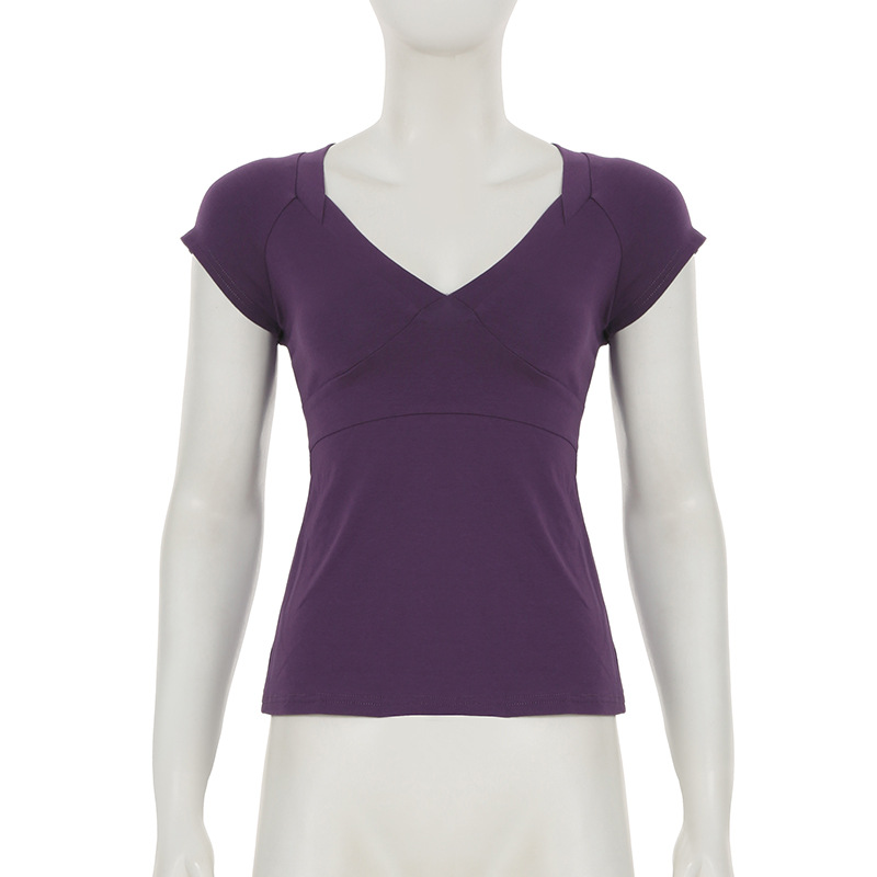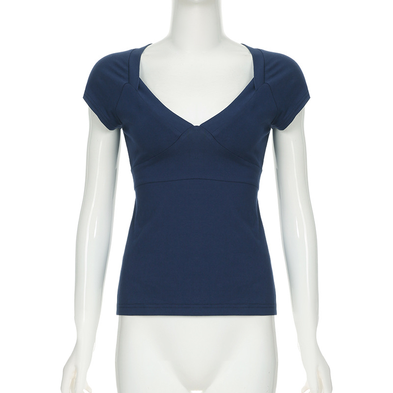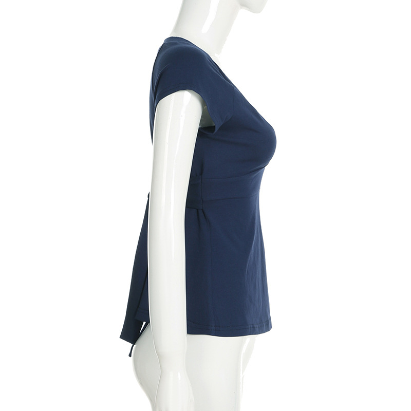 Love cloth forget pure desire style fashion splicing chest short-sleeved T-shirt Spice girl back strap bow base top