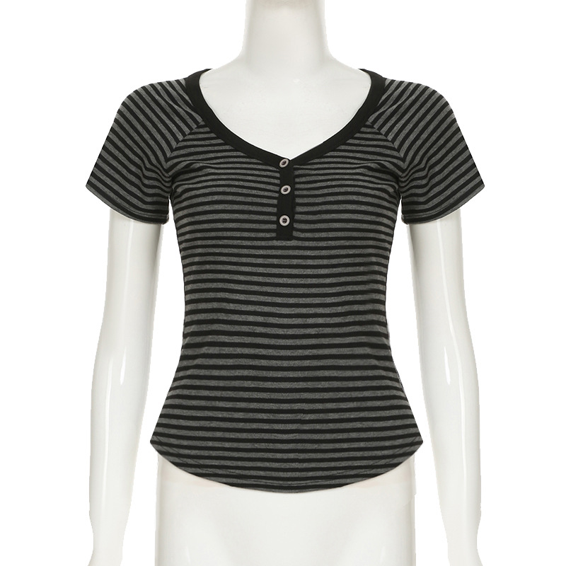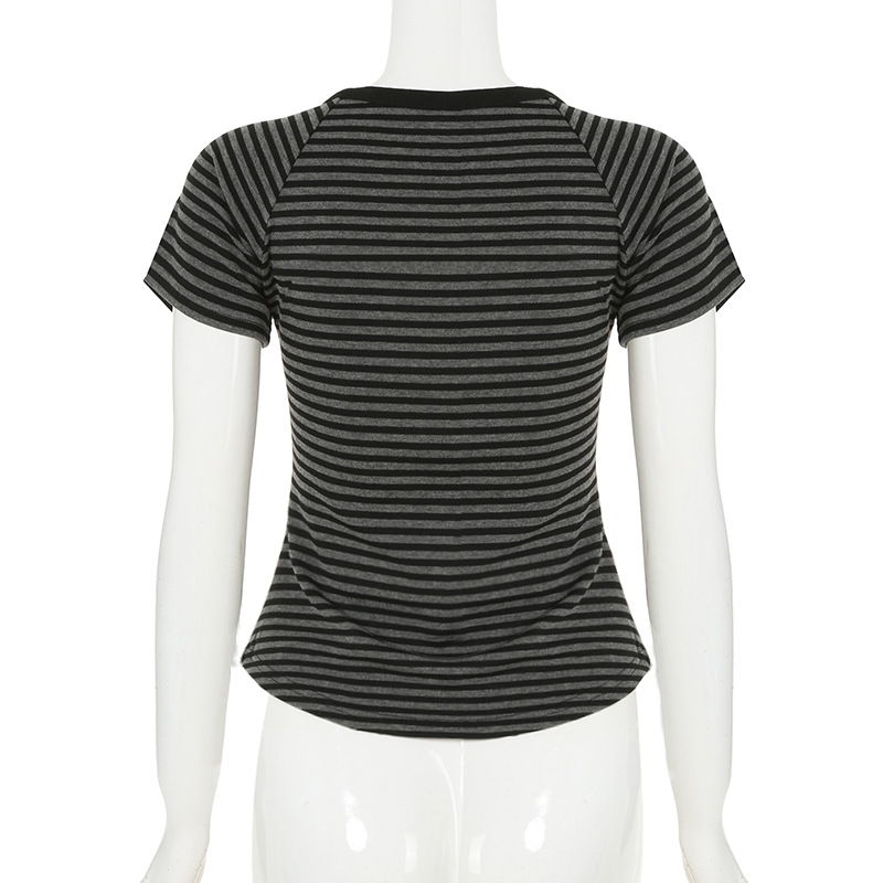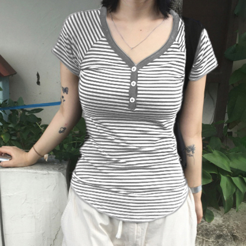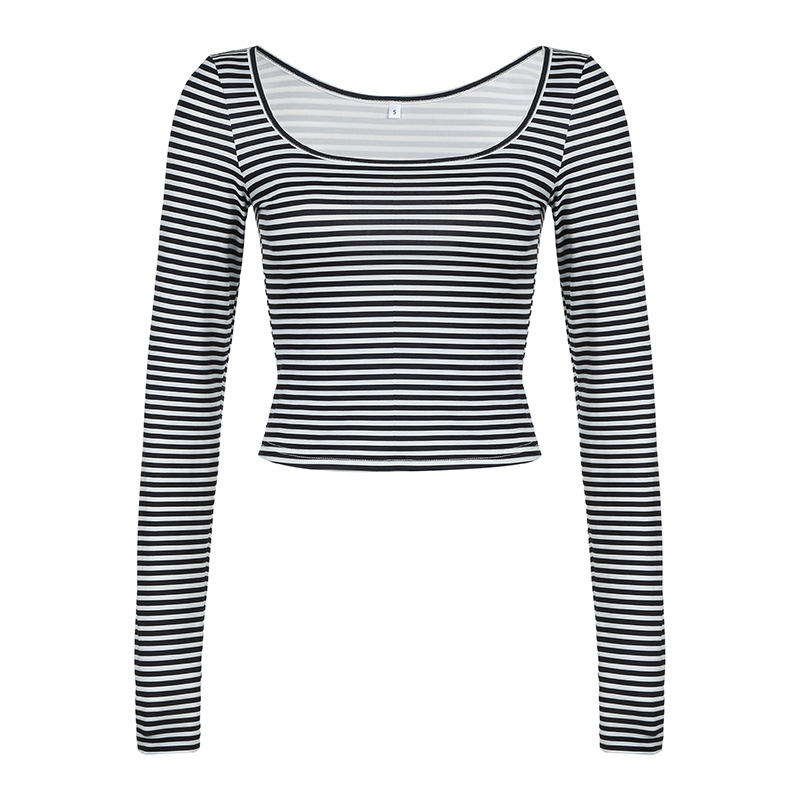 Love cloth forget slanted shoulder striped light and slim long-sleeved T-shirt sexy off-shoulder simple versatile and thin casual top