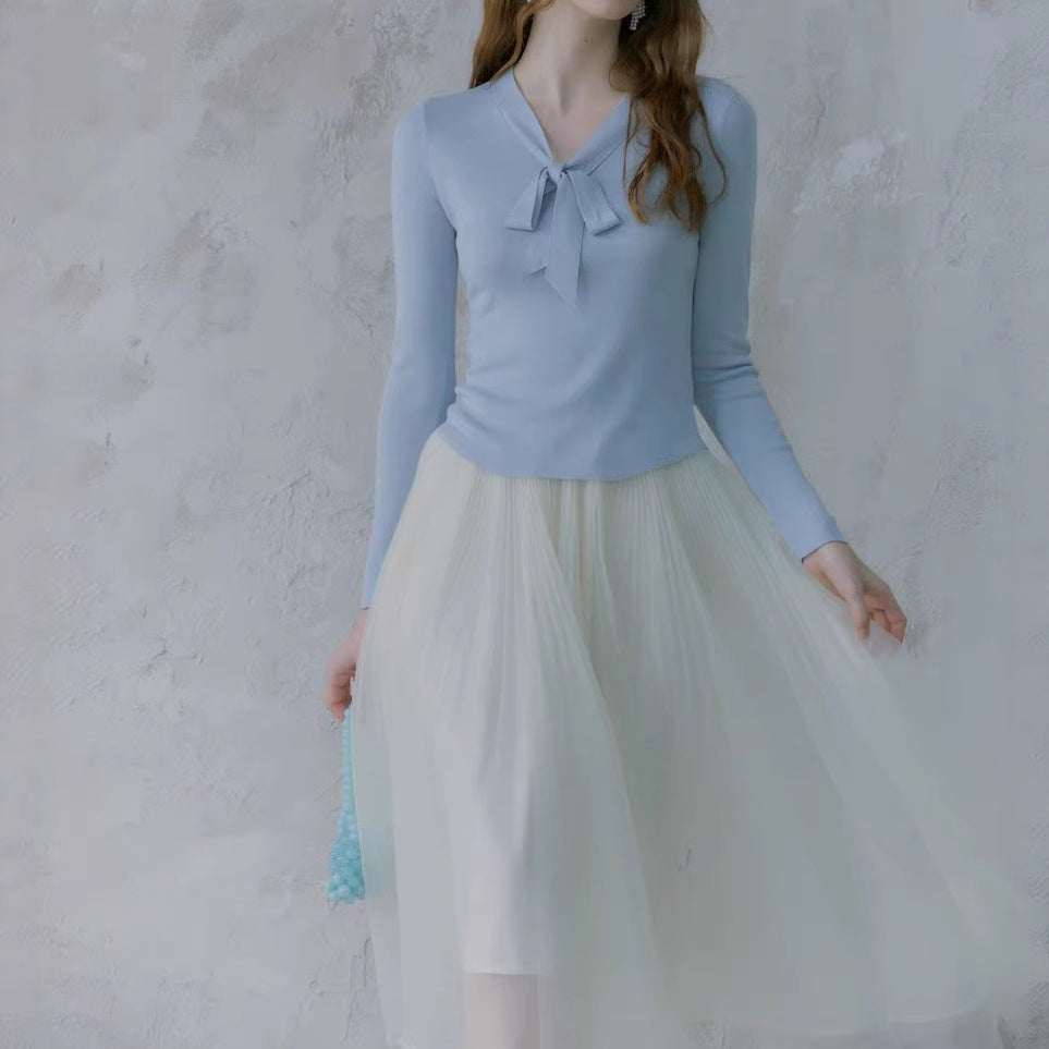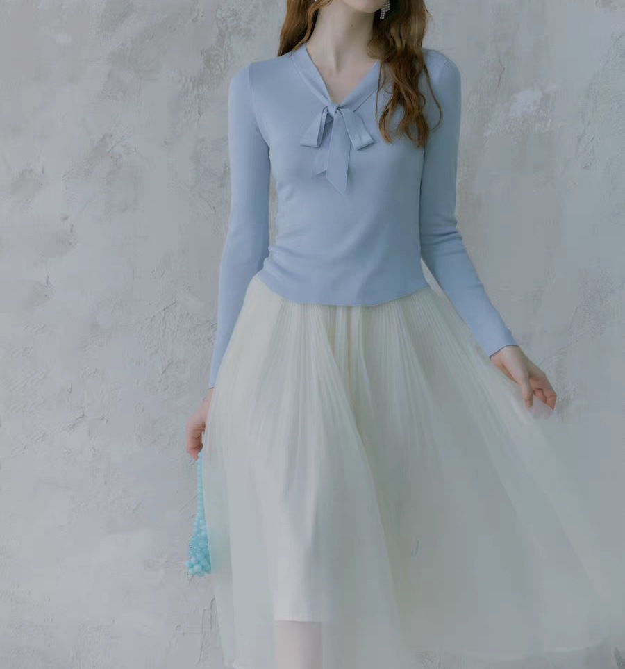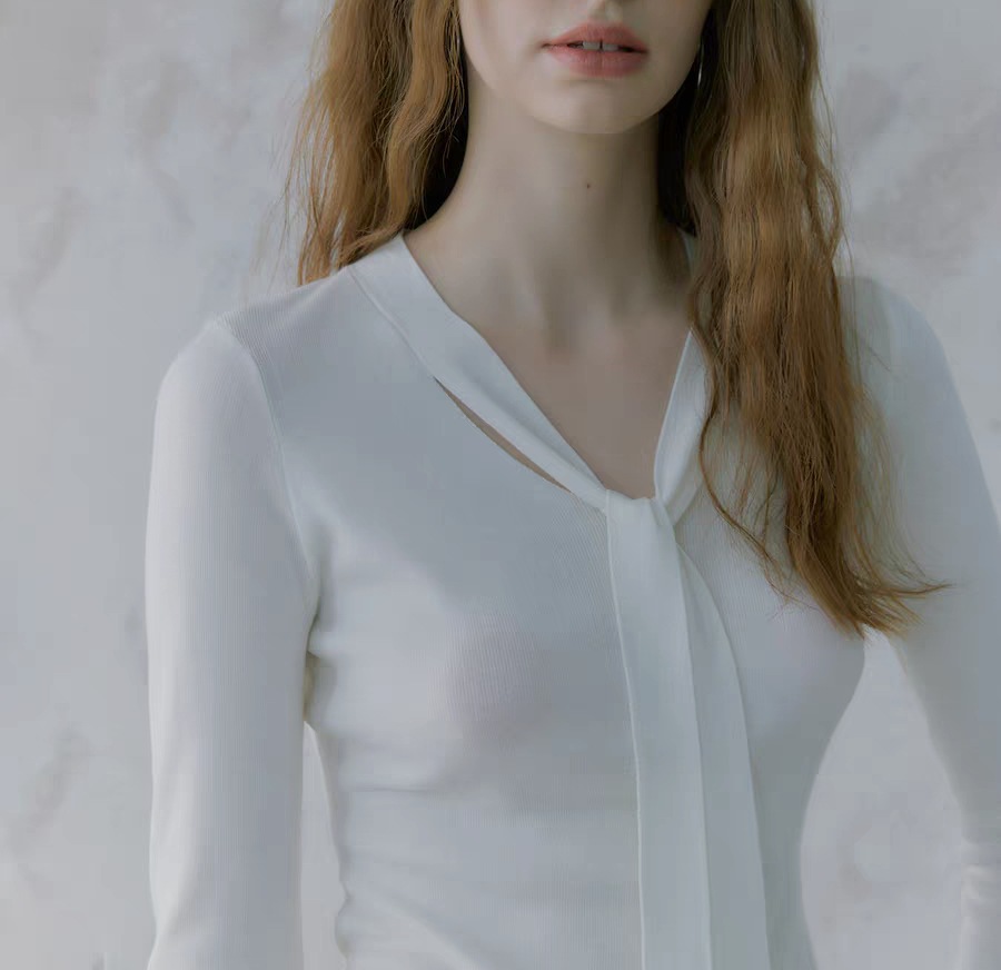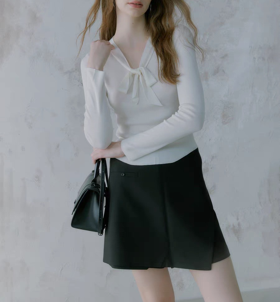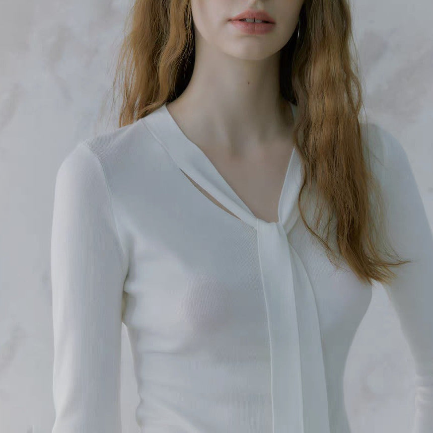 Lyocell silk wool blend! 2-color simple slim-fitting V-neck streamer knitted sweater bottoming shirt for women