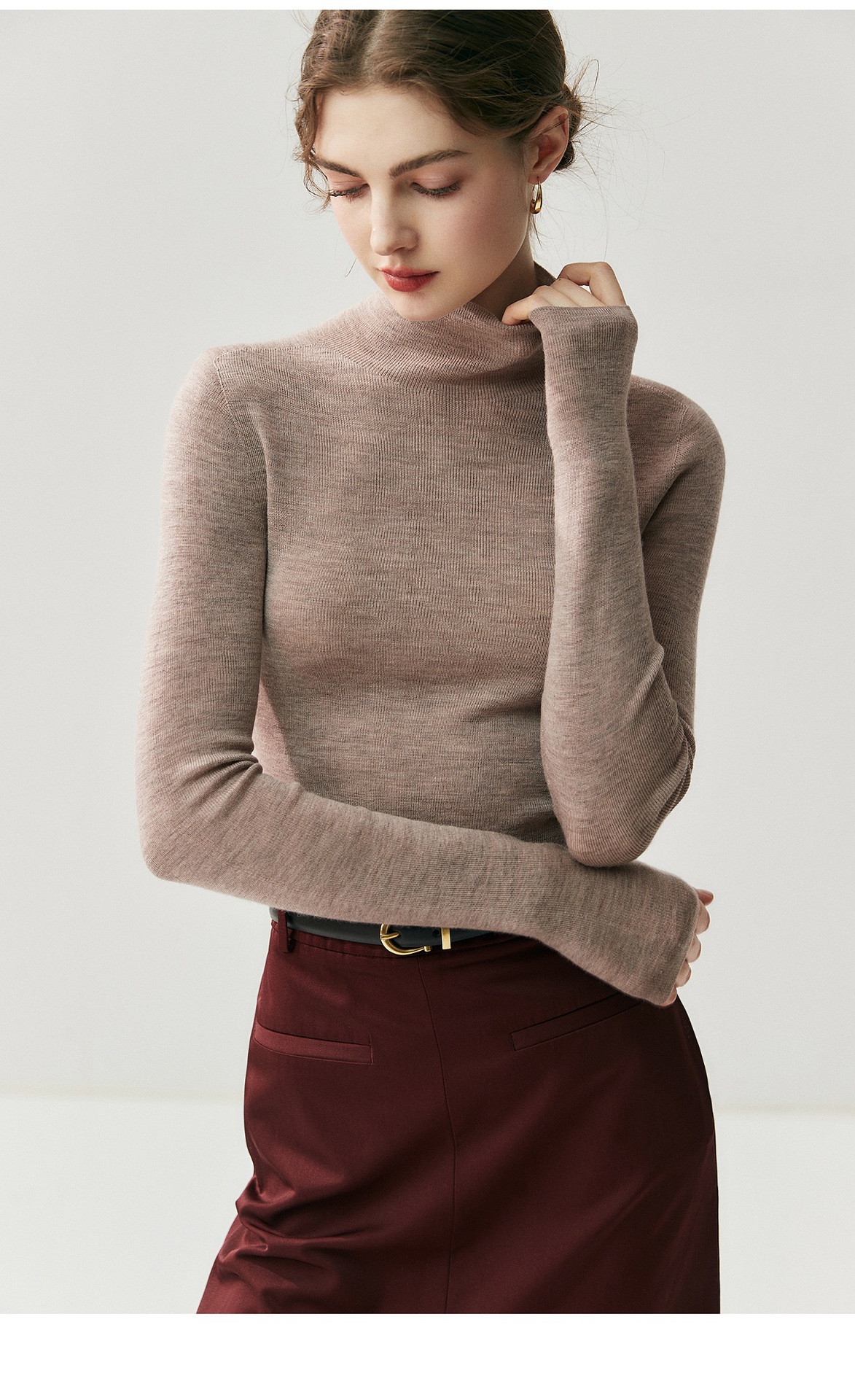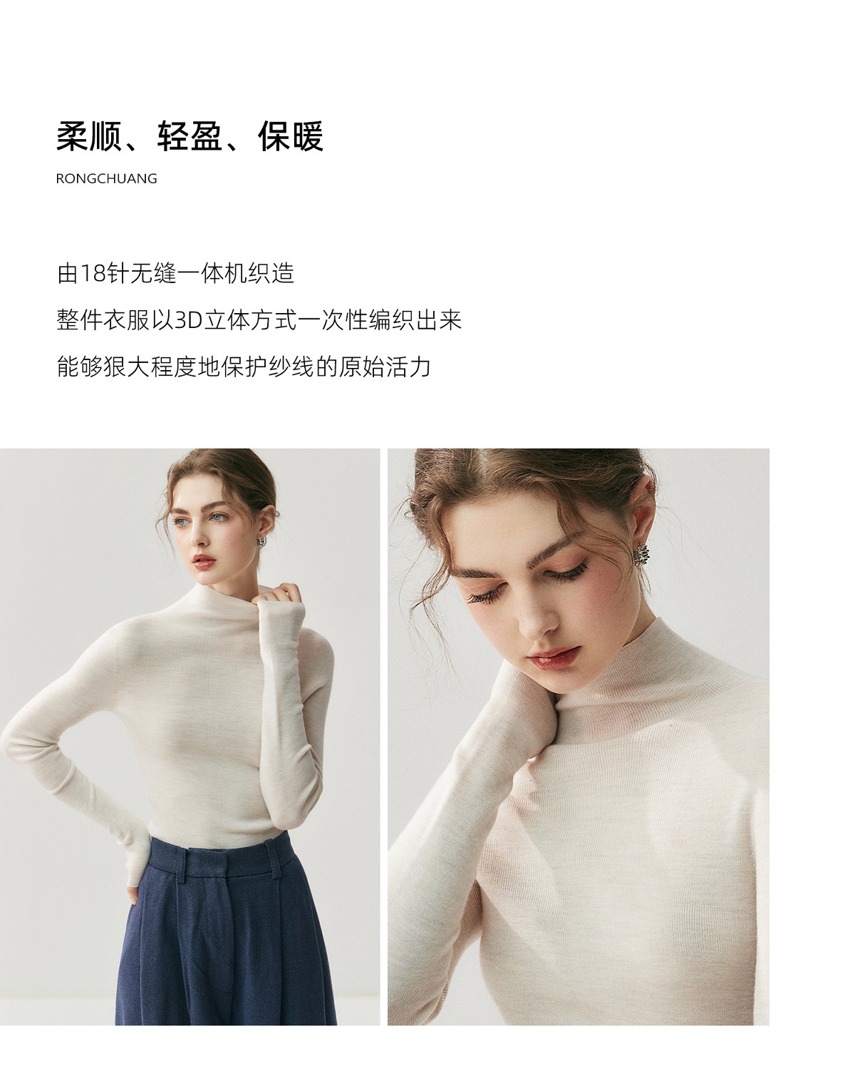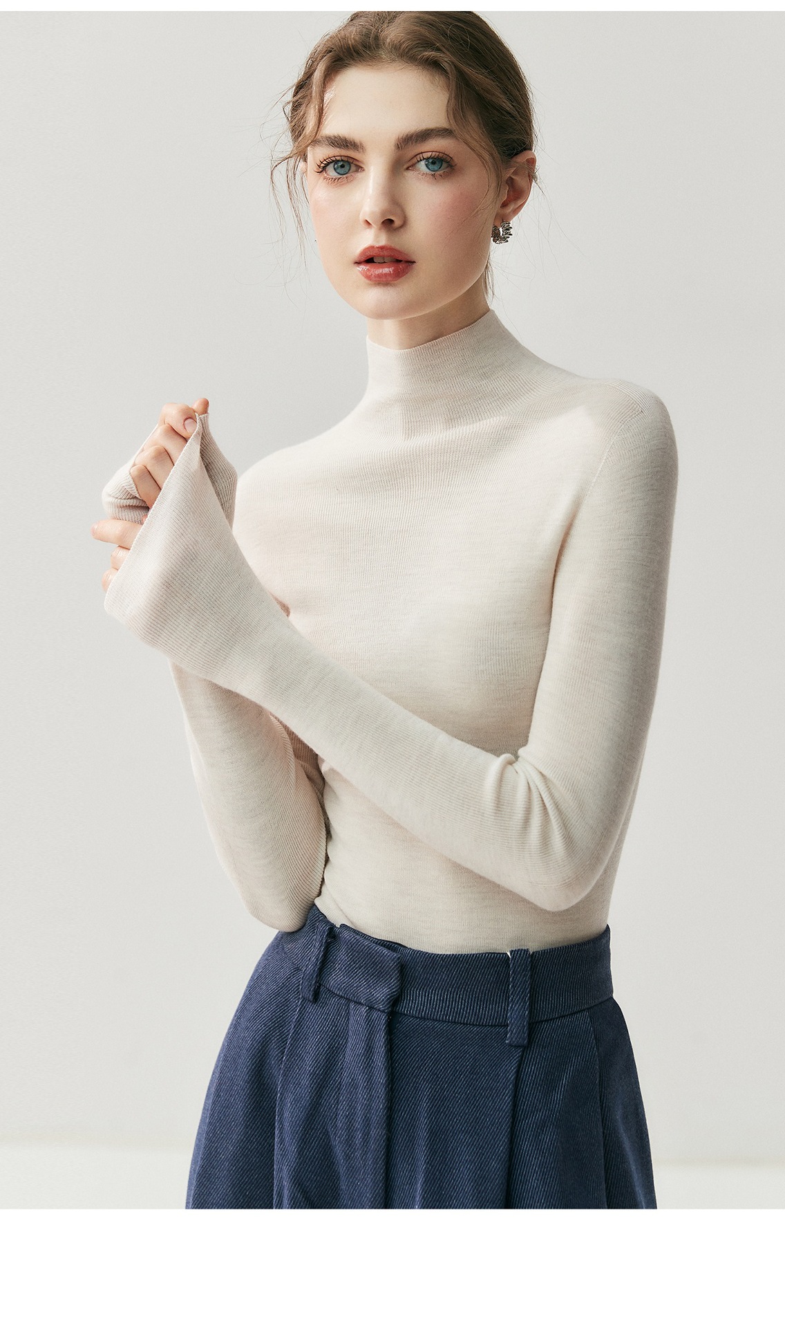 Machine washable Yangtze worsted wool sweater women's thin semi-turtleneck slim-fit sweater autumn and winter high-end knitted bottoming shirt