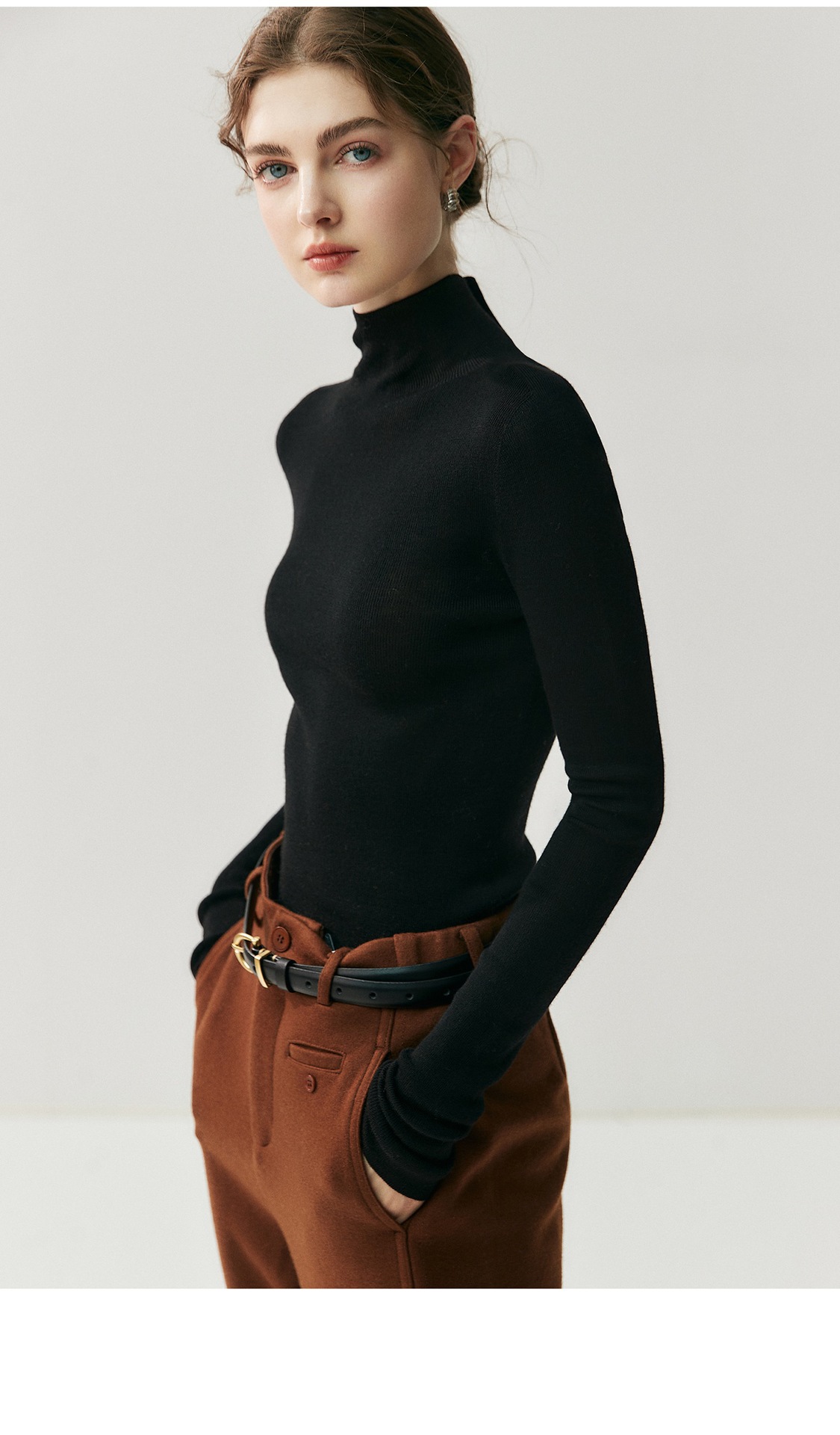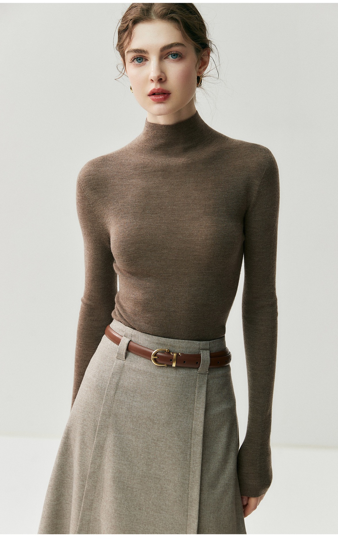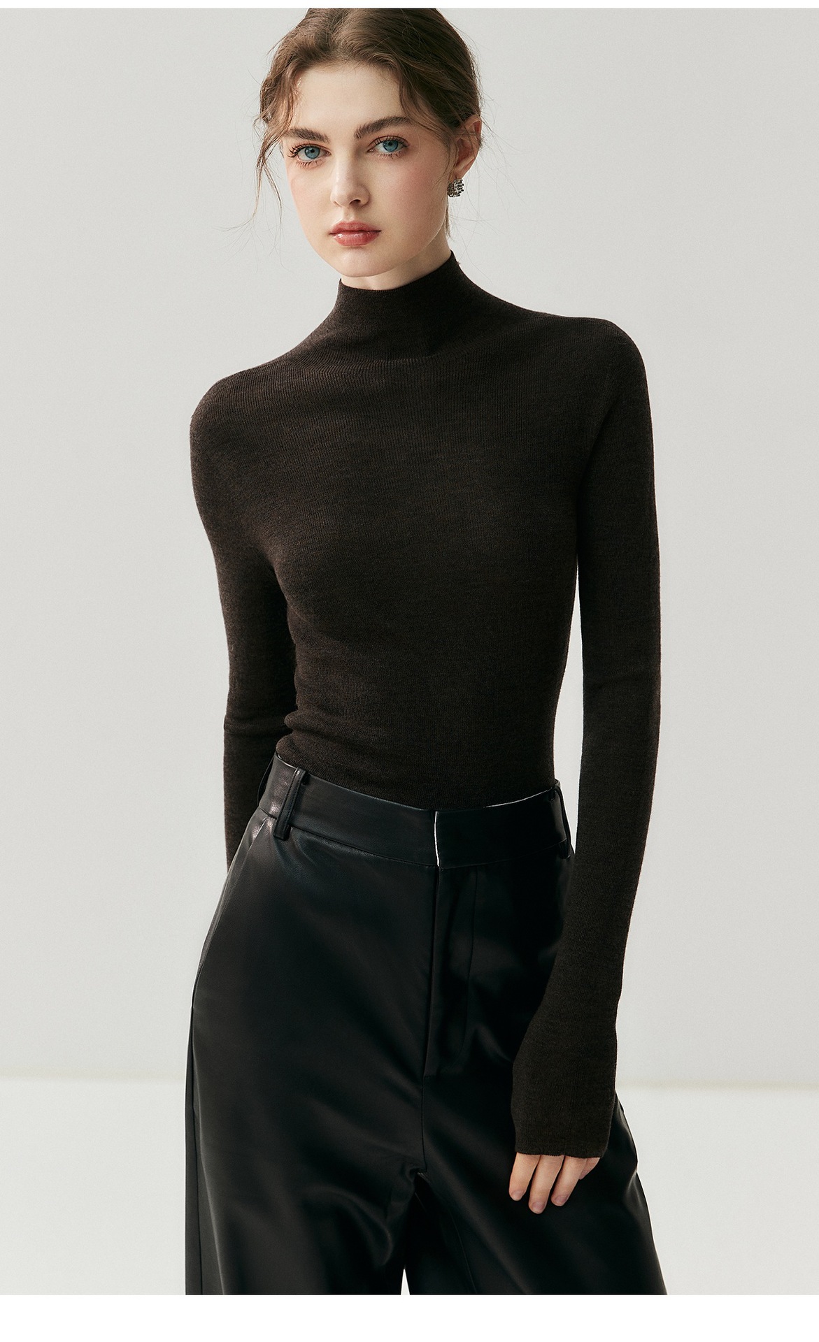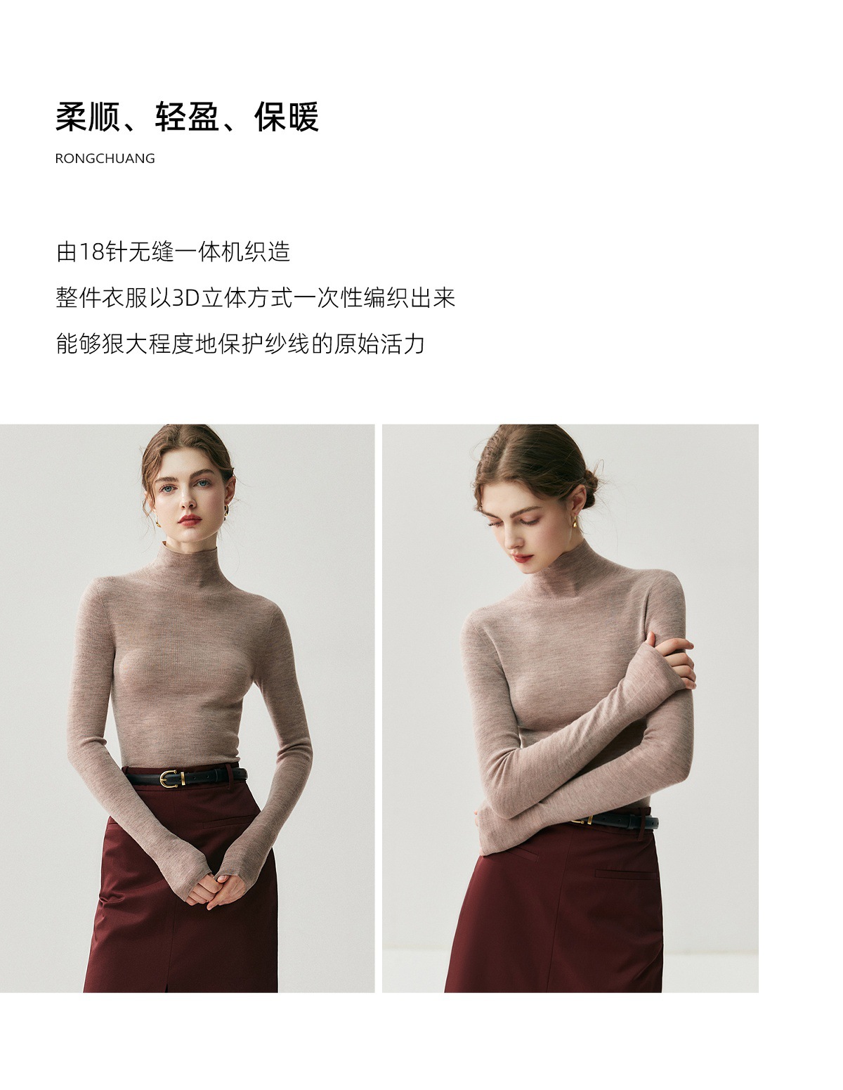 Machine washable Yangtze worsted wool sweater women's thin semi-turtleneck slim-fit sweater autumn and winter high-end knitted bottoming shirt