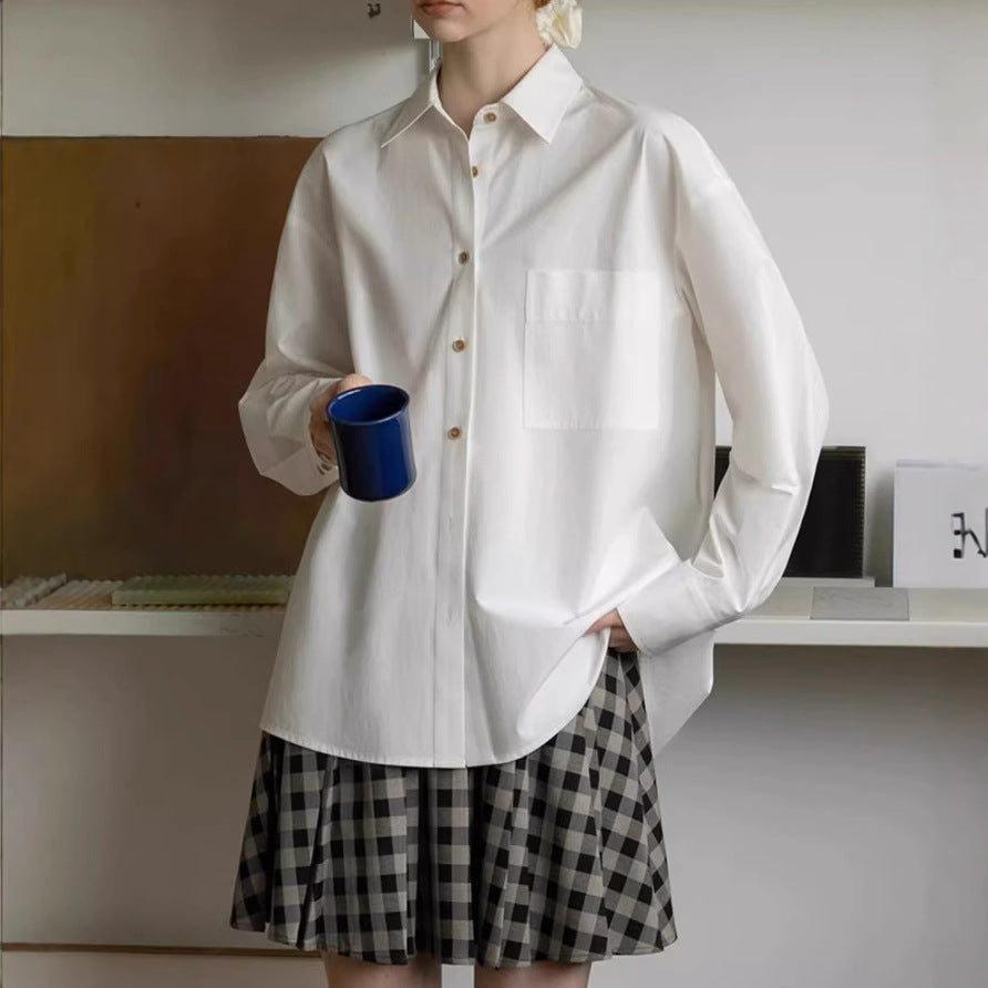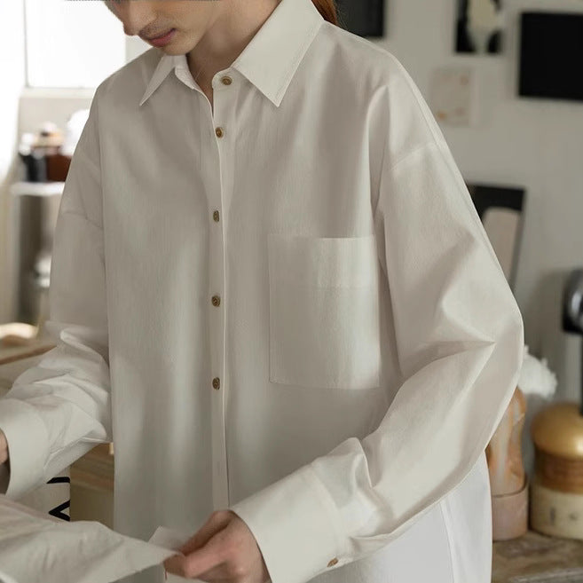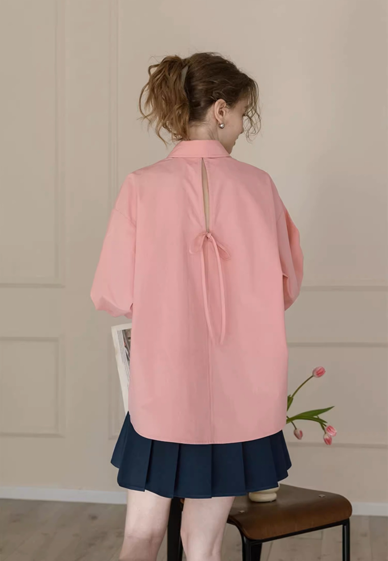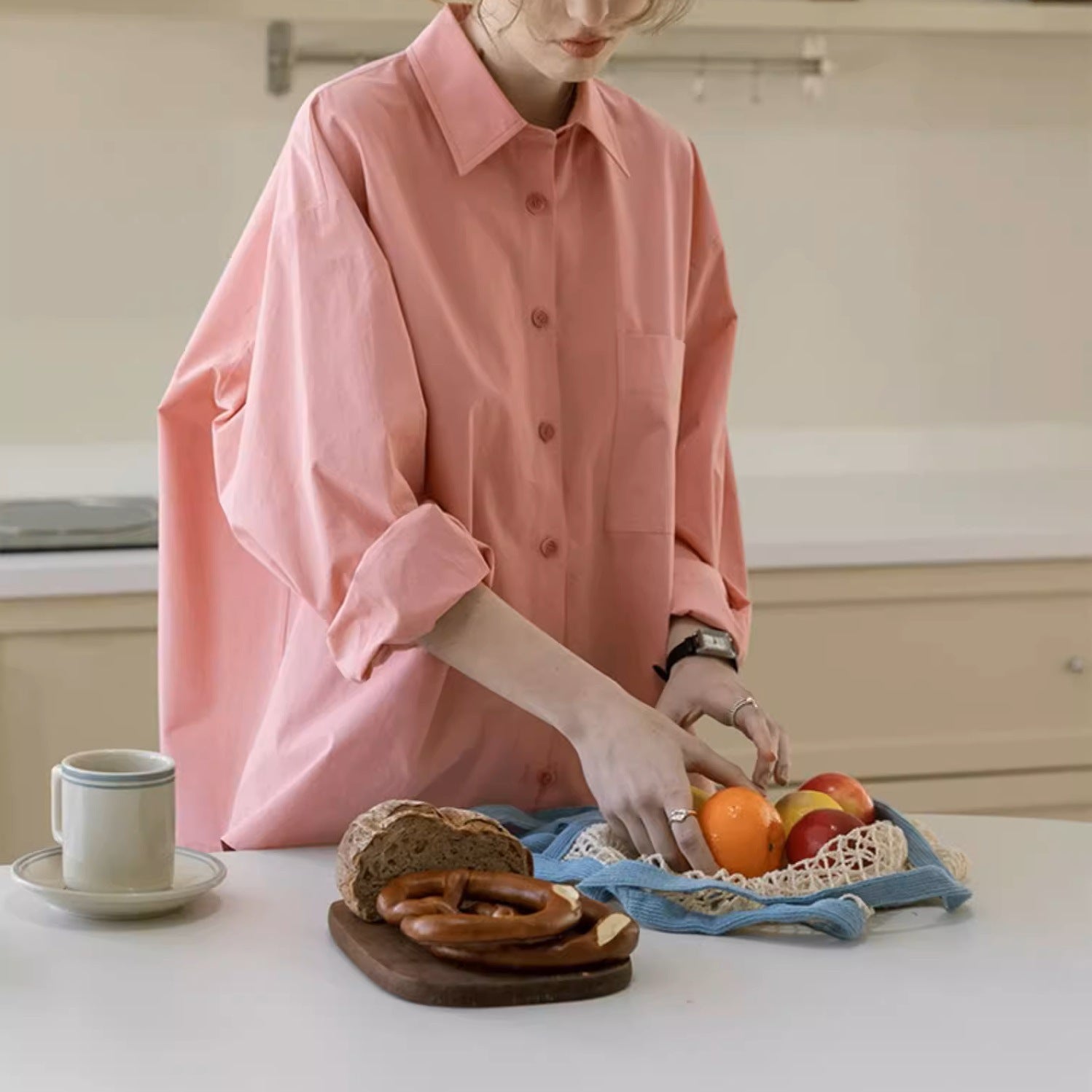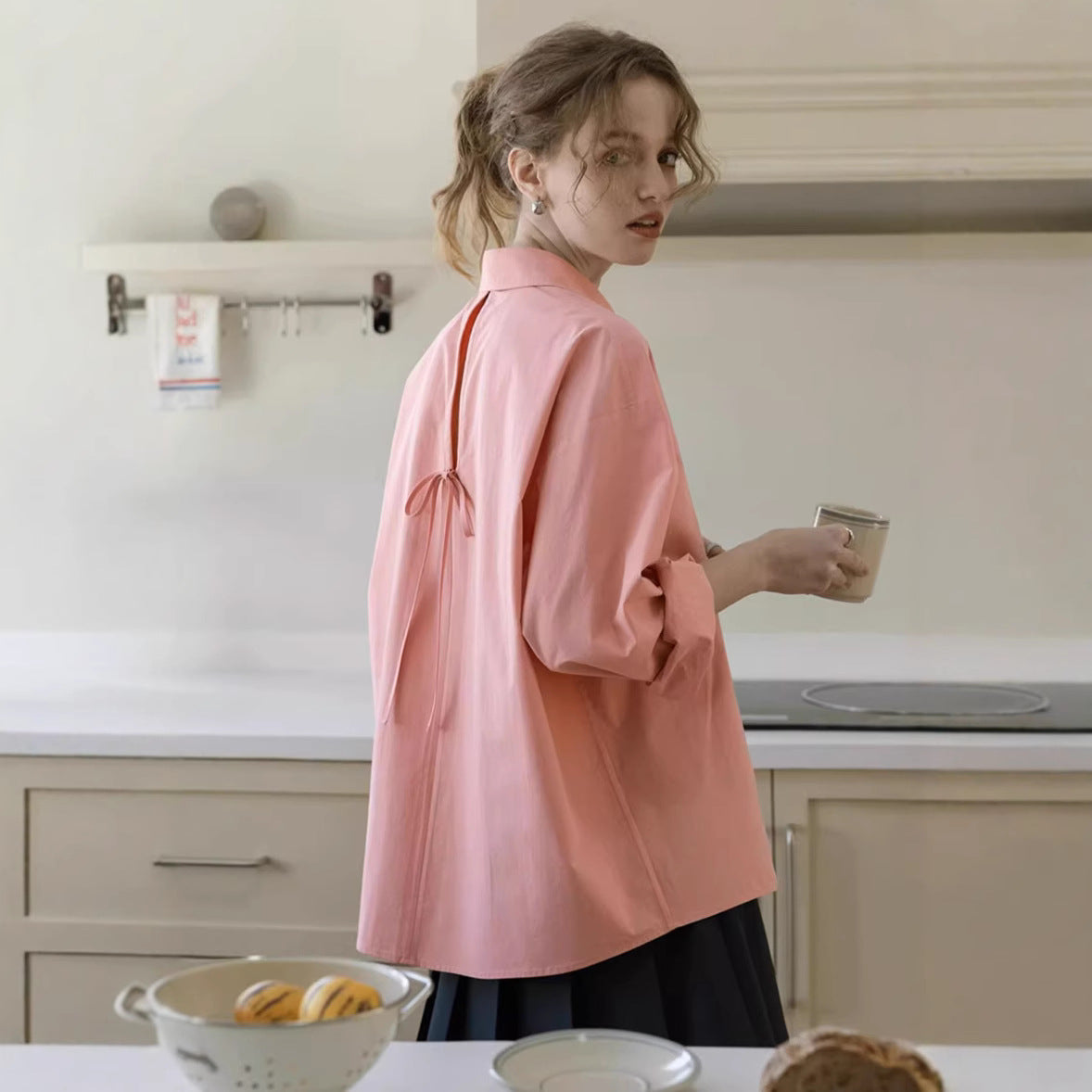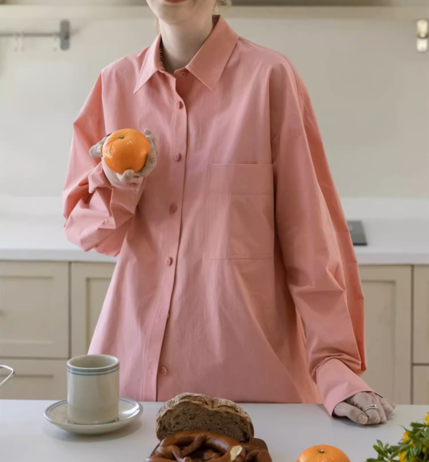 MELLIIY 2025 spring new lazy and comfortable loose cotton long-sleeved pink shirt women's design sense niche