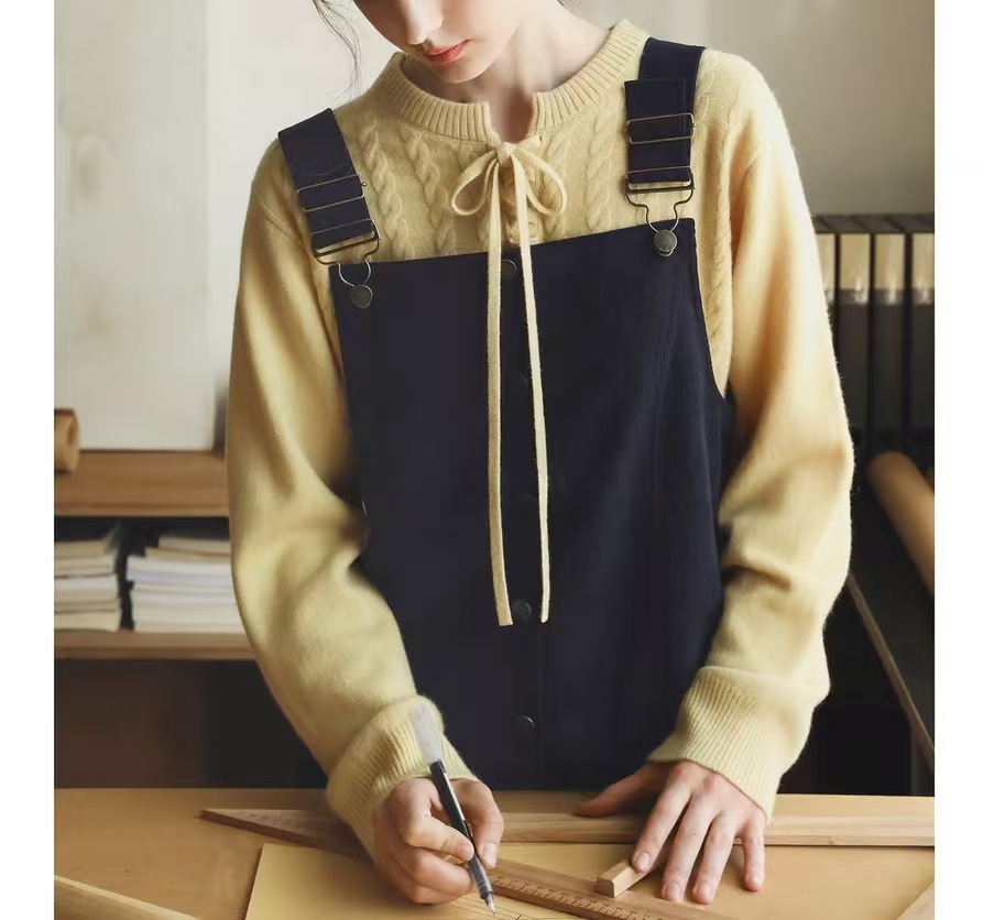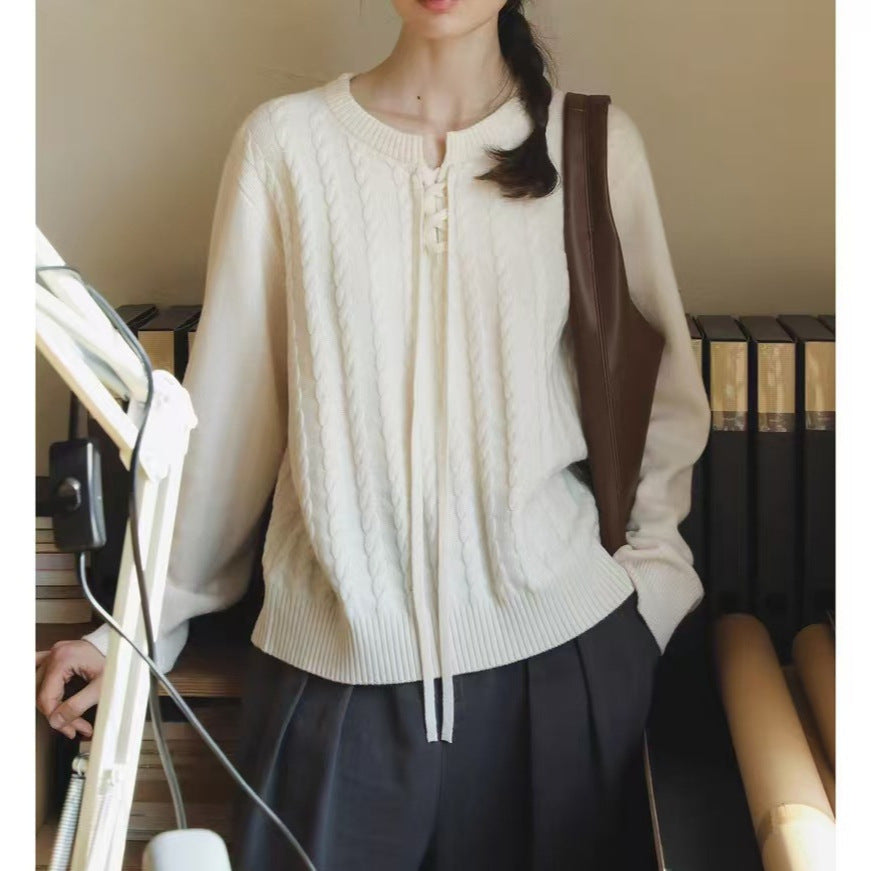 MELLIIY Spring 2025 New Commuter V-Neck Lace-up Merino Full Wool Cable Knit Sweater Woman