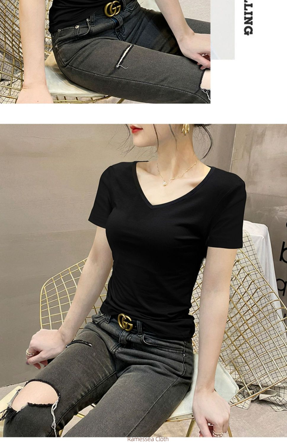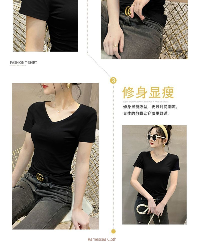 Modal short-sleeved t-shirt women's summer slim-fitting and thin V-neck top thin ice silk chicken heart collar half-sleeved foreign style t-shirt