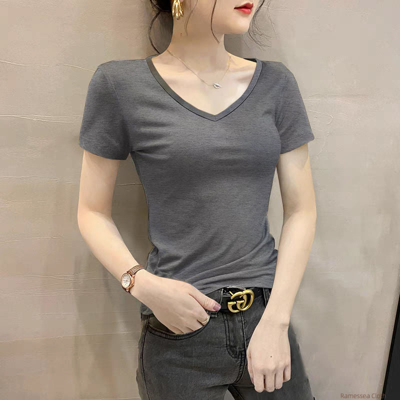 Modal short-sleeved V-neck solid color T-shirt women's summer 2025 new ice silk drape slim and thin bottoming top