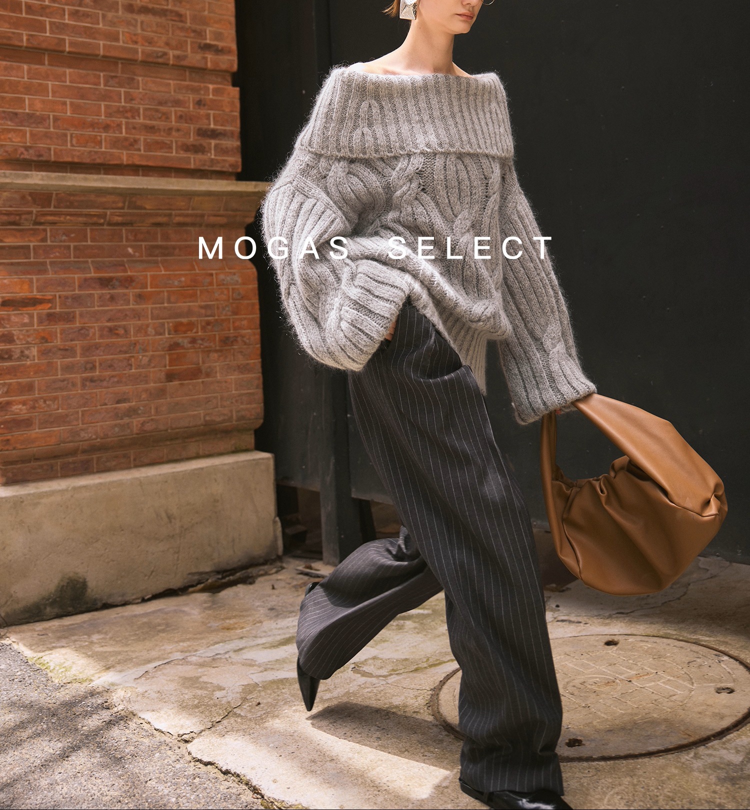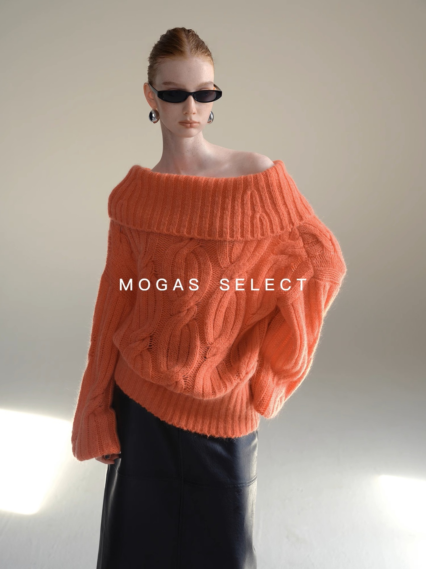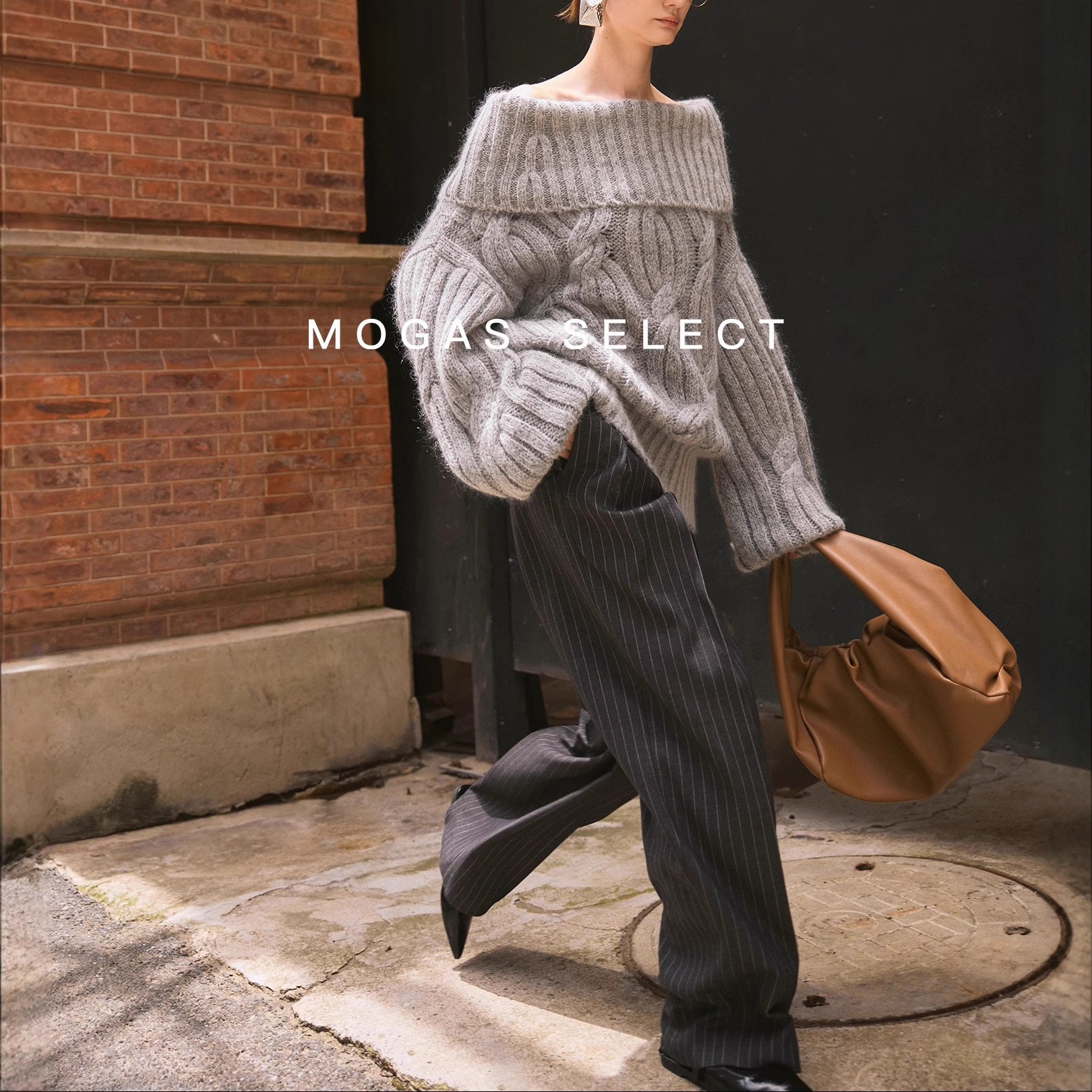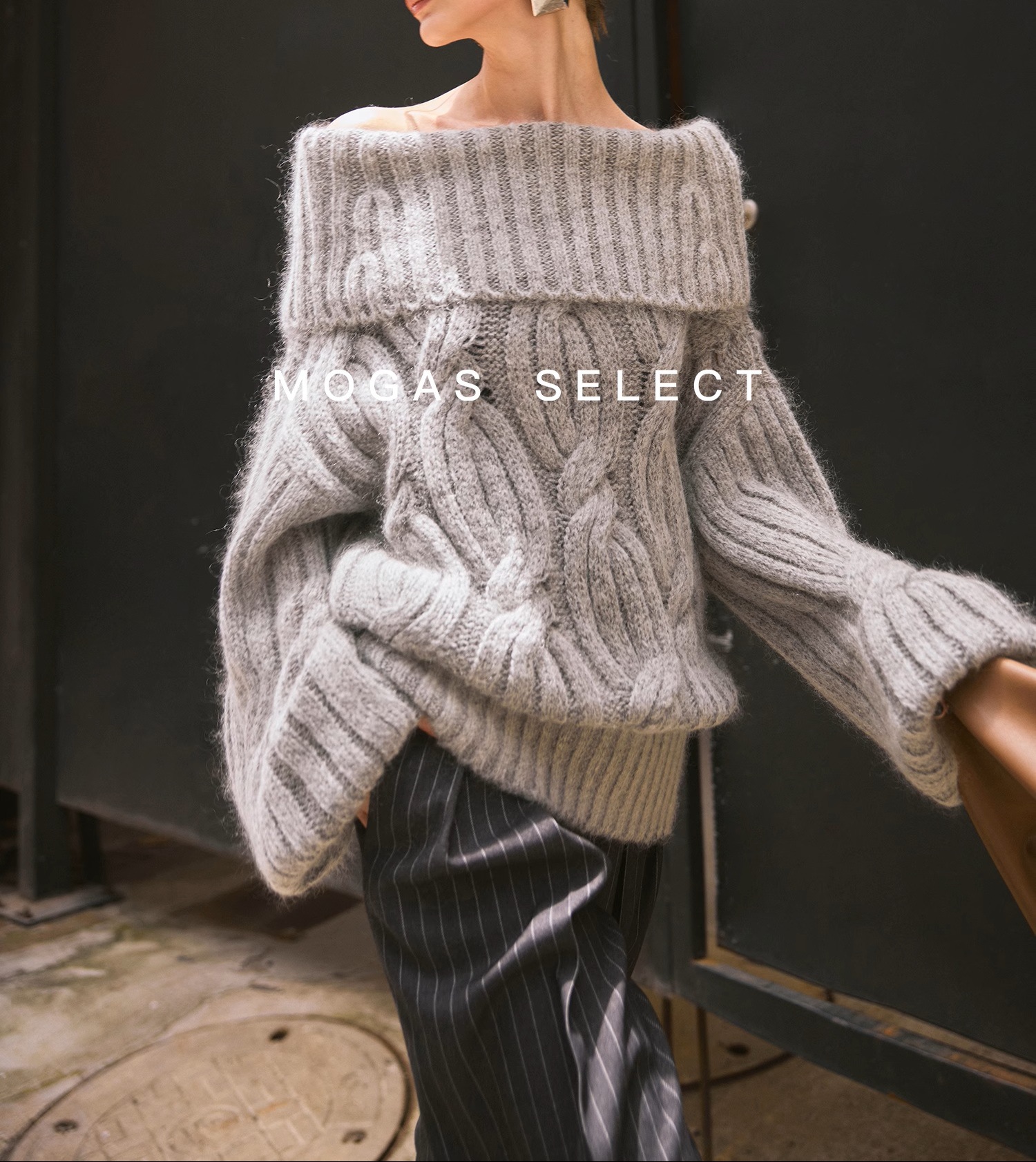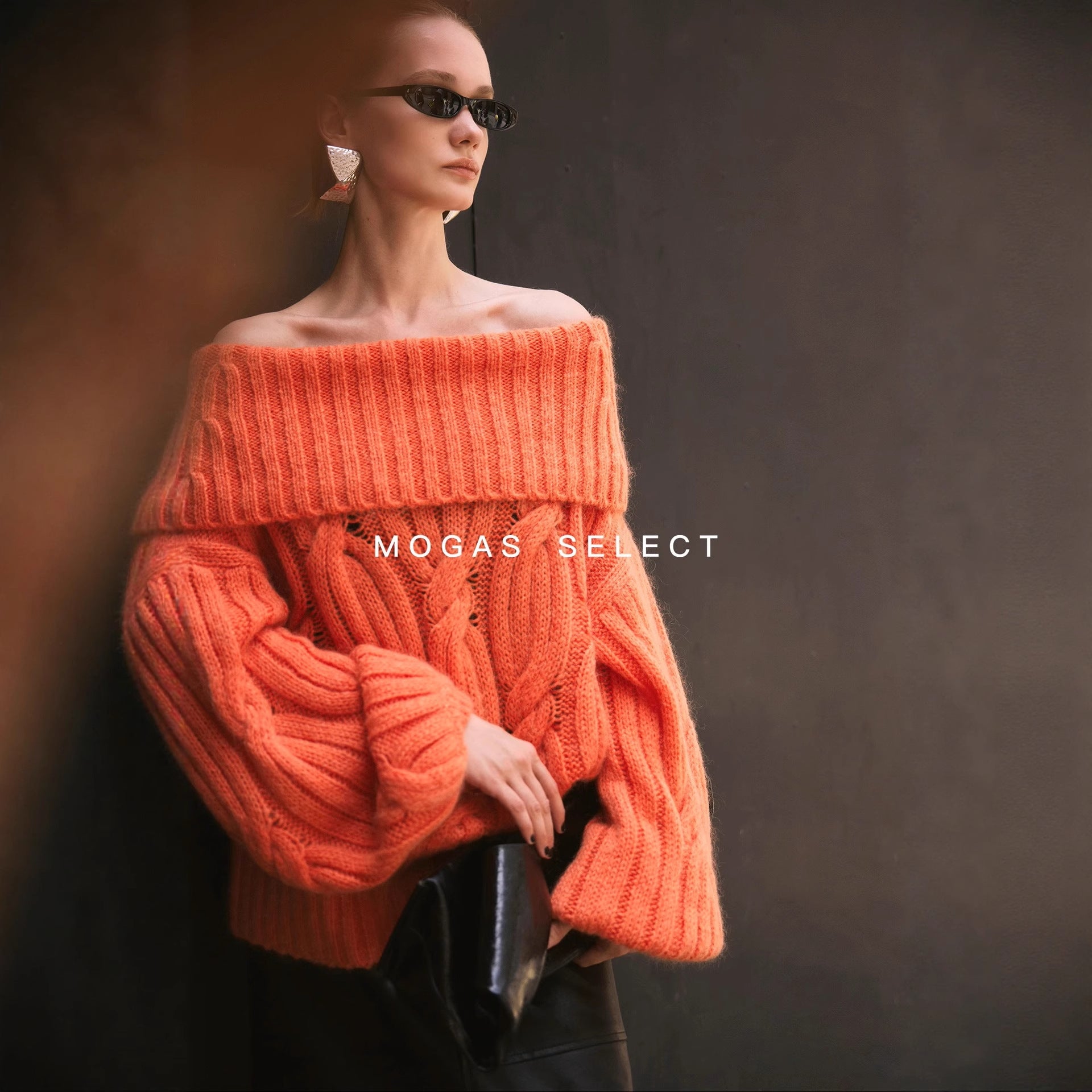 Mogas Heavy Cub Sea Wool Blended Lazy Lantern Sleeves One-Word Neck Twisted Pullover Sweater Women's Autumn and Winter
