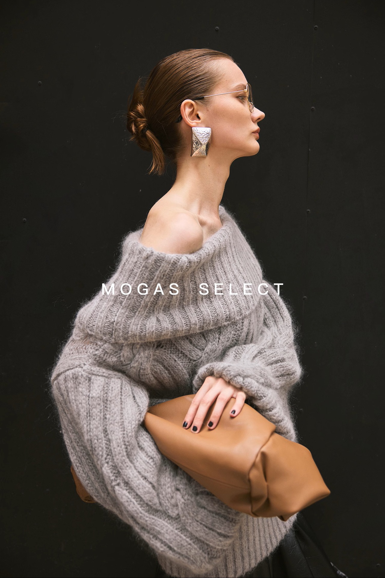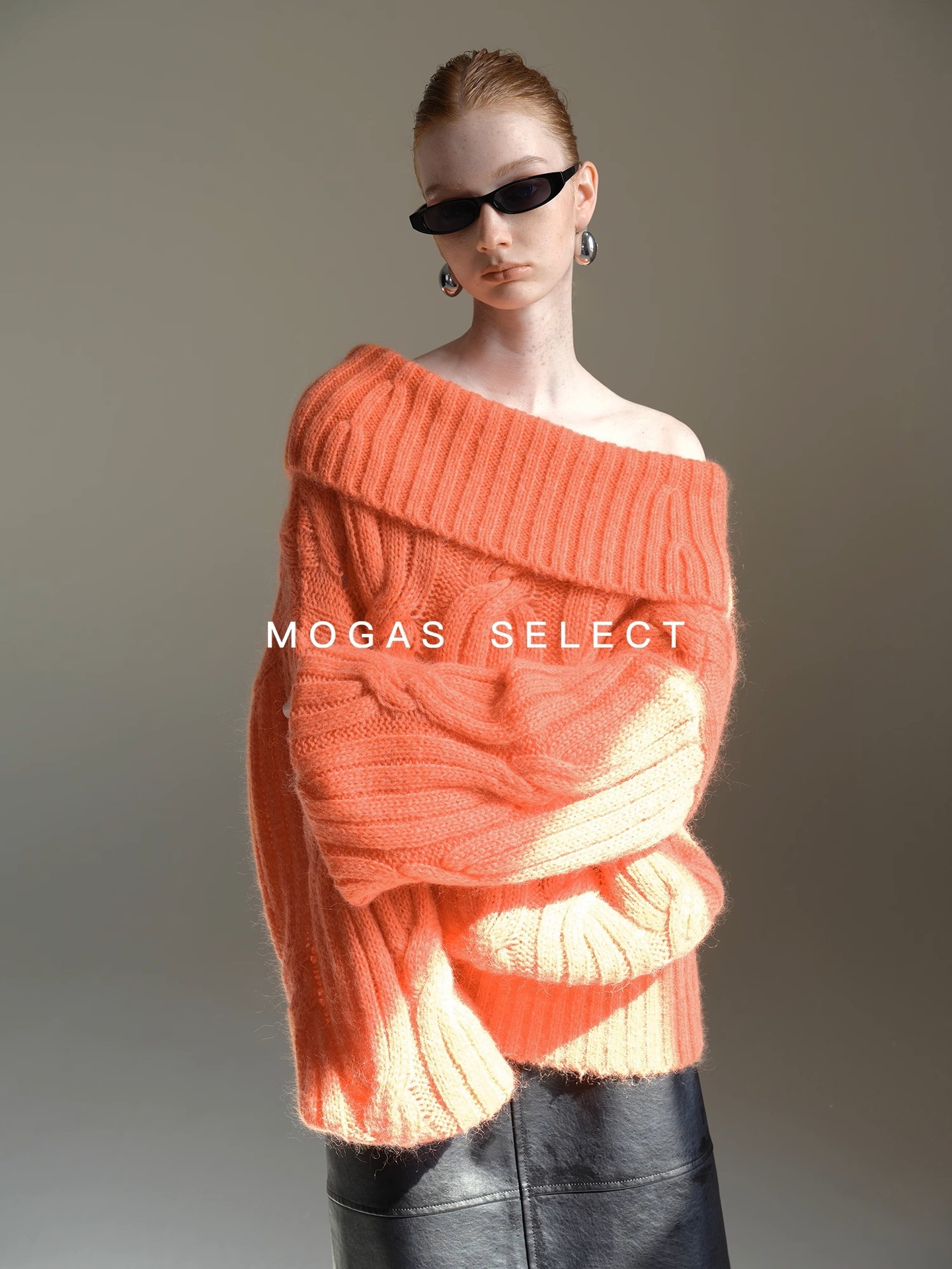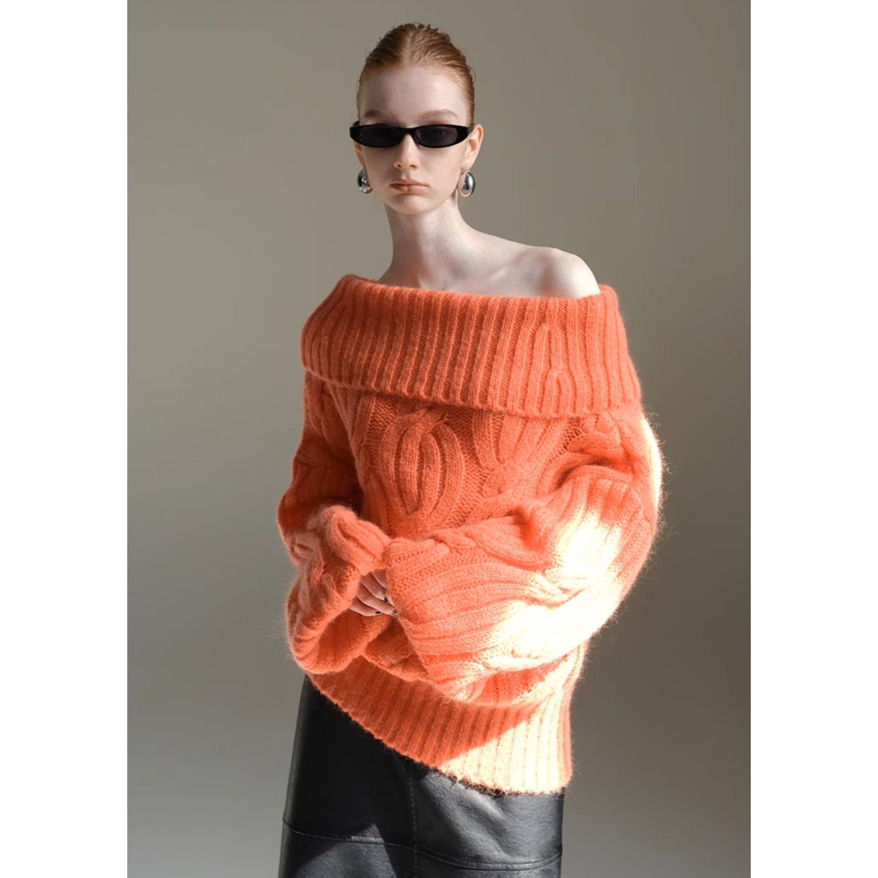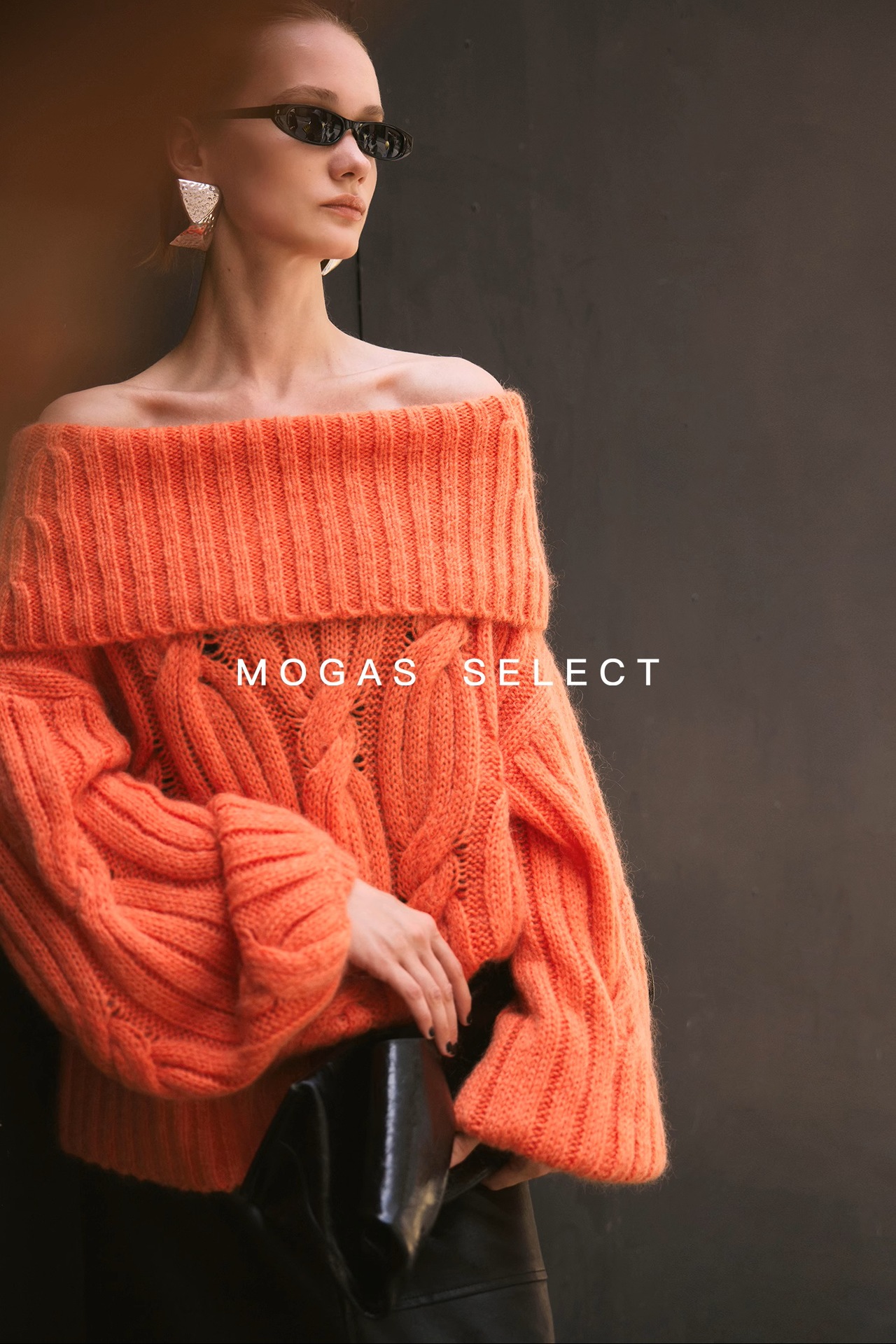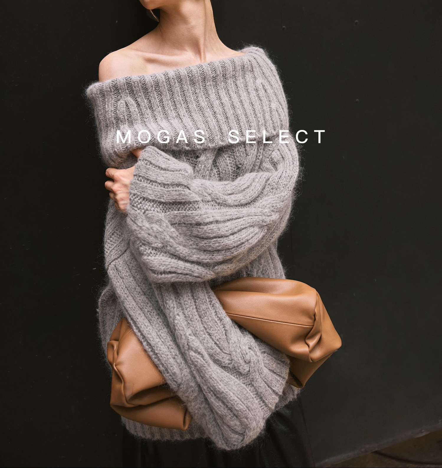 Mogas Heavy Cub Sea Wool Blended Lazy Lantern Sleeves One-Word Neck Twisted Pullover Sweater Women's Autumn and Winter