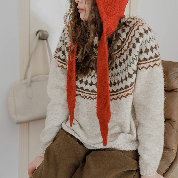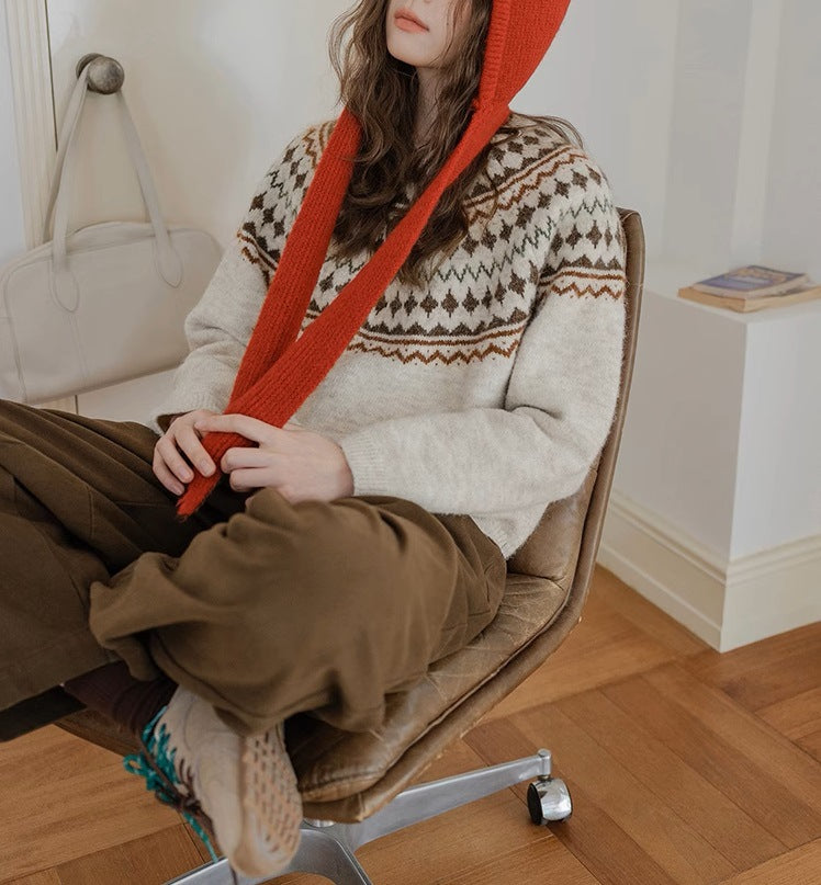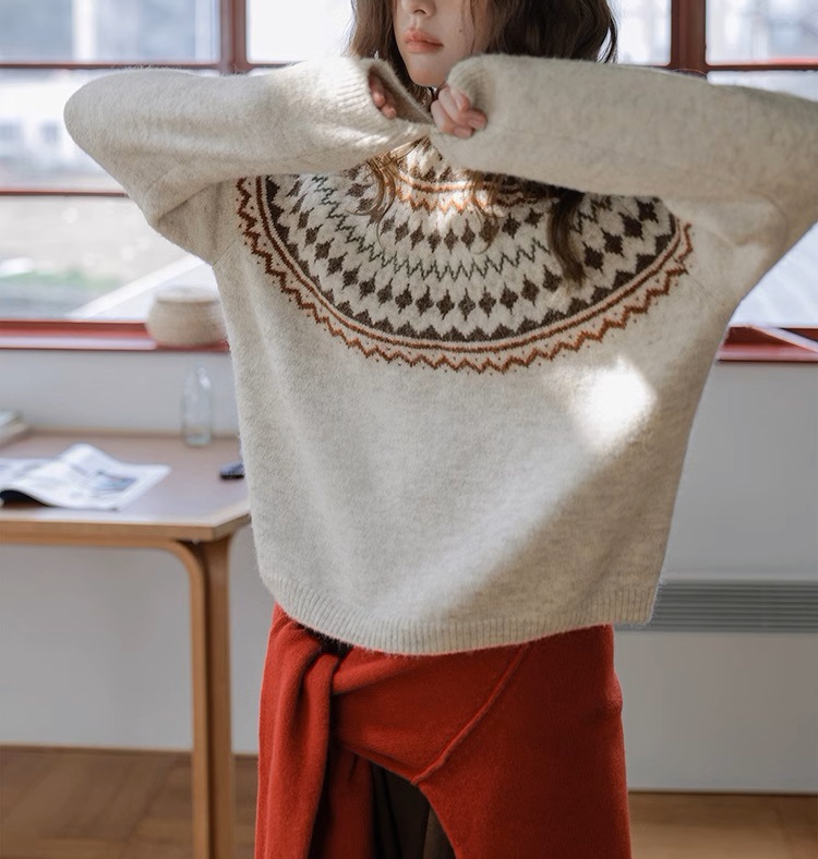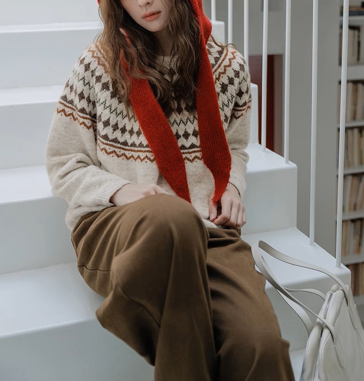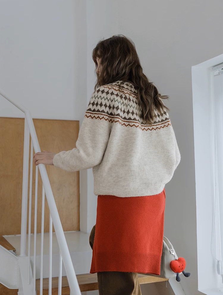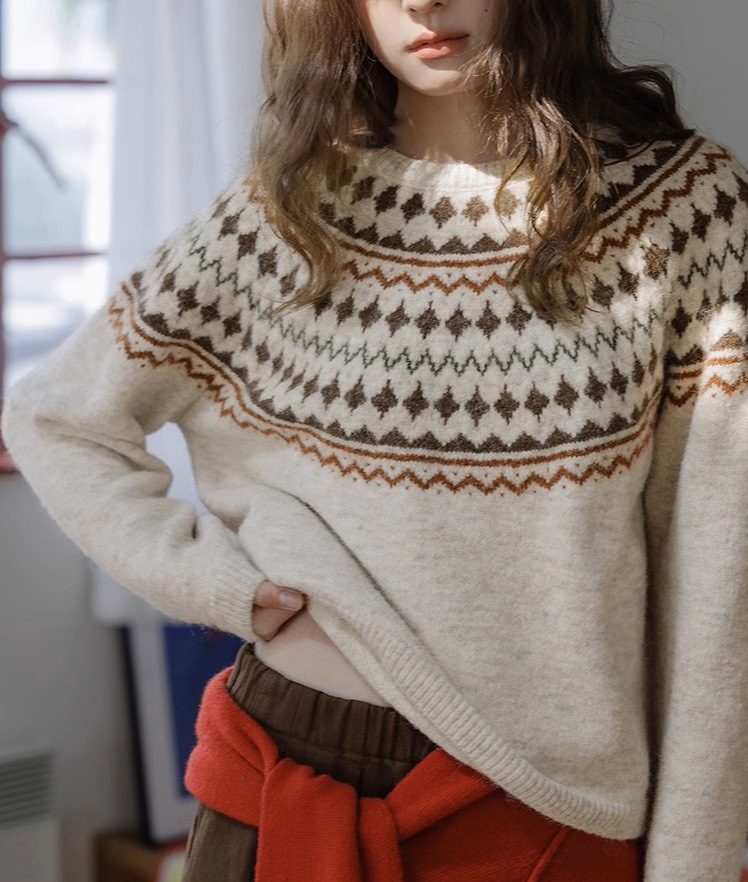 Momolife Christmas vibe Fair Island soft waxy apricot knitted sweater casual 2024 autumn/winter women's sweater