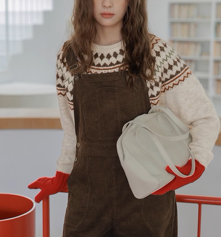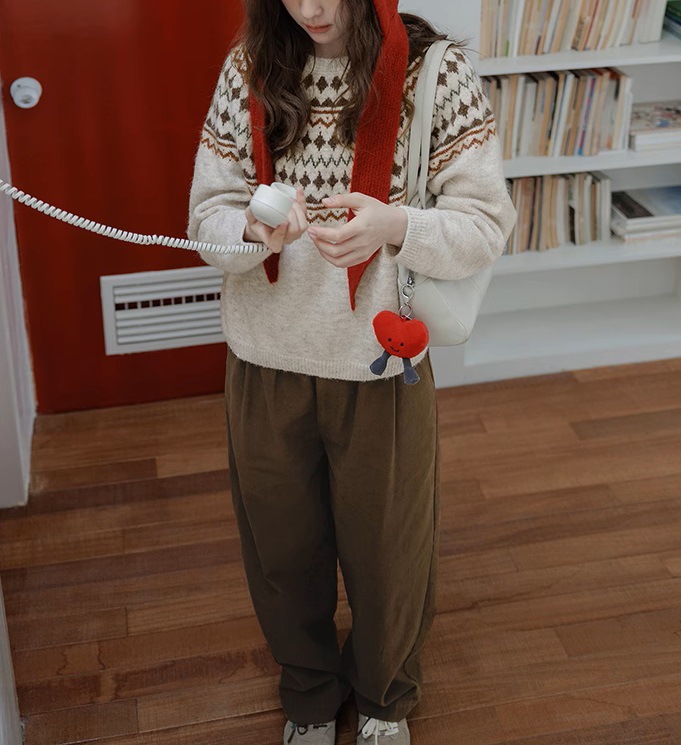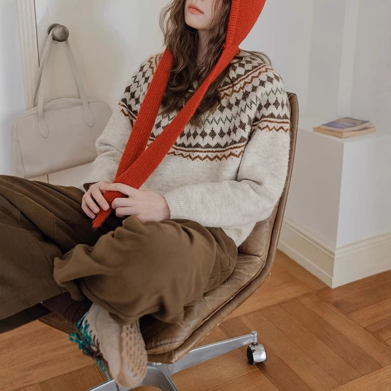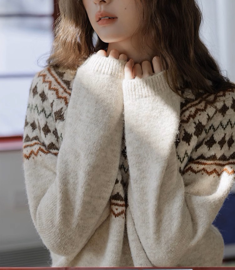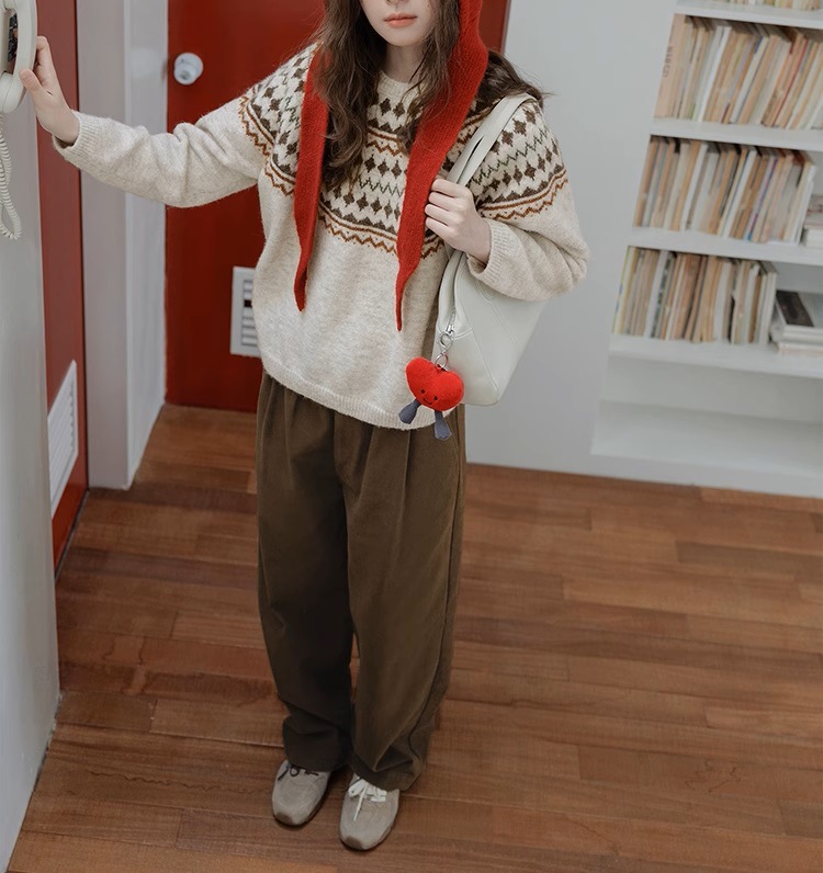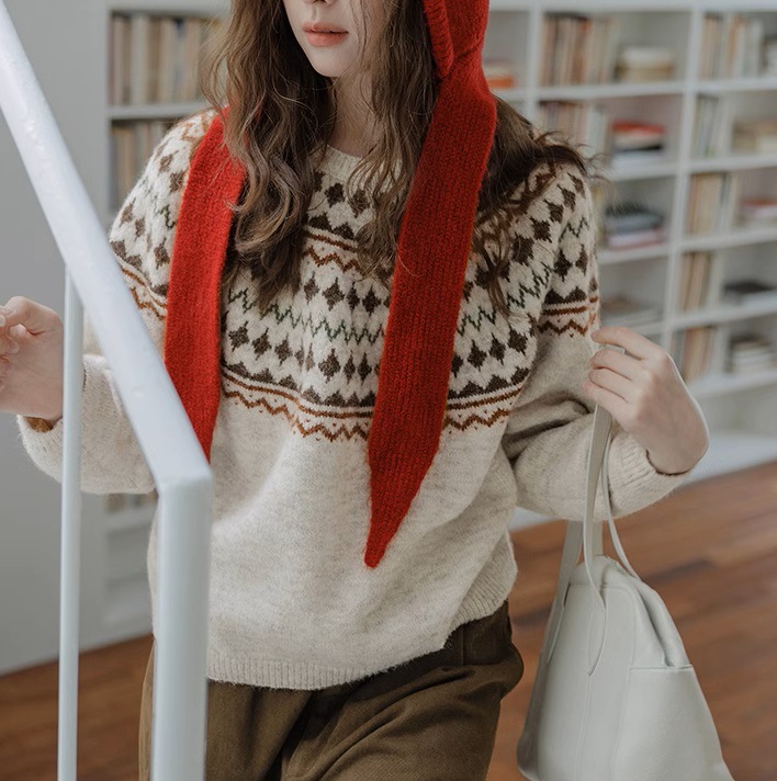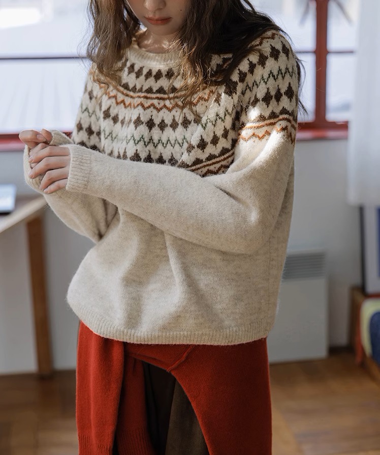 Momolife Christmas vibe Fair Island soft waxy apricot knitted sweater casual 2024 autumn/winter women's sweater