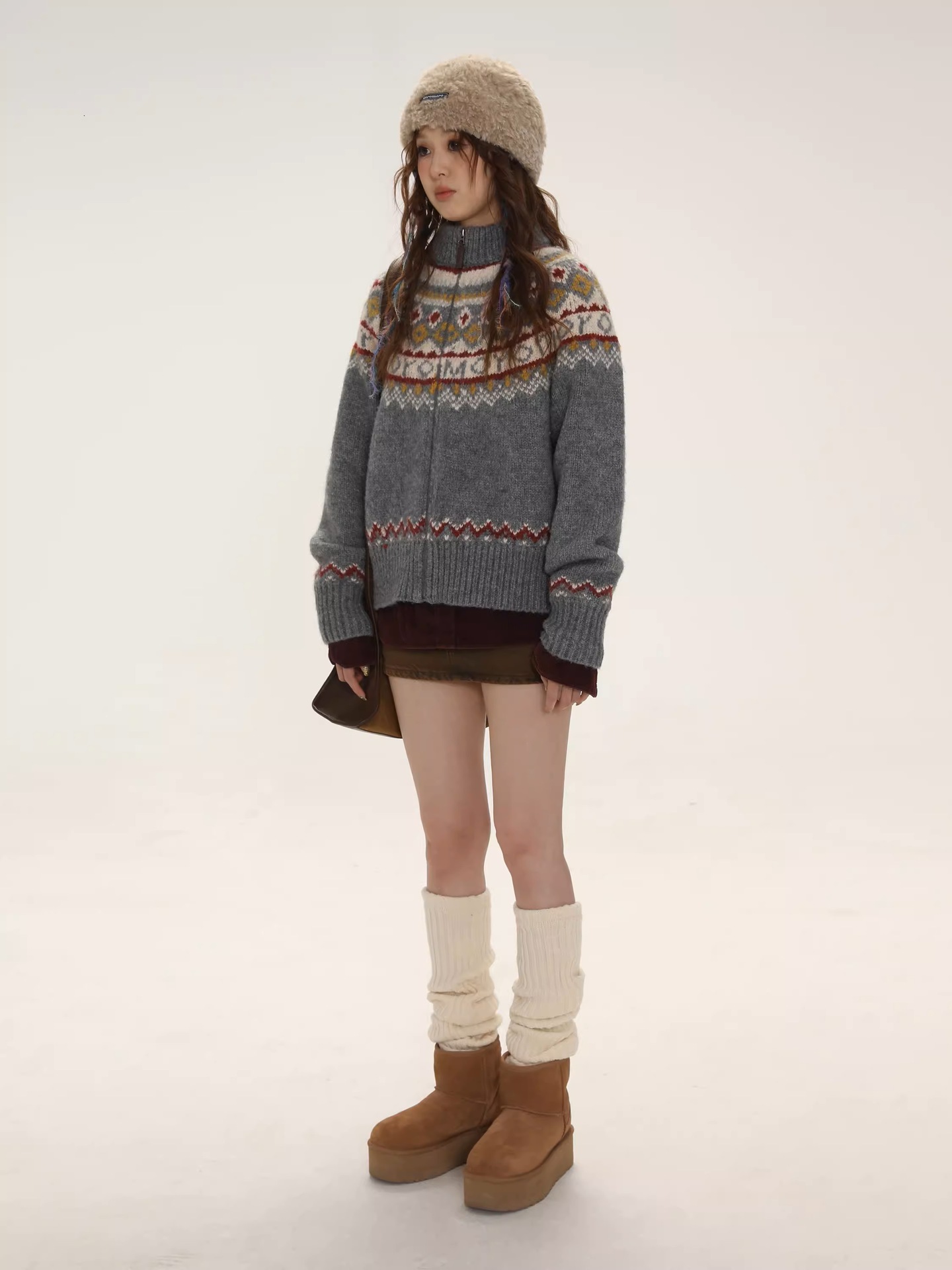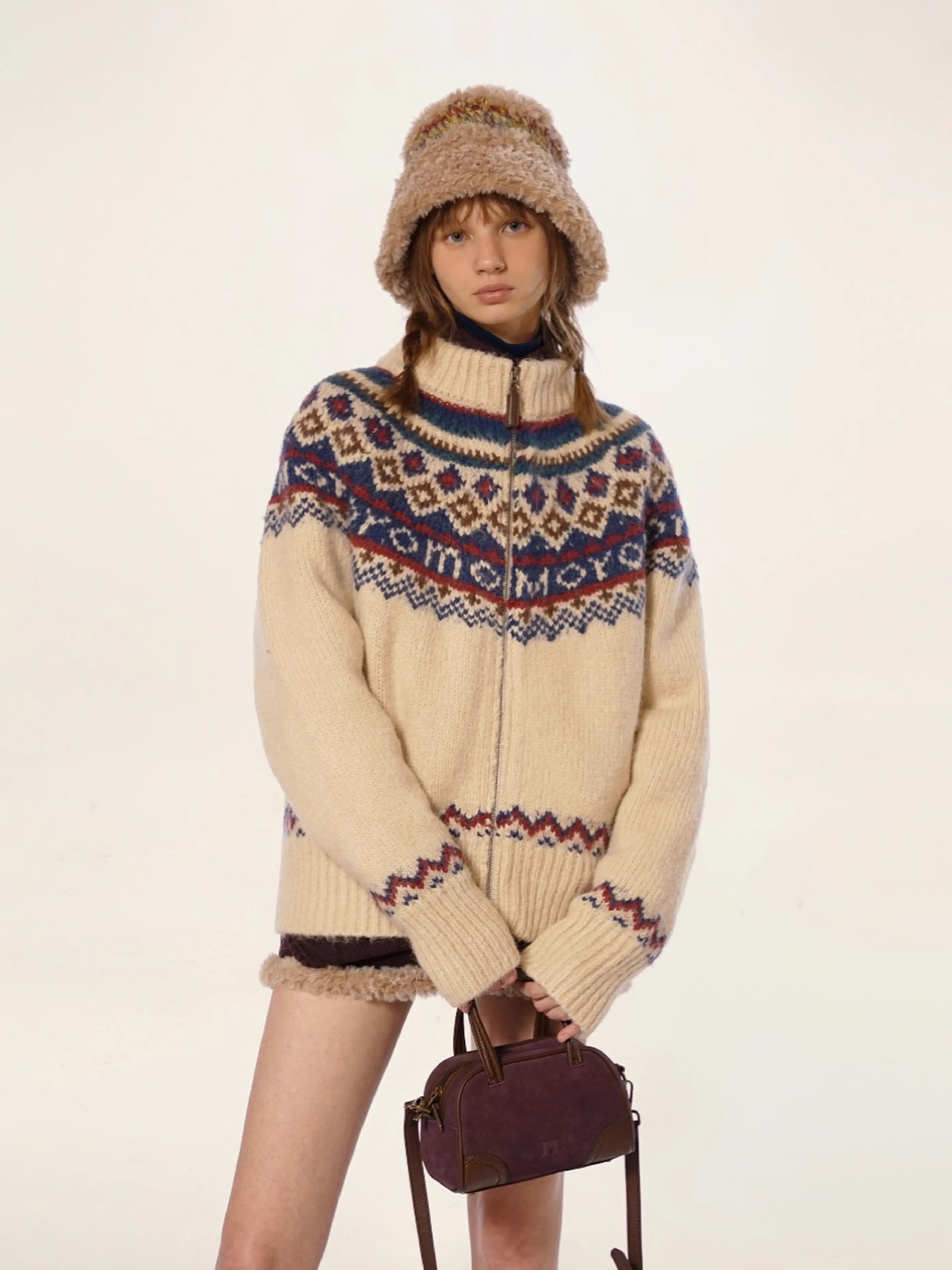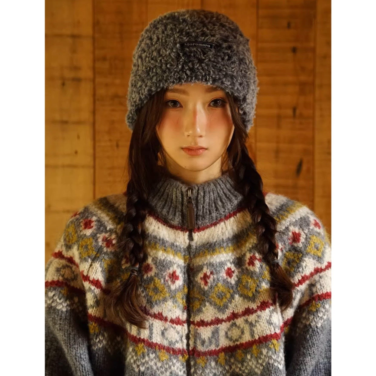 Moromoro Fair Island sweater women's autumn new vintage college style lazy style turtleneck knitted cardigan jacket