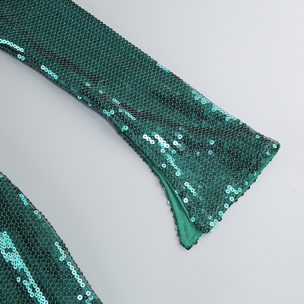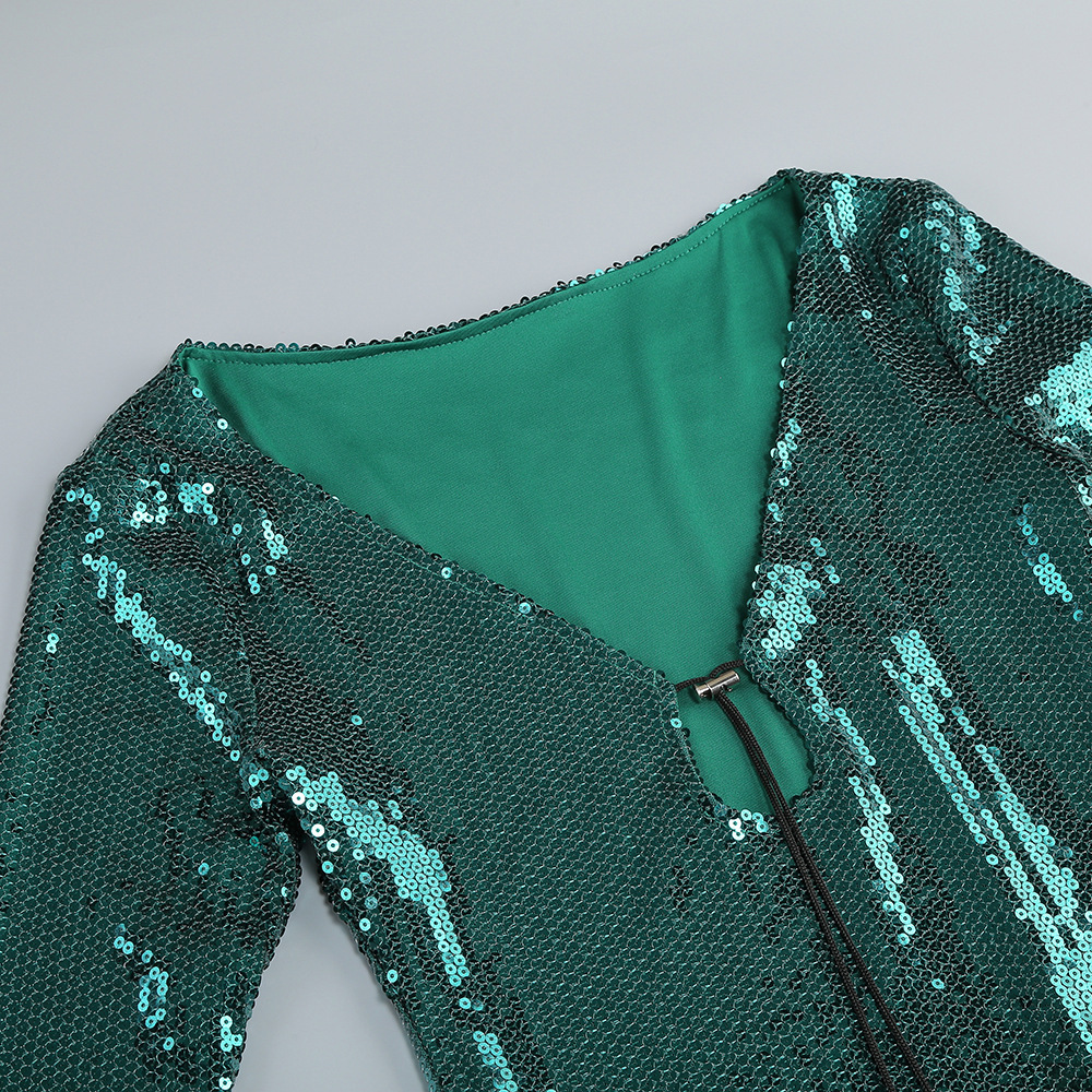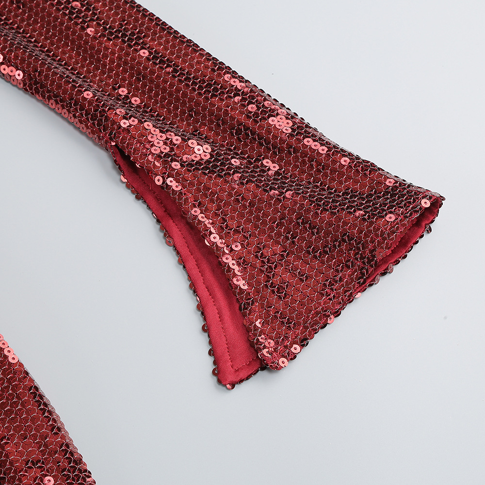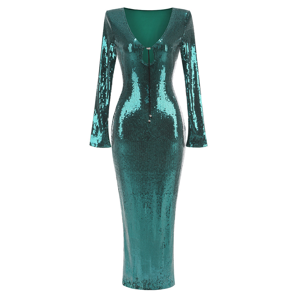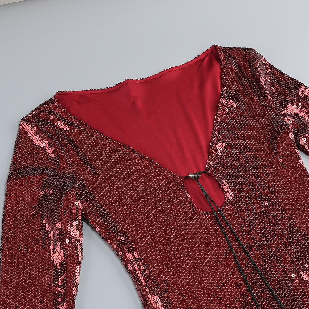 New Amazon Europe and the United States sexy sequin flared sleeve skirt women's U-neck women's clothing hem split dress long