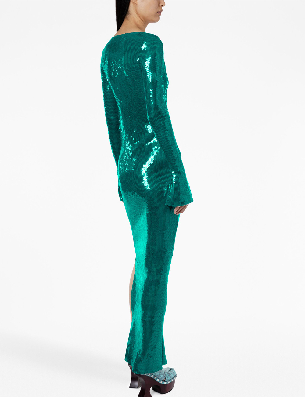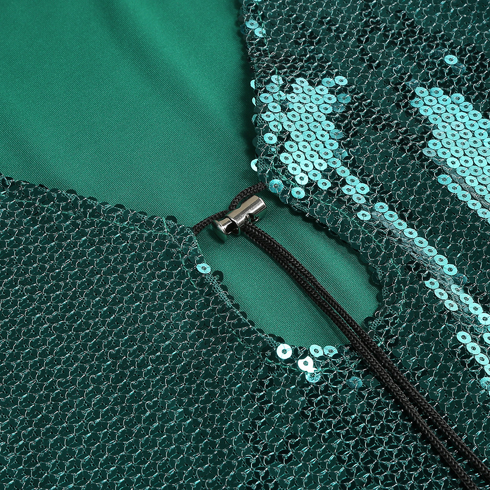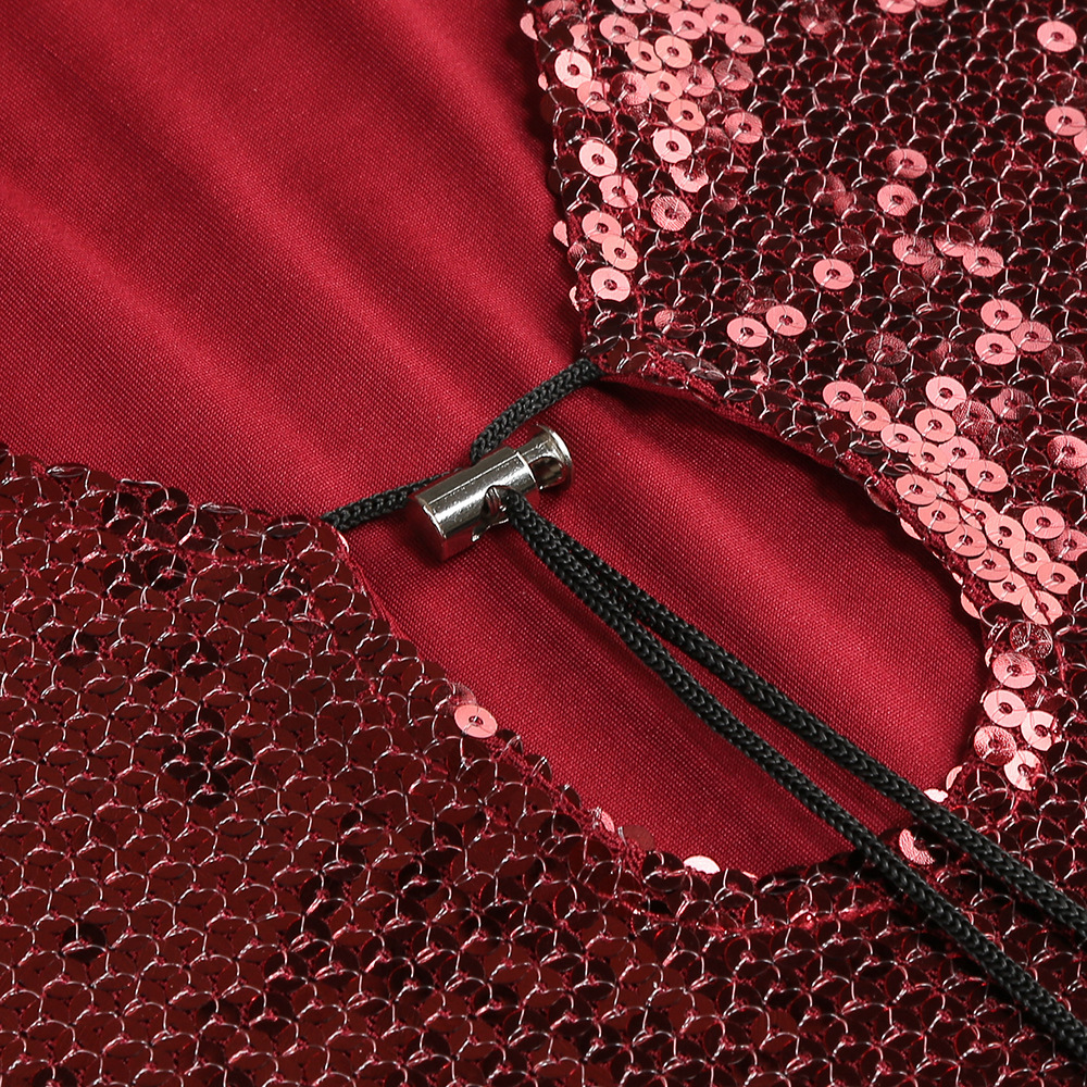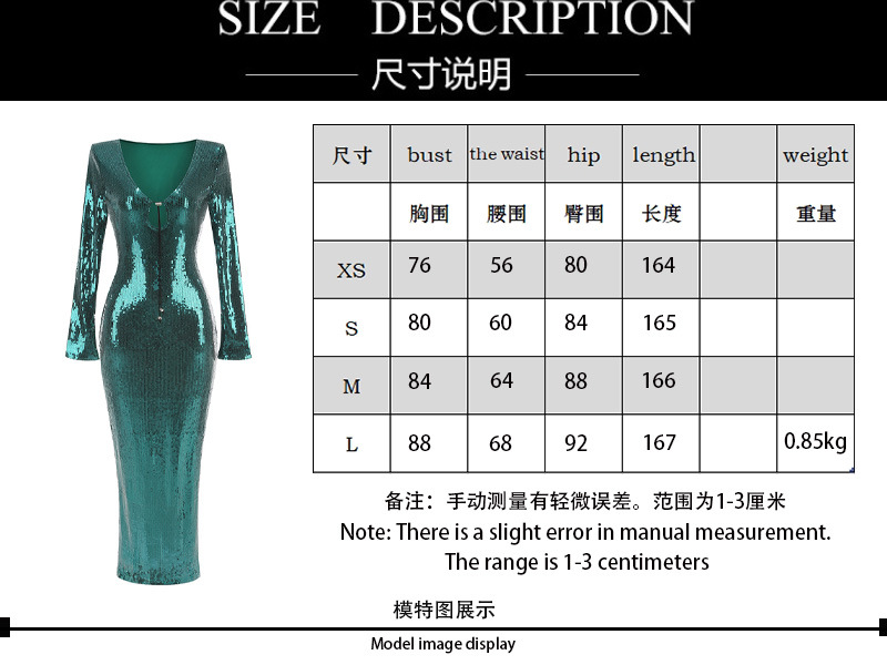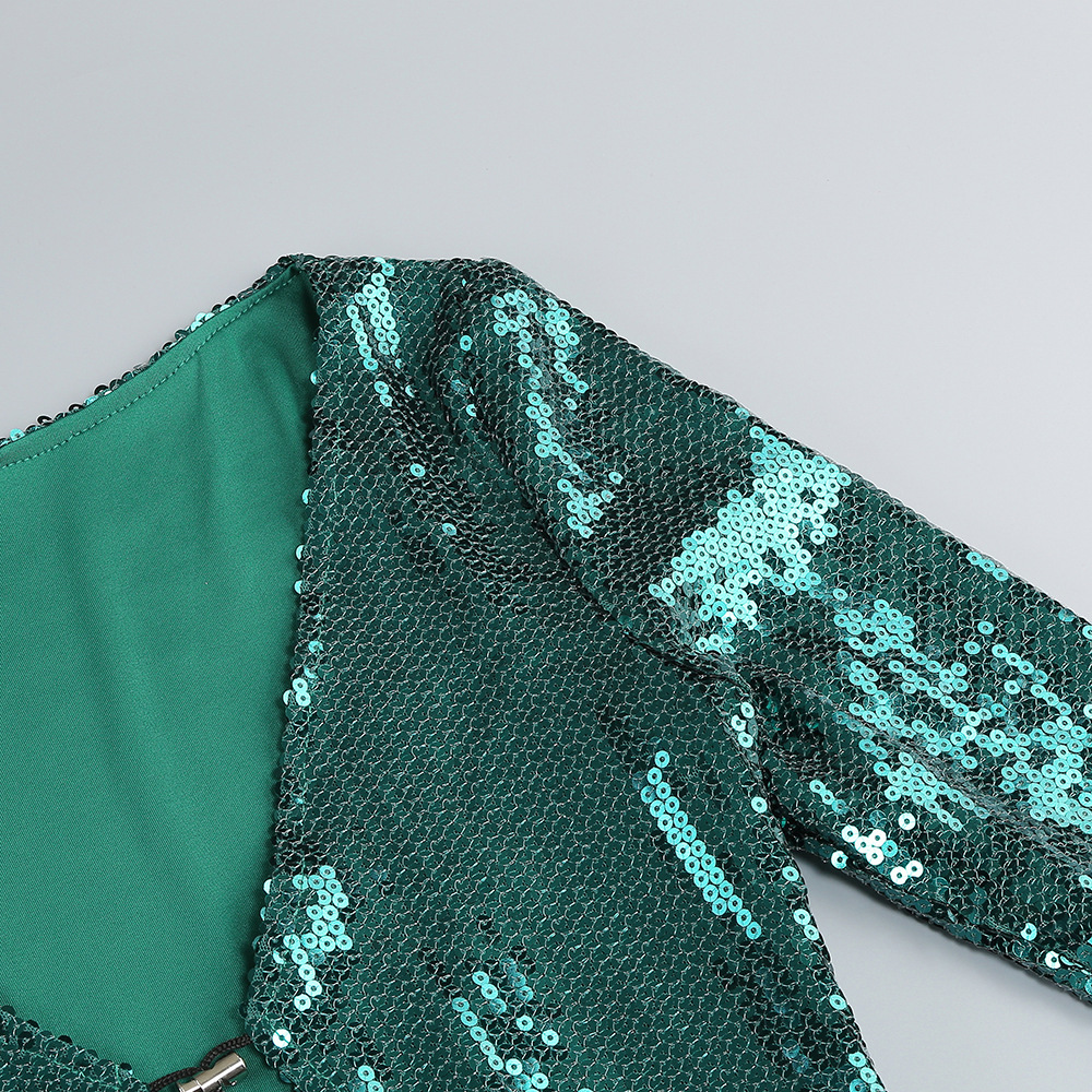 New Amazon Europe and the United States sexy sequin flared sleeve skirt women's U-neck women's clothing hem split dress long