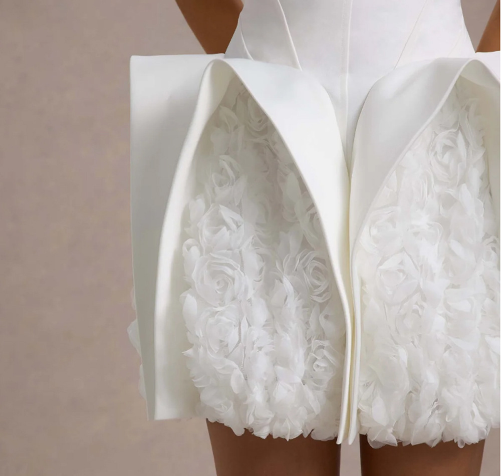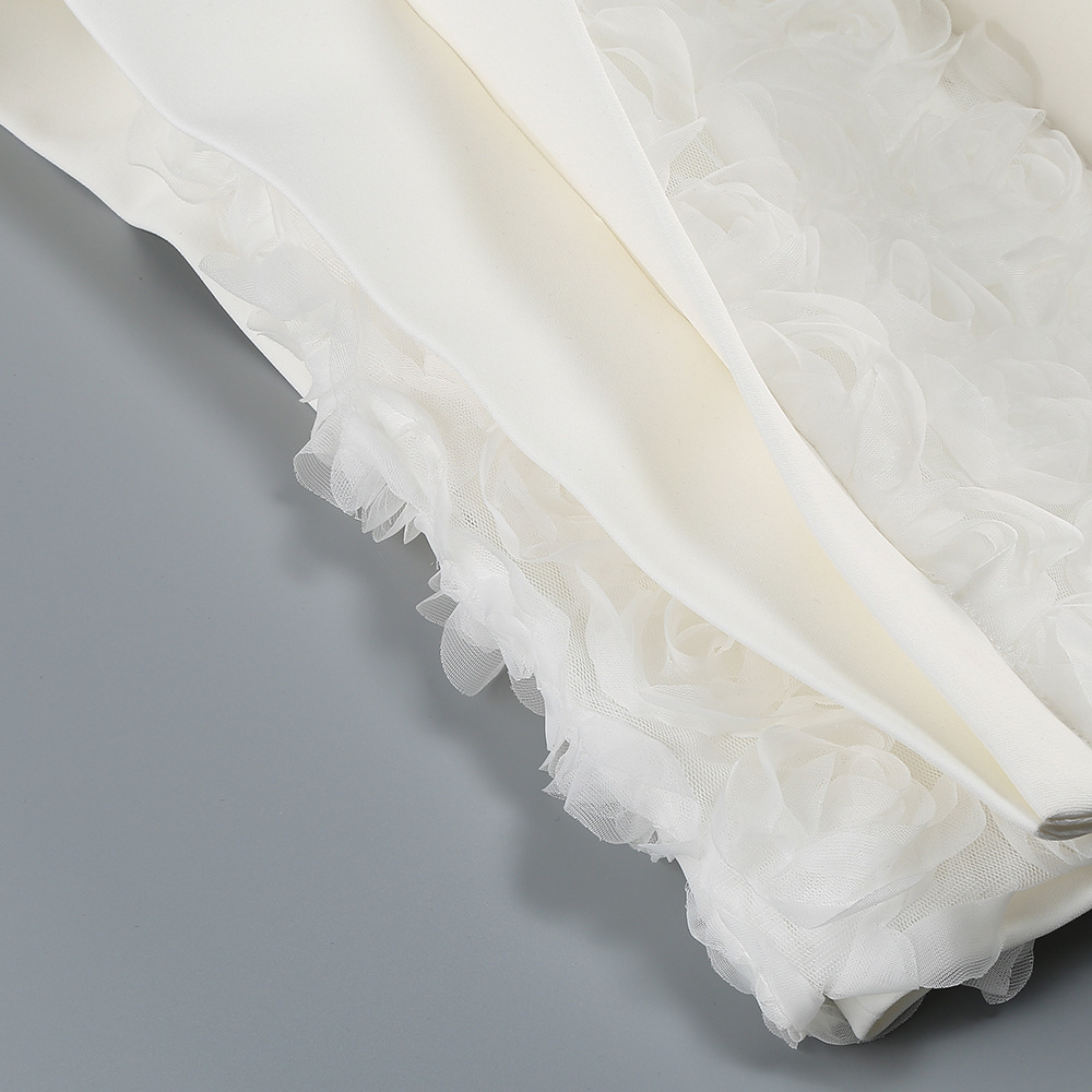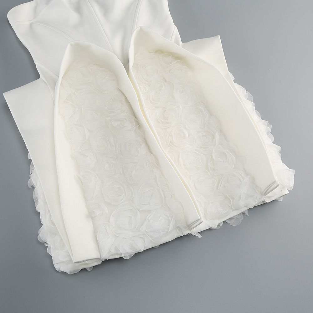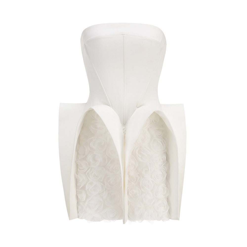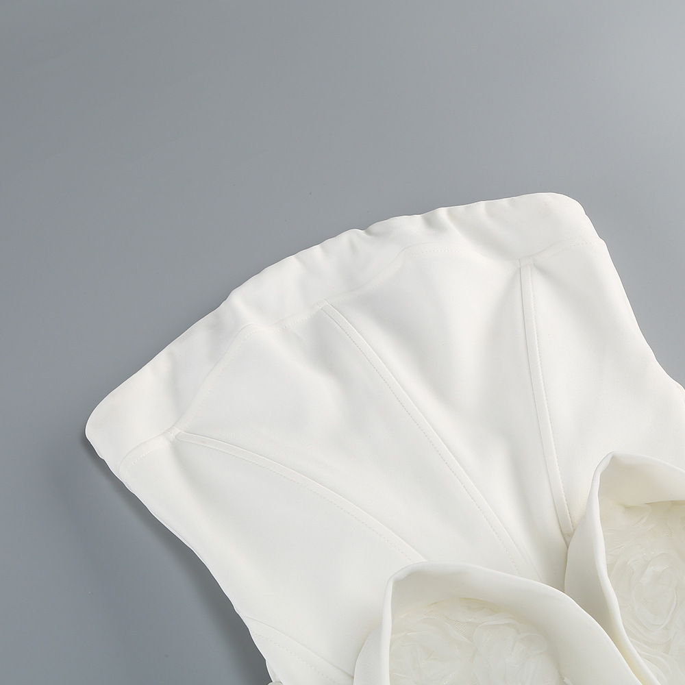 New Amazon sexy white bandeau dress short skirt European and American style women's hem decoration U-shaped flower dress