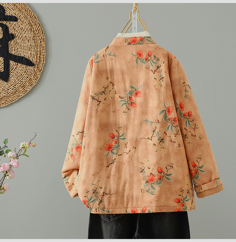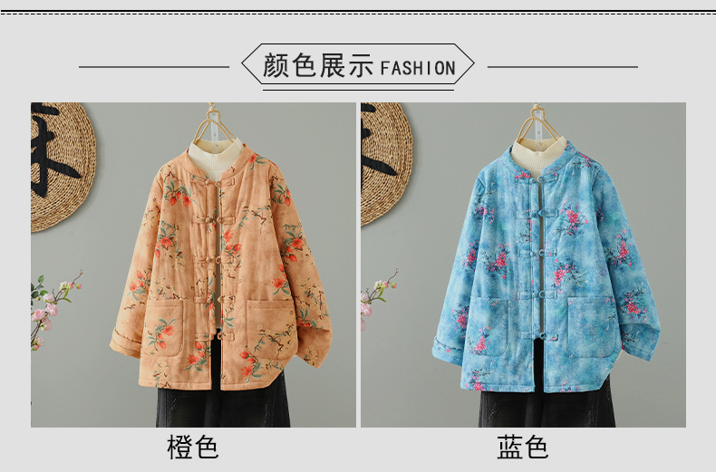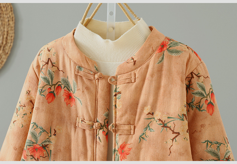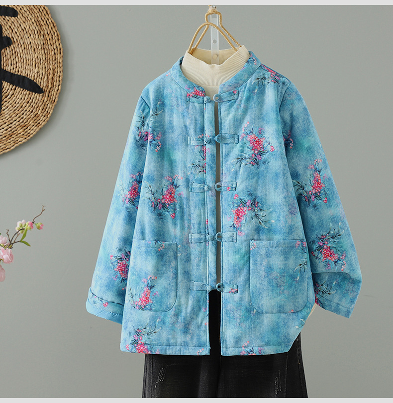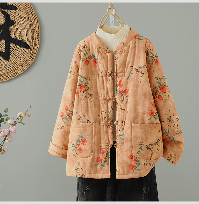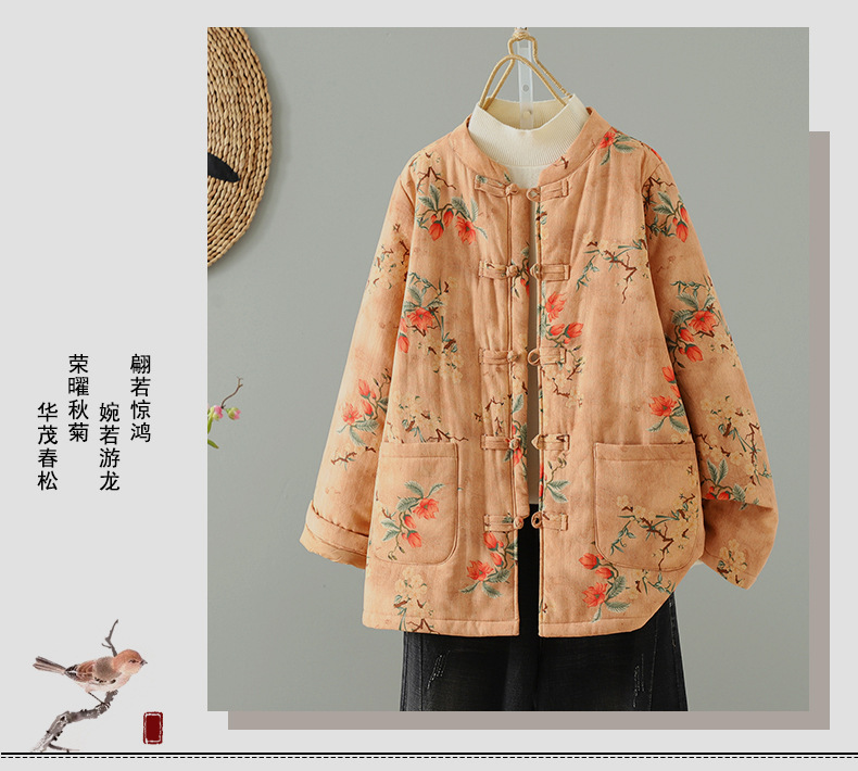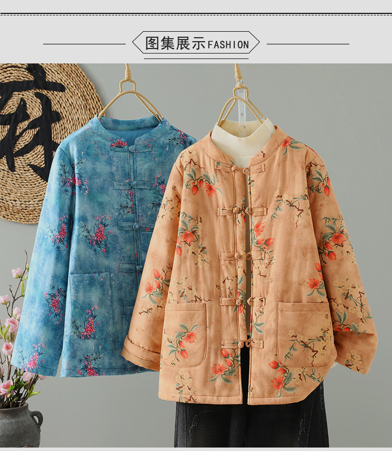 New Chinese style floral cotton clothes for women's winter 2025 new buckled cotton jacket