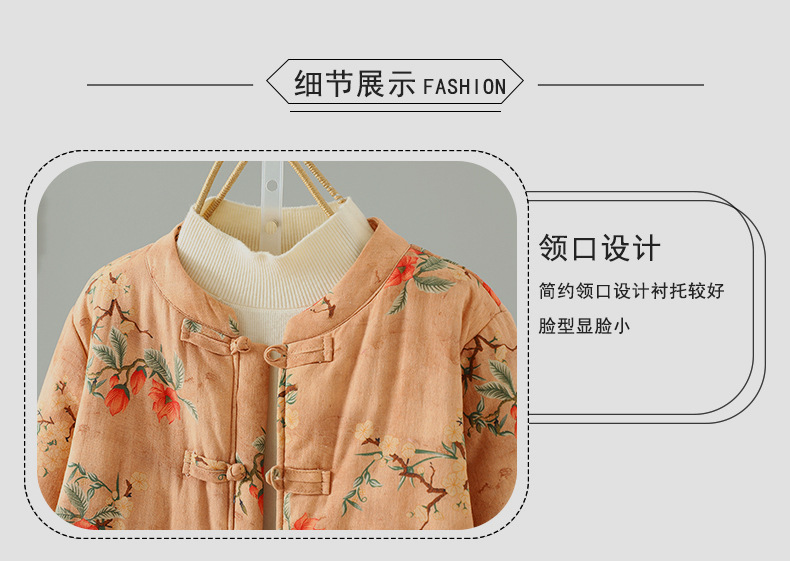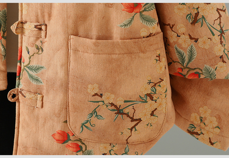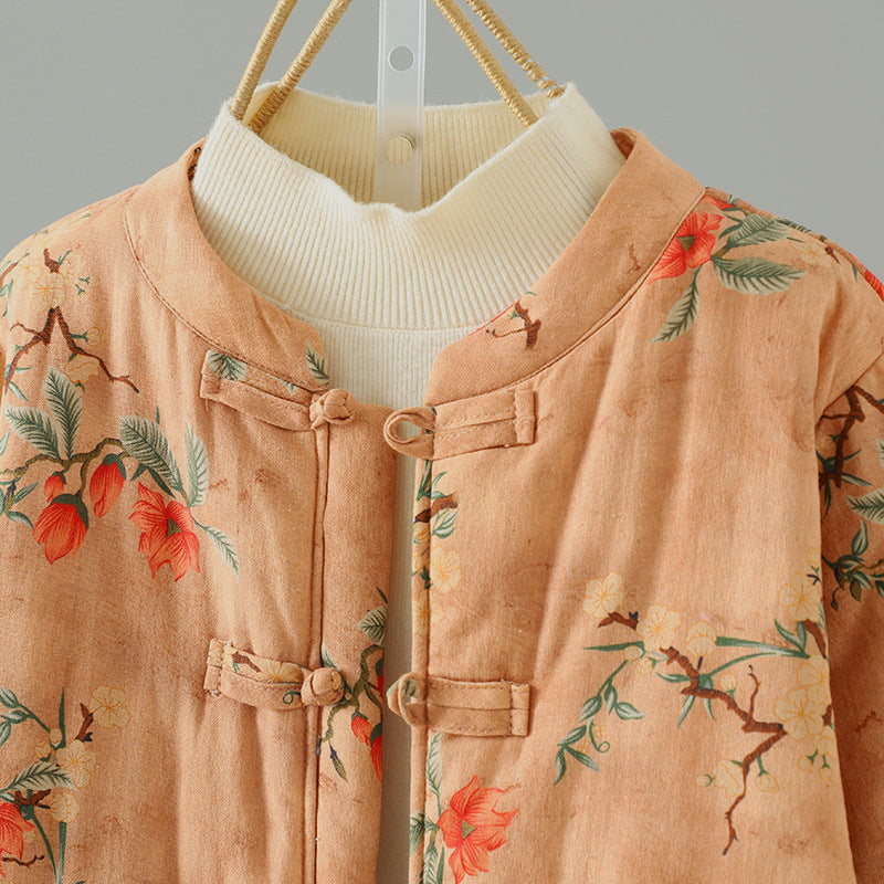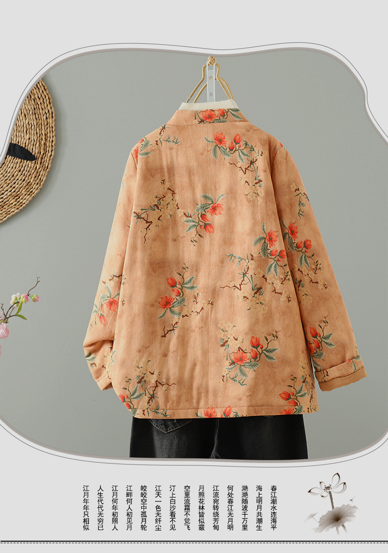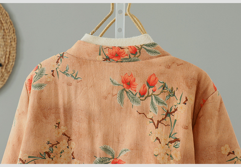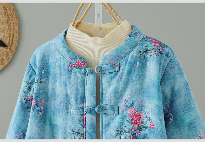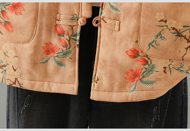 New Chinese style floral cotton clothes for women's winter 2025 new buckled cotton jacket