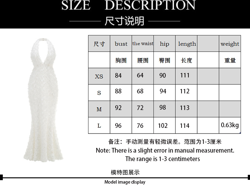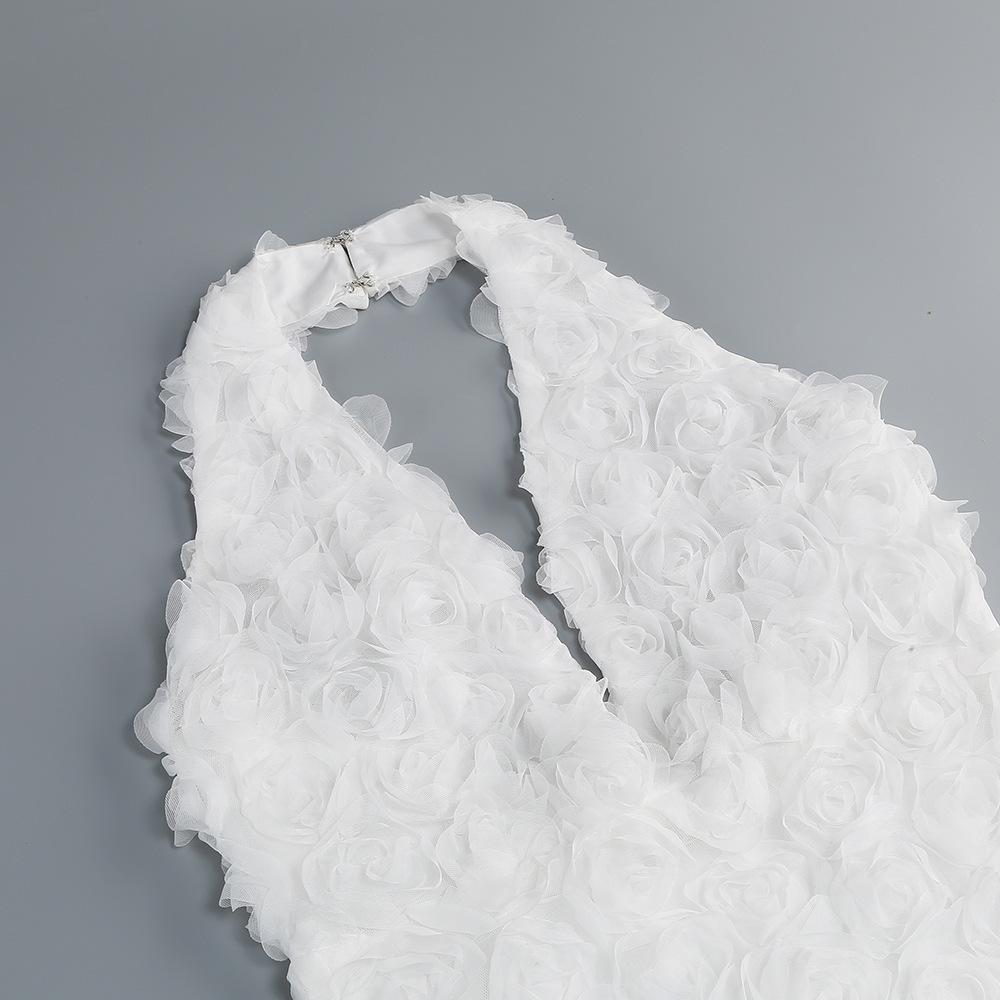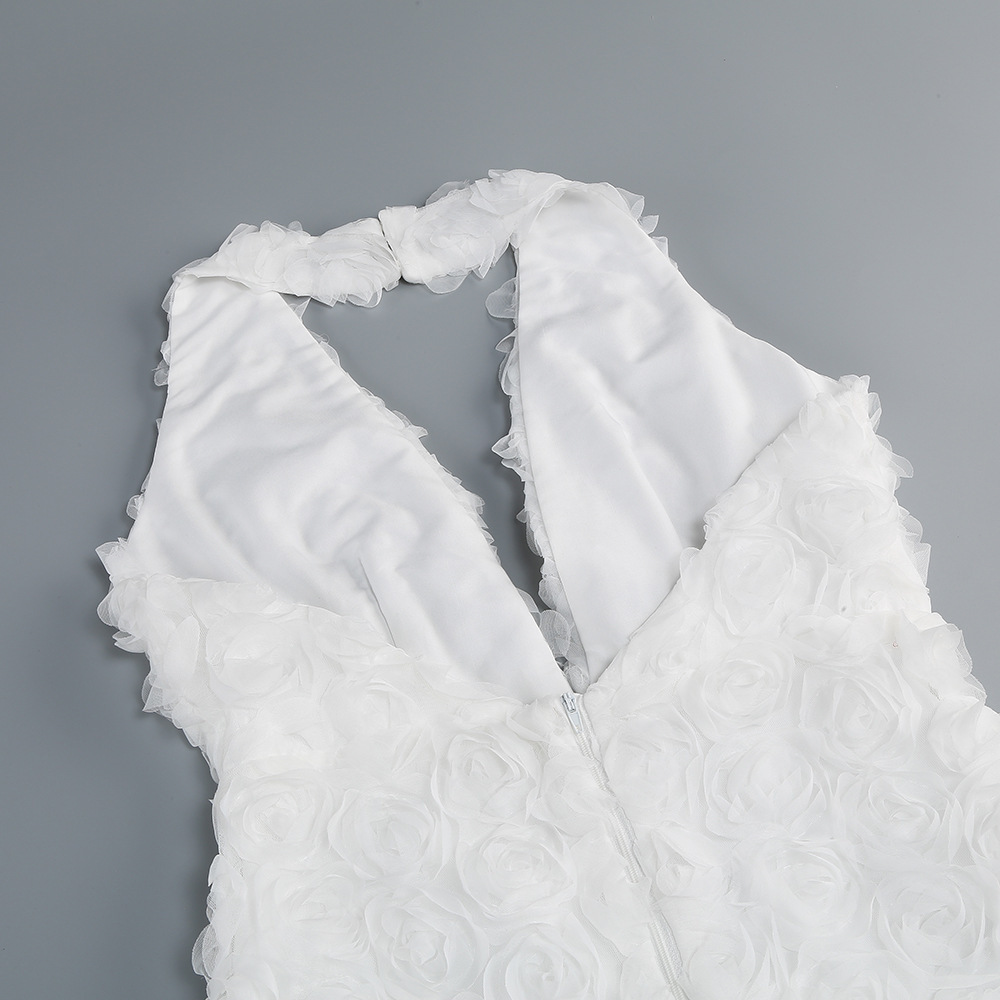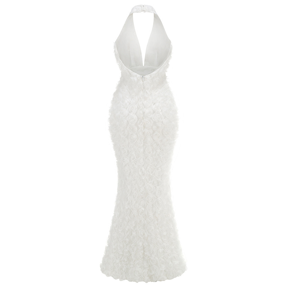 New cross-border personalized backless banquet nightclub dress, European and American style three-dimensional flower deep V fishtail premium dress