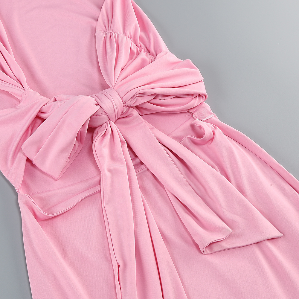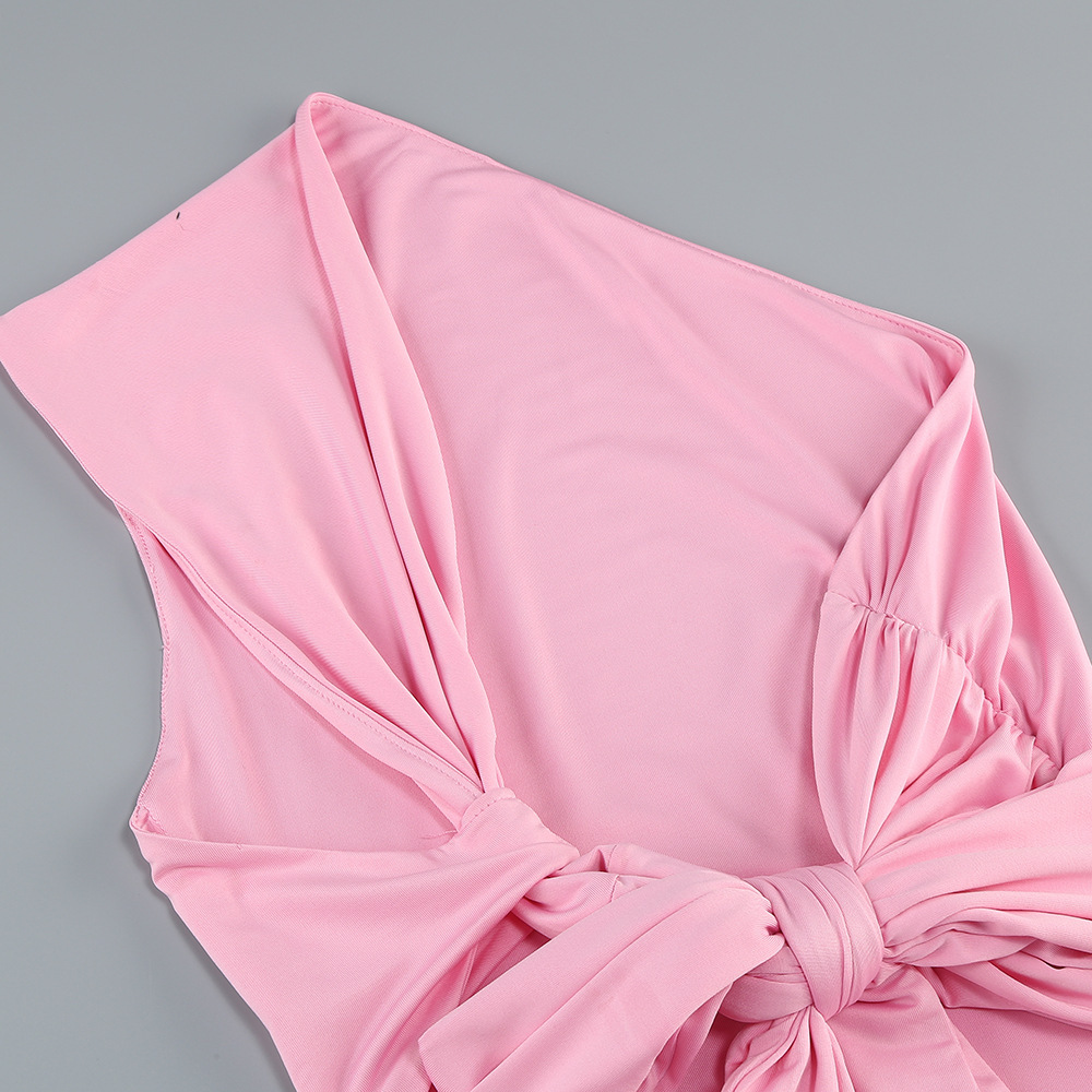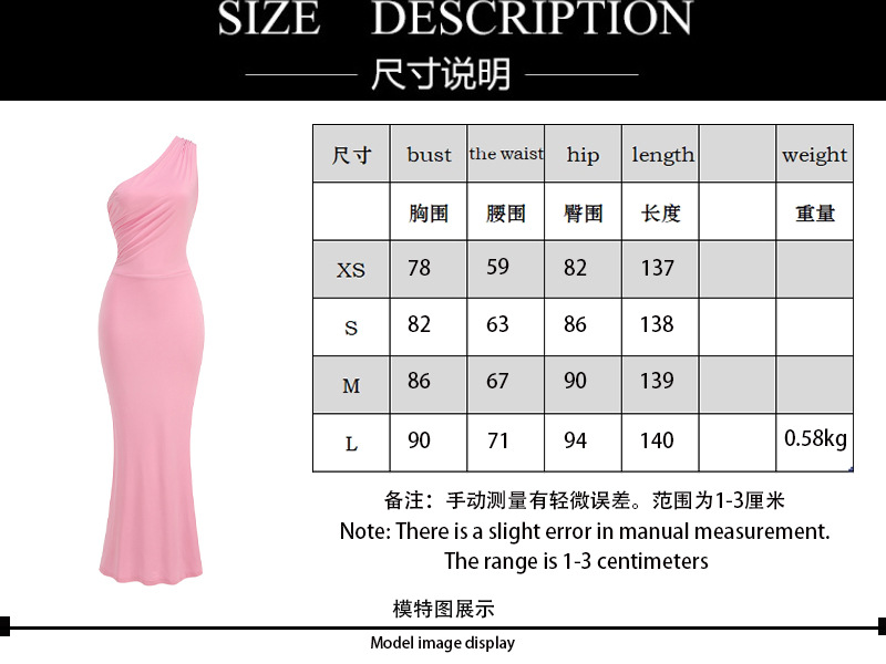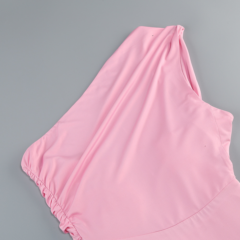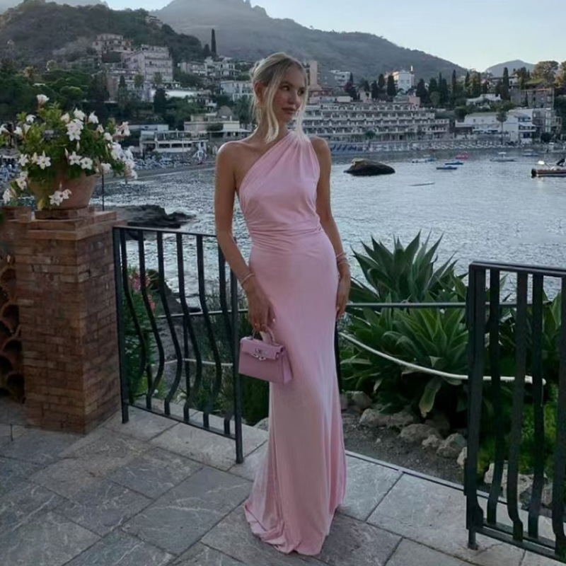 New cross-border sexy pink slanted shoulder back strap French dress long dress slim fishtail seaside dress