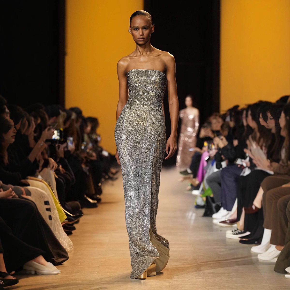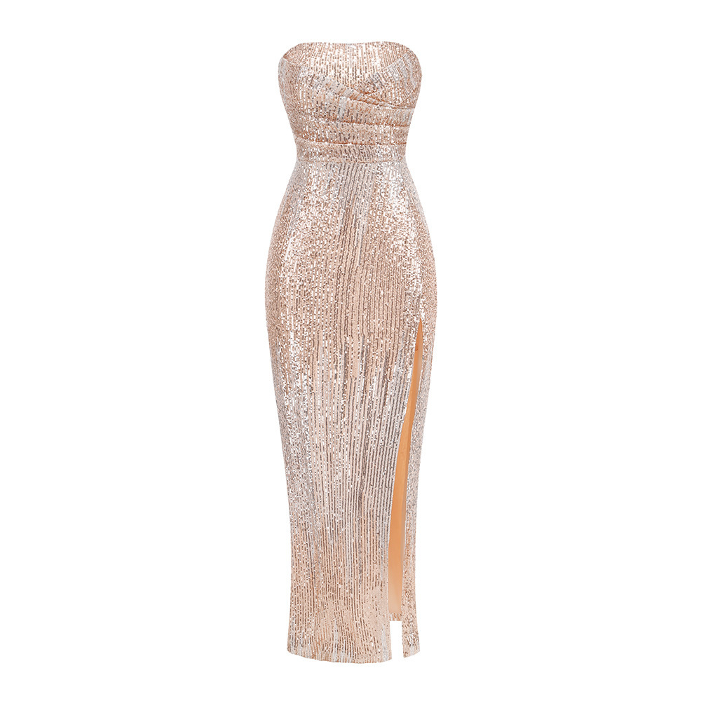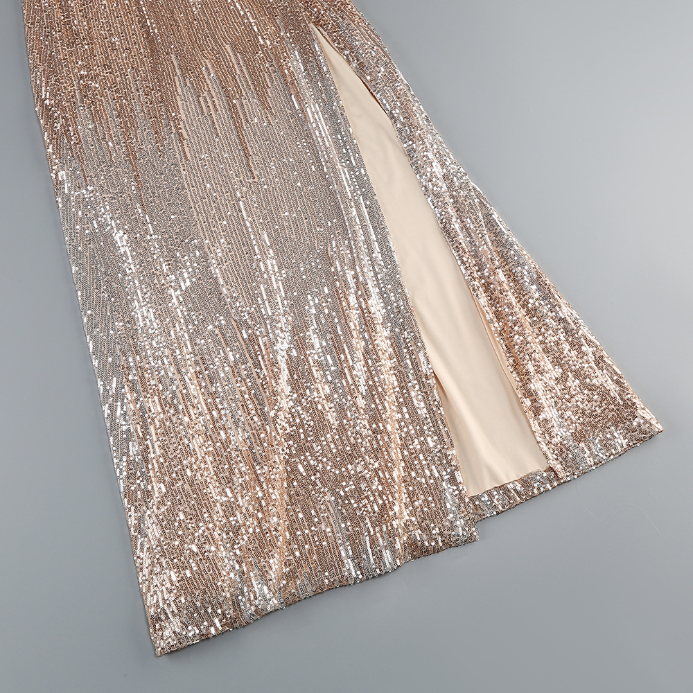 New foreign trade European and American performance party split evening dress INS casual zipper multi-color sequined women's dress