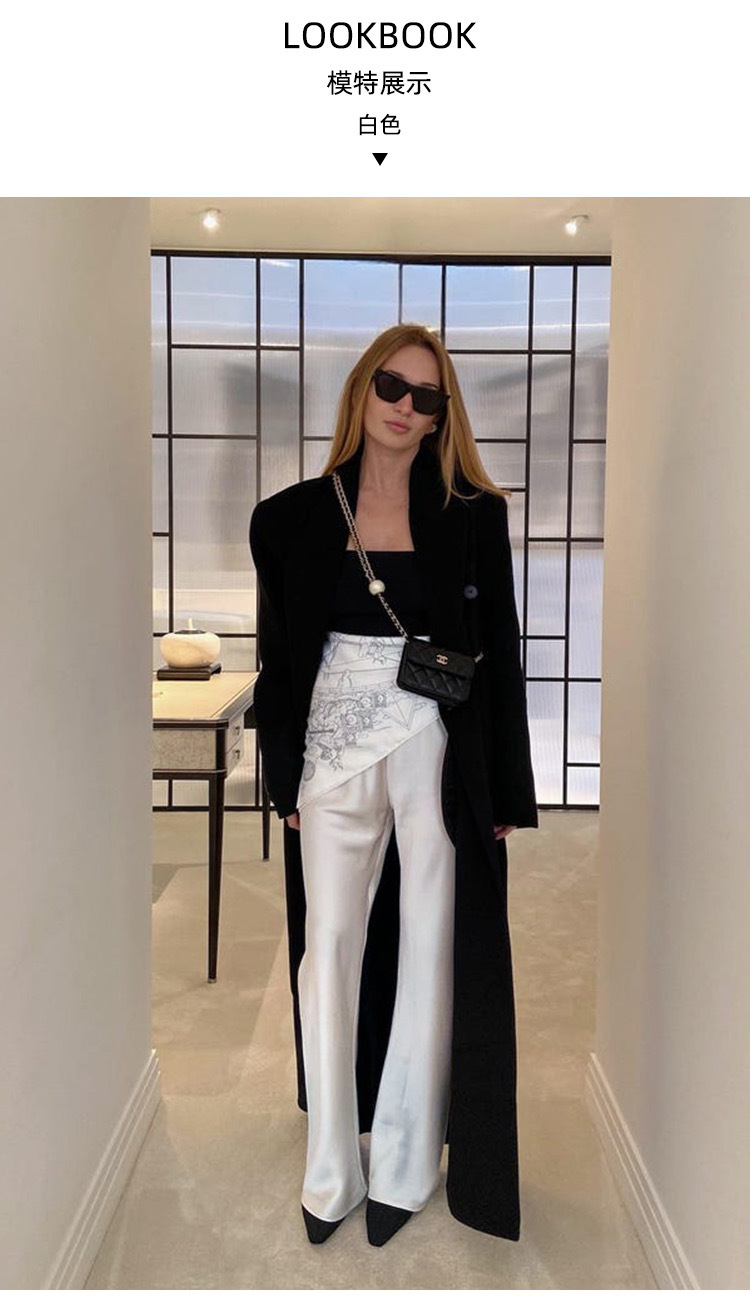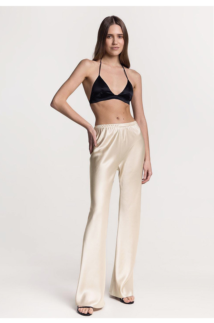One-piece 45 ° oblique cut, high-end triacetic acid satin elastic waist small casual pants children's autumn and winter drape
