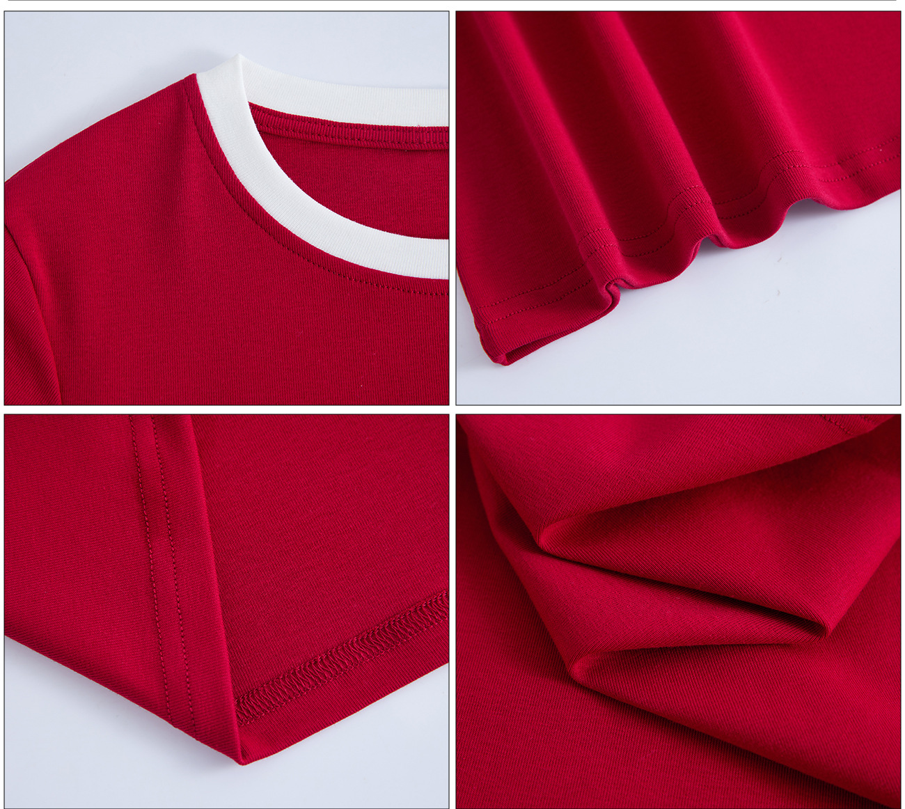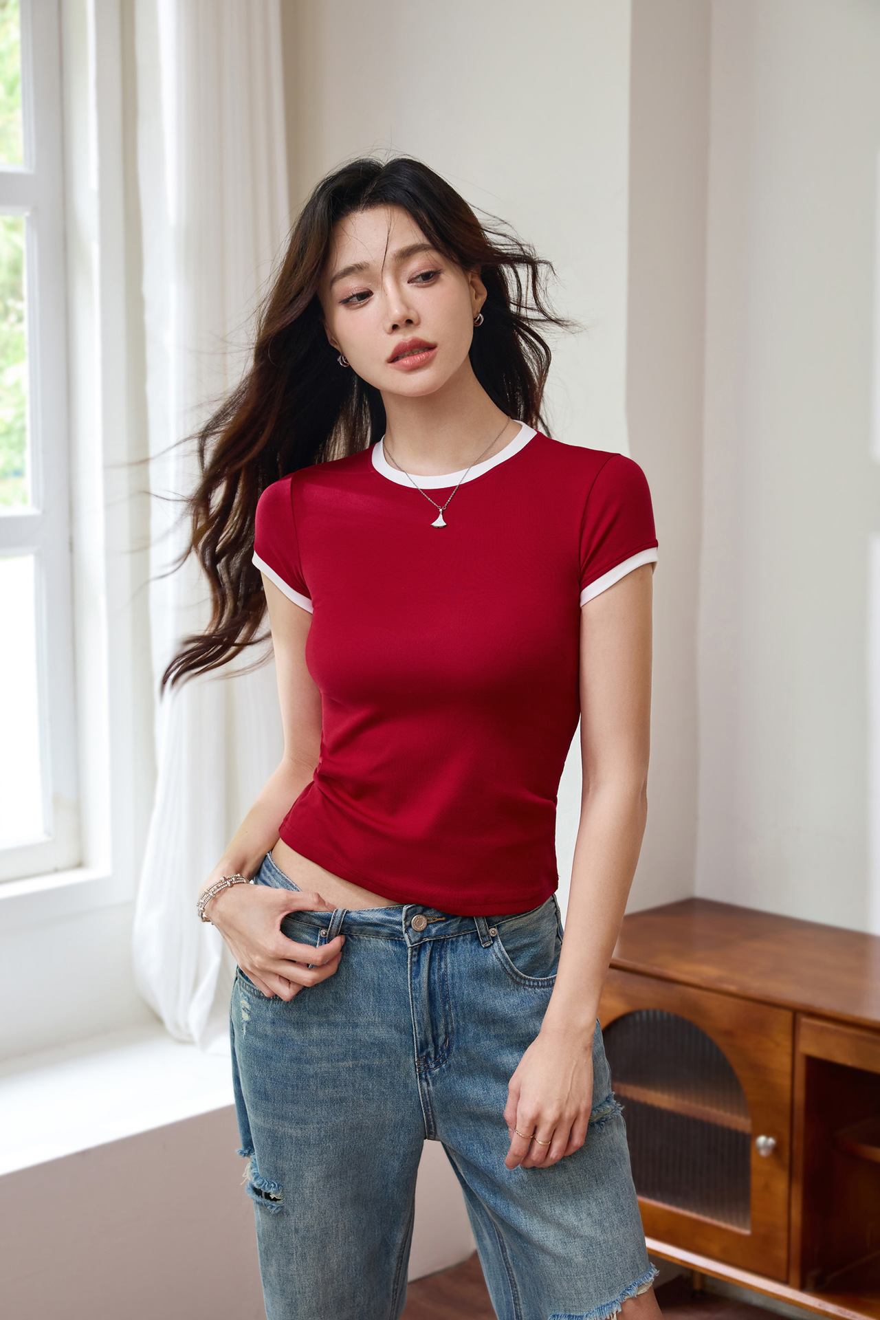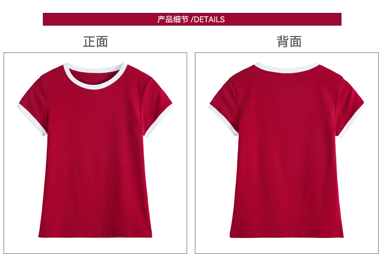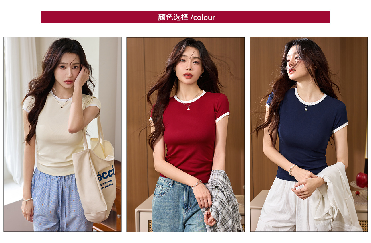 Pack collar sticker & 40 230g combed cotton T-shirts women's color matching short-sleeved slim-fitting and thin versatile round neck bottoming top