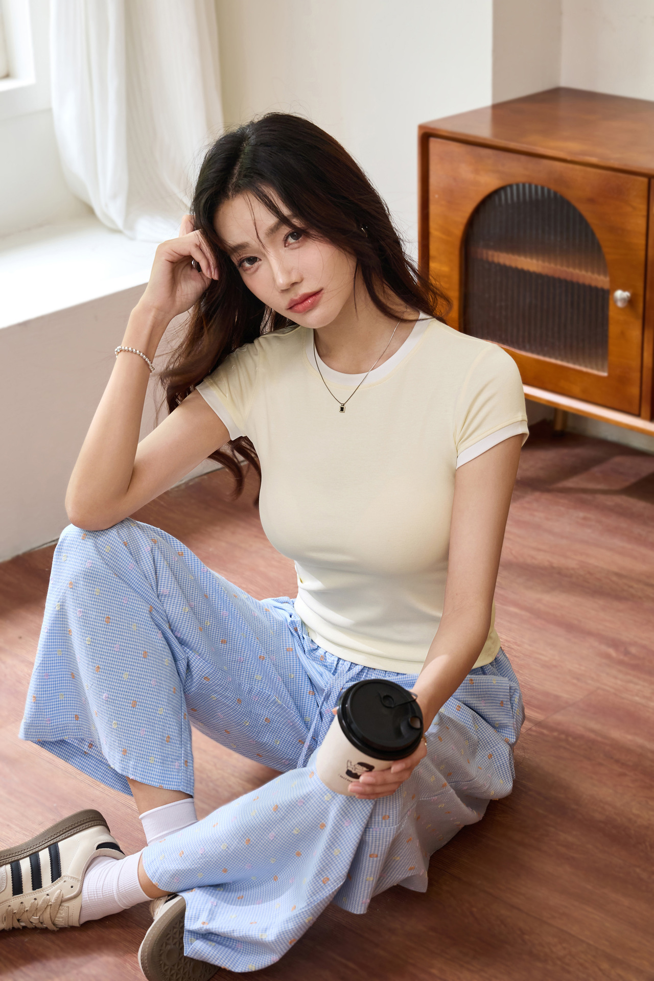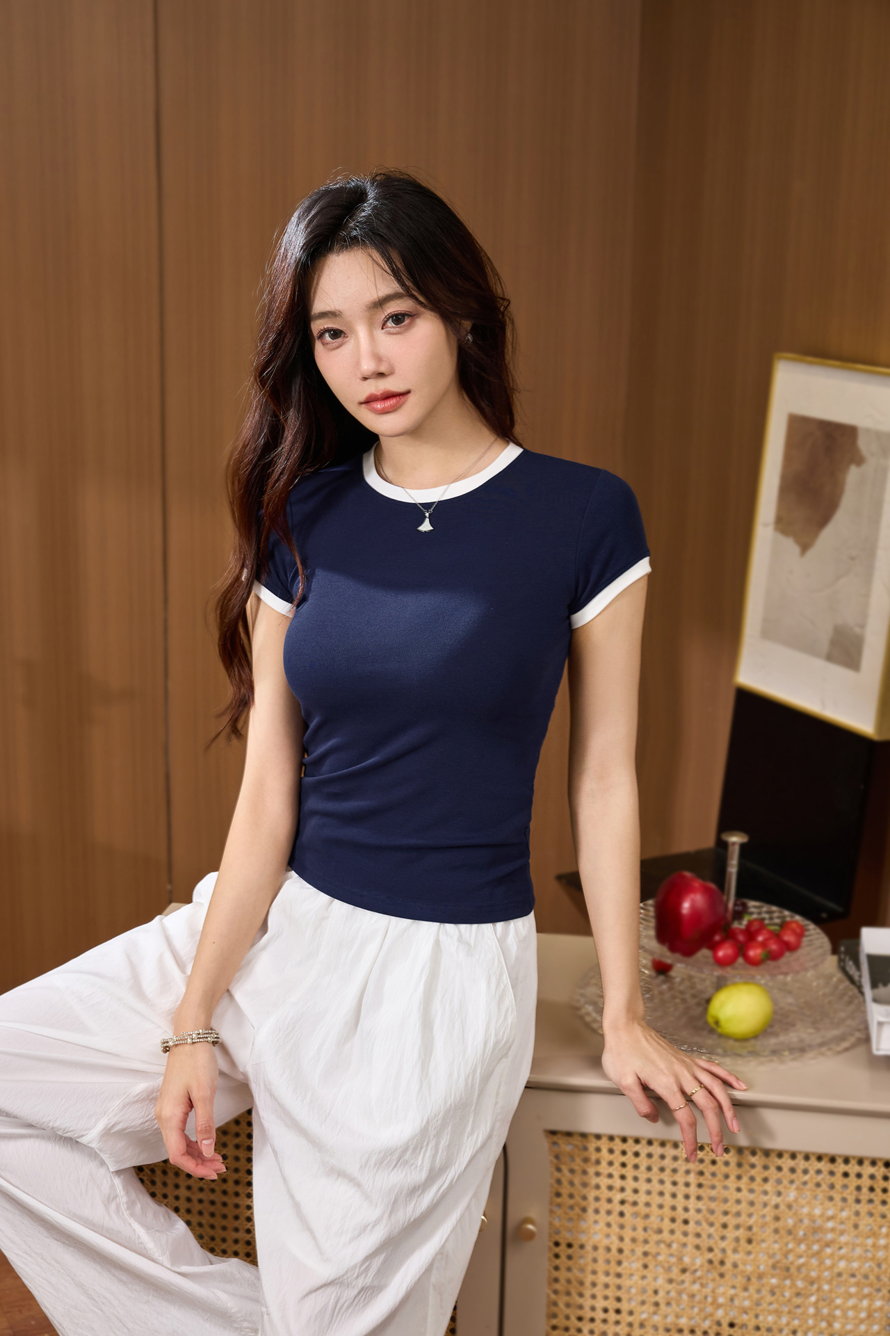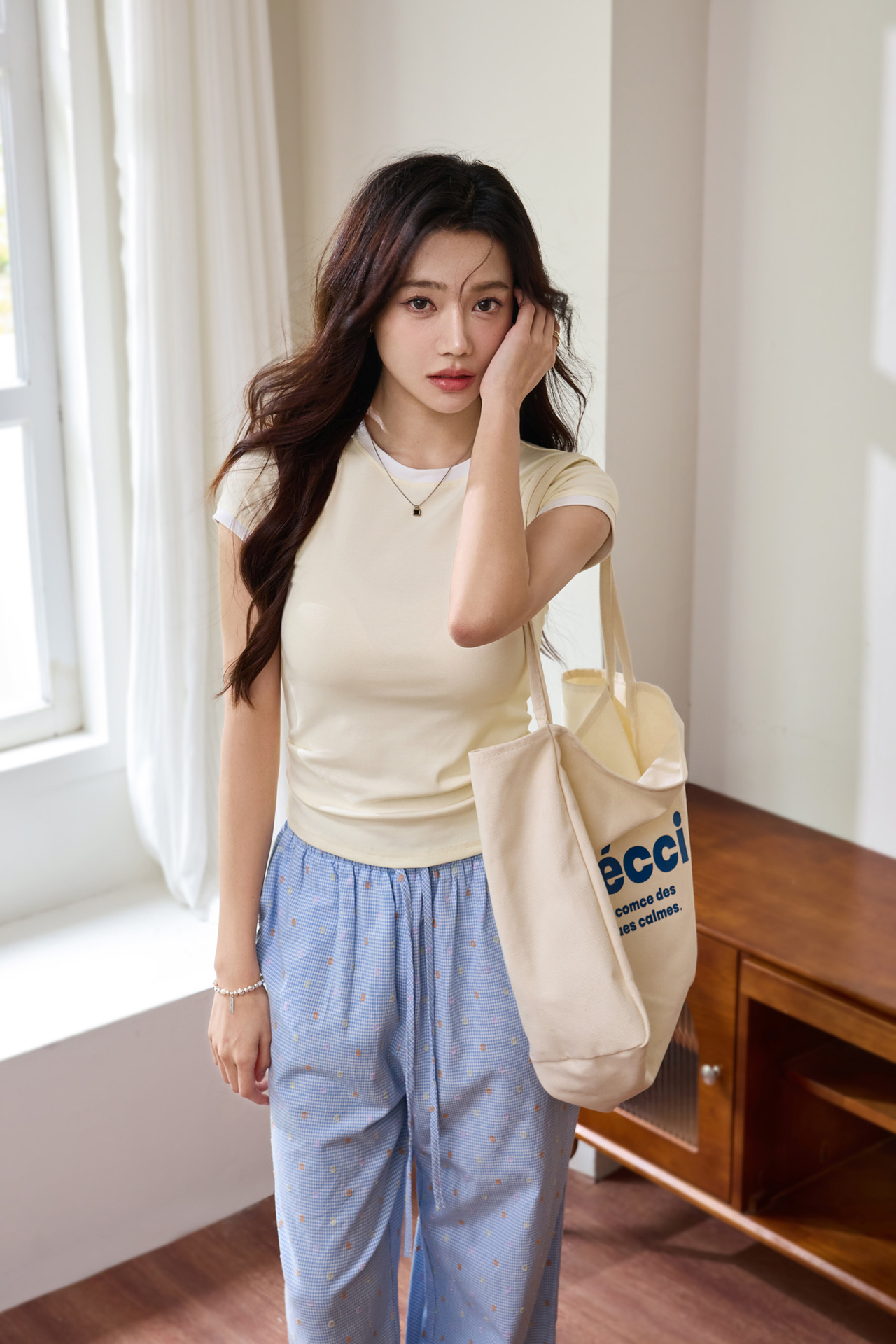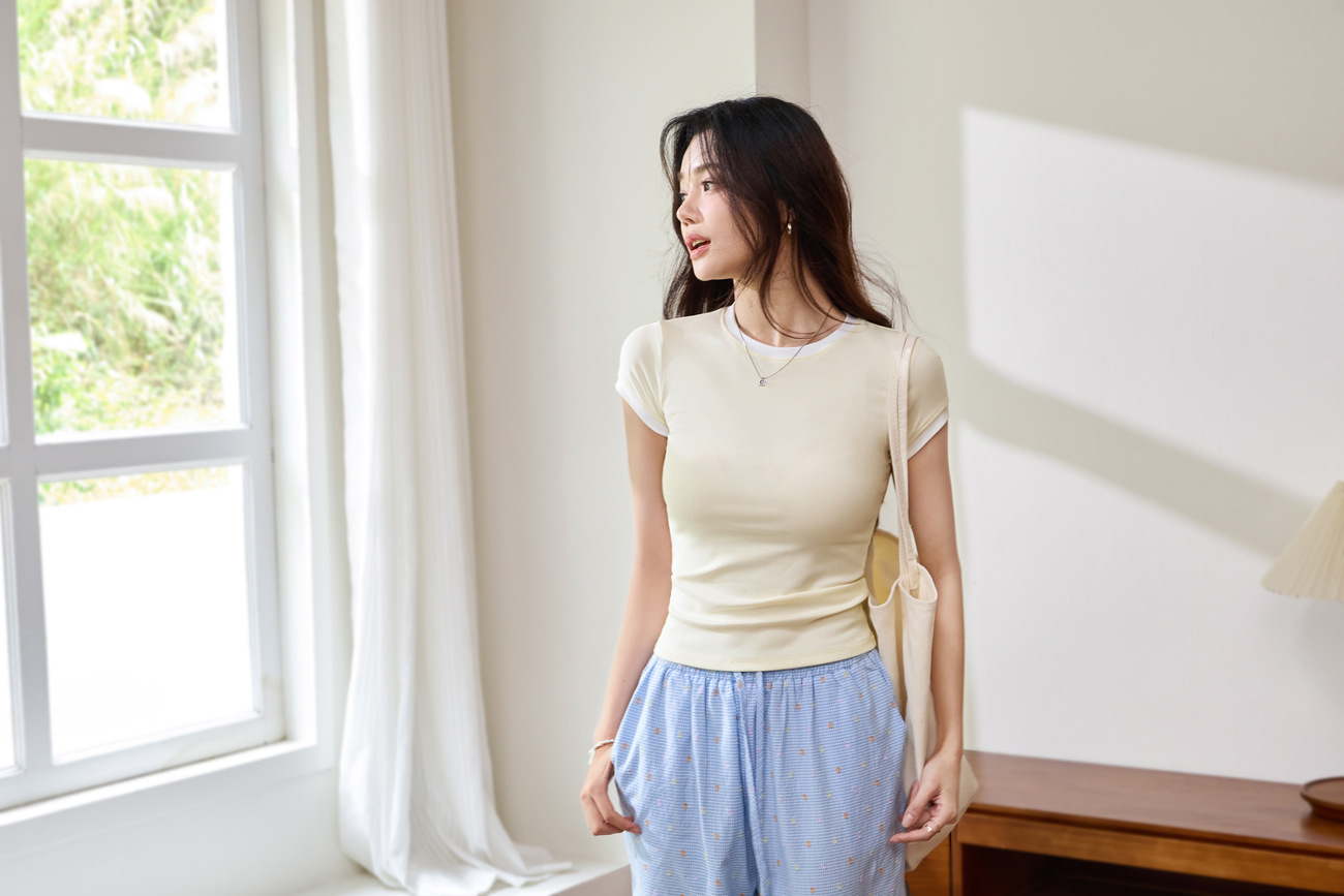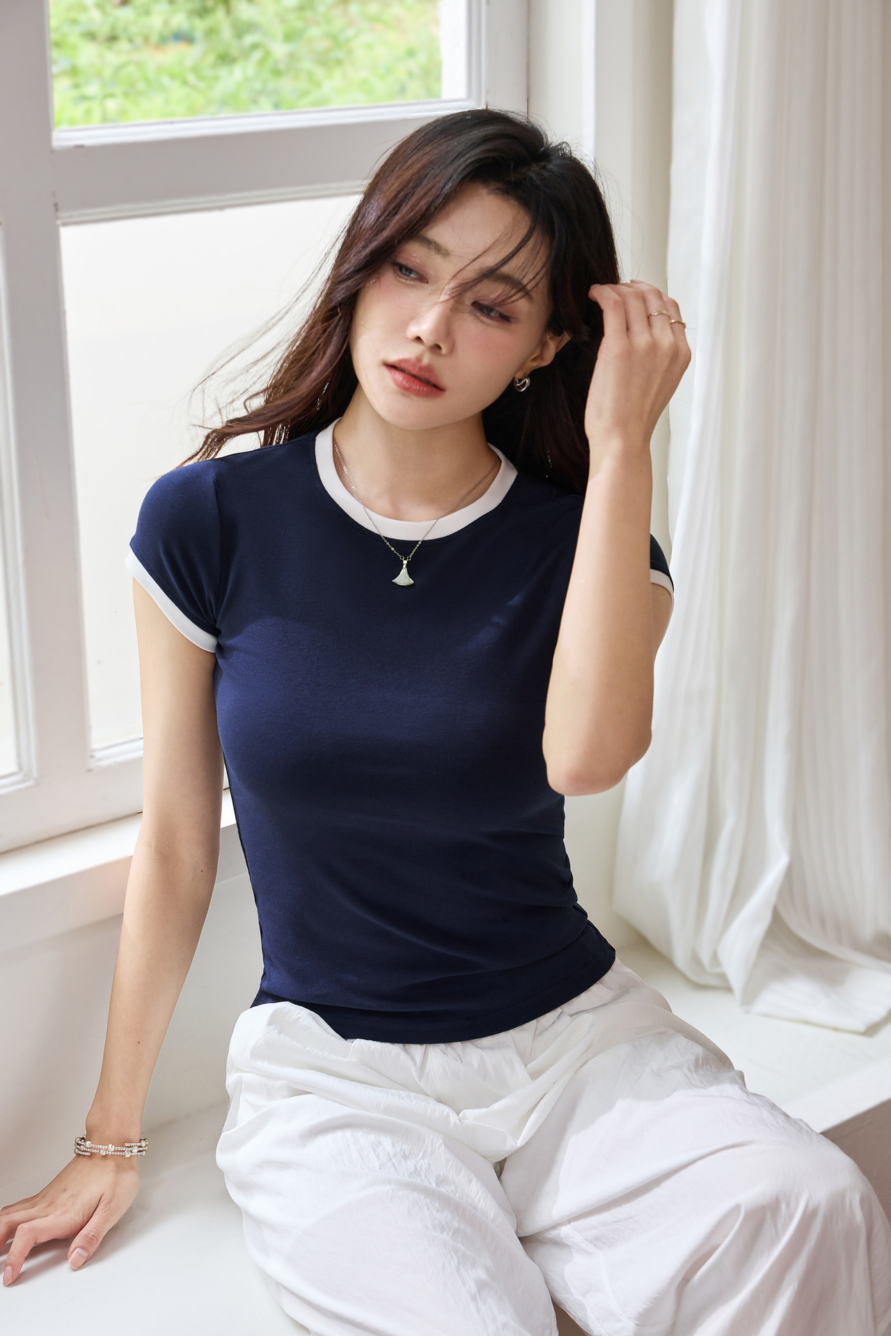 Pack collar sticker & 40 230g combed cotton T-shirts women's color matching short-sleeved slim-fitting and thin versatile round neck bottoming top