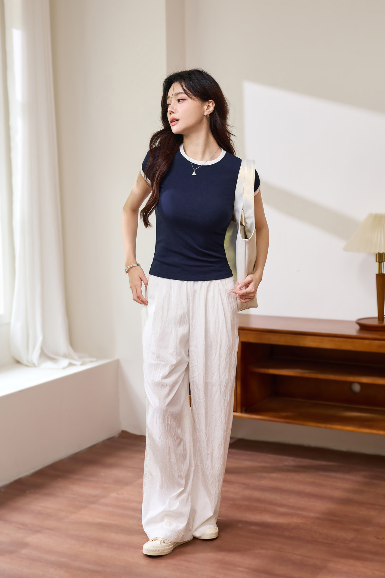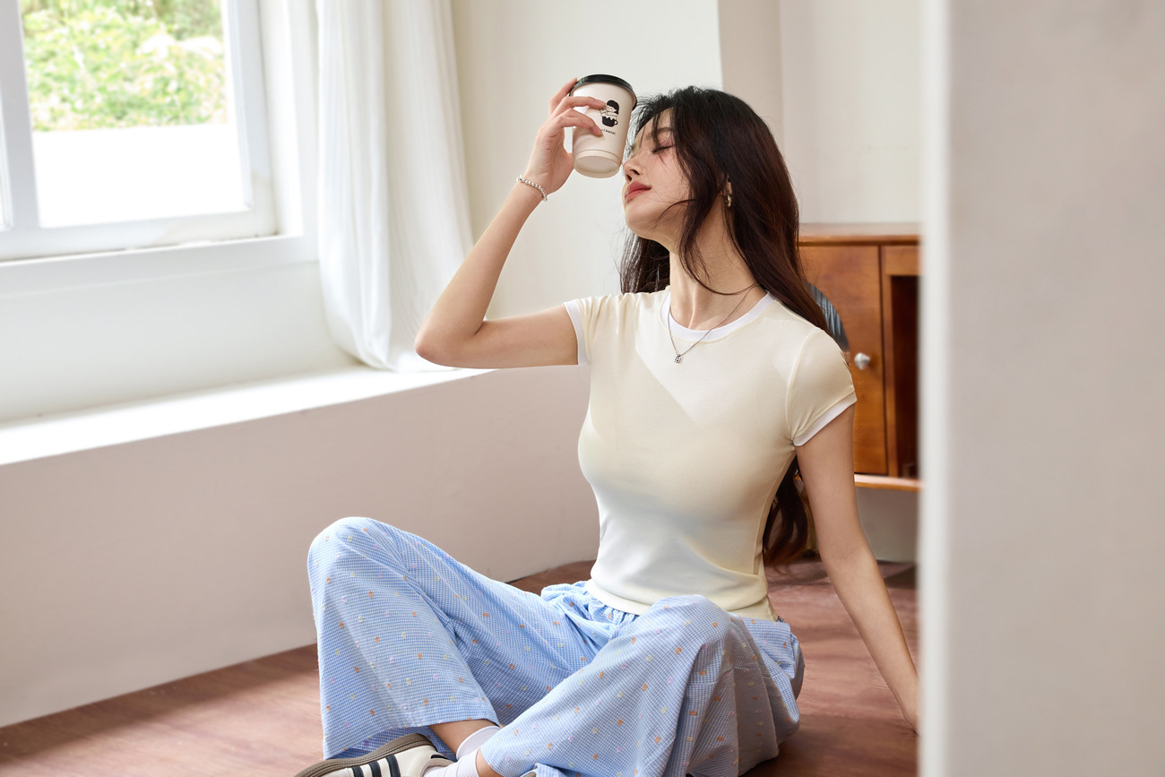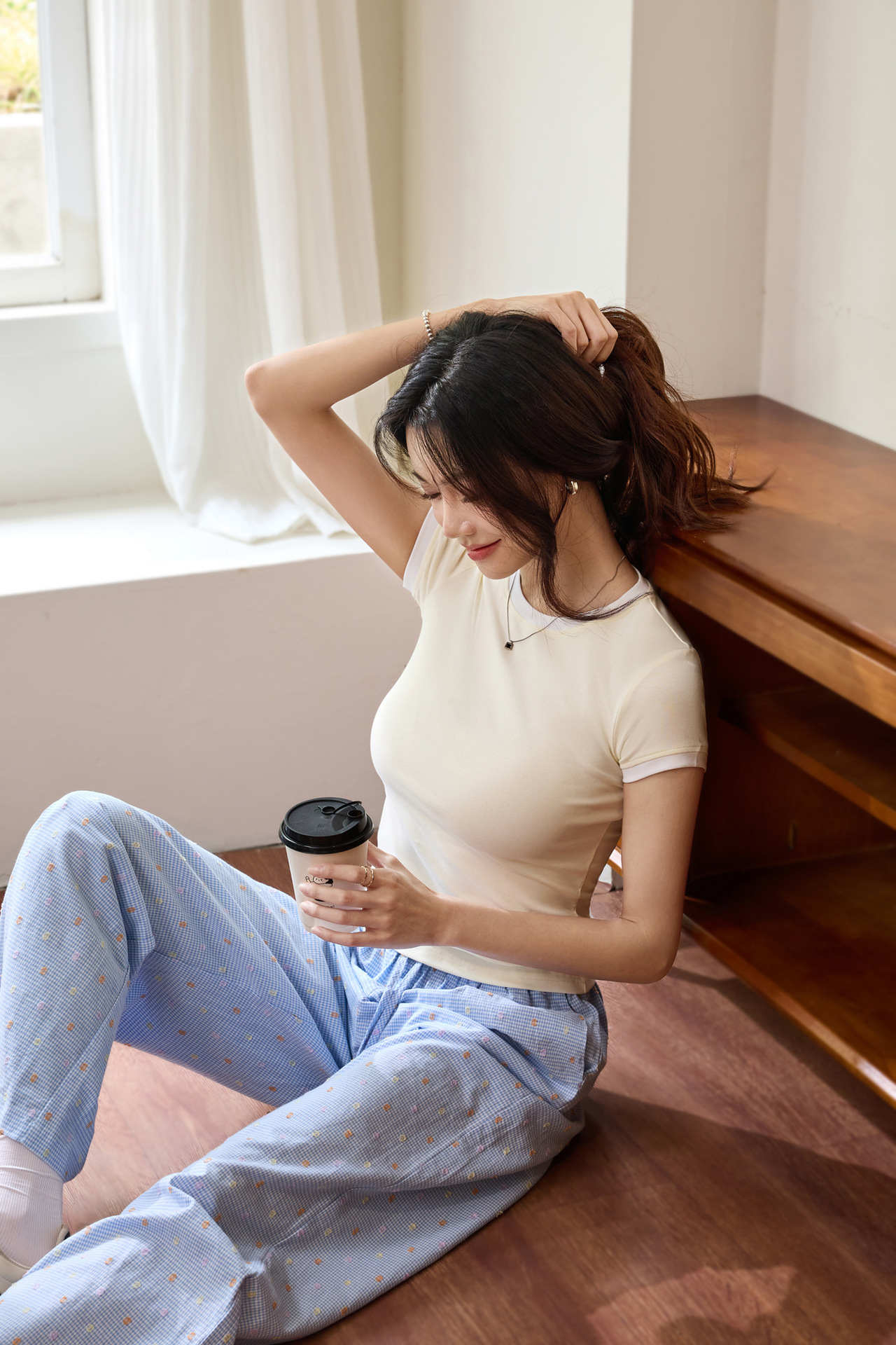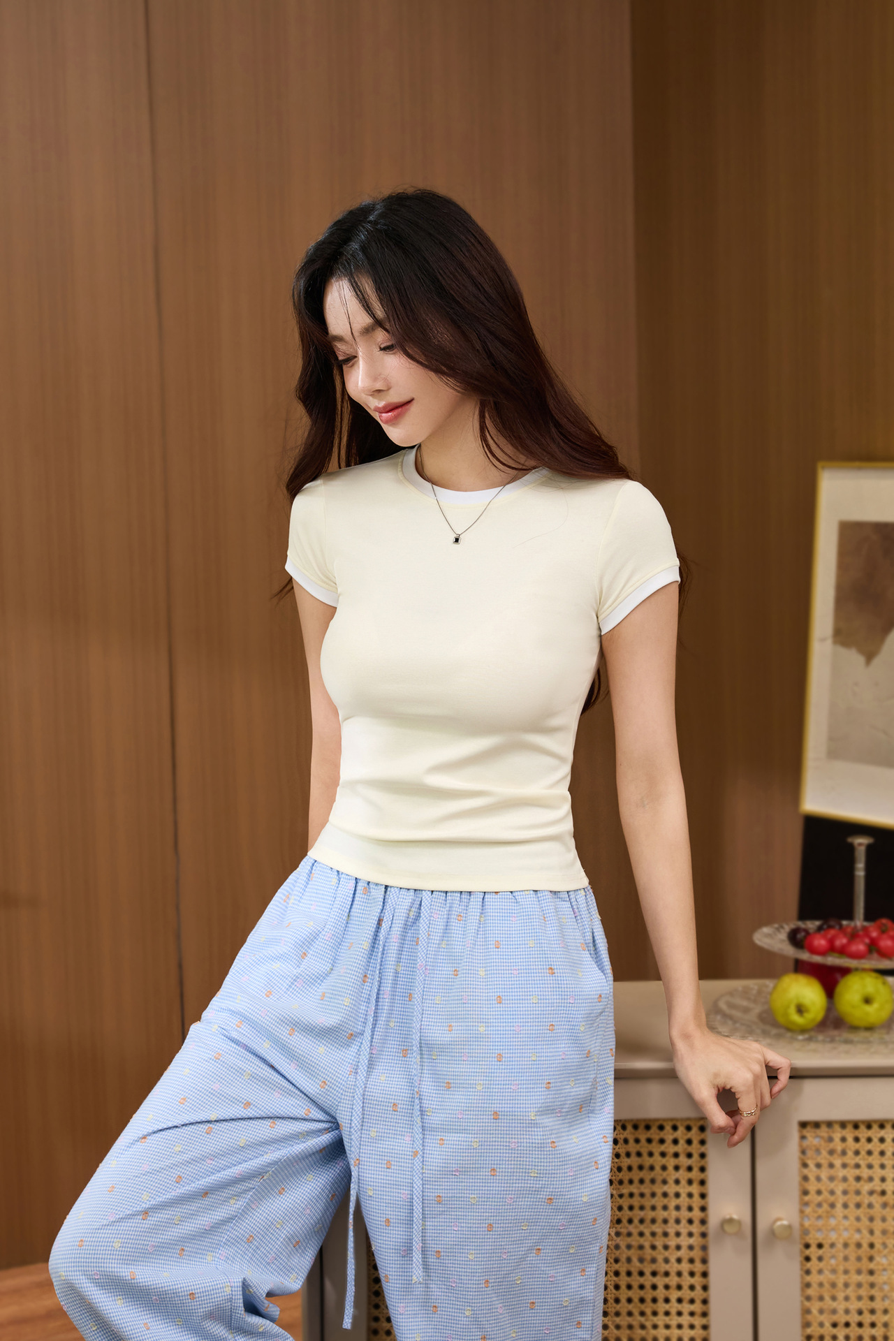 Pack collar sticker & 40 230g combed cotton T-shirts women's color matching short-sleeved slim-fitting and thin versatile round neck bottoming top
